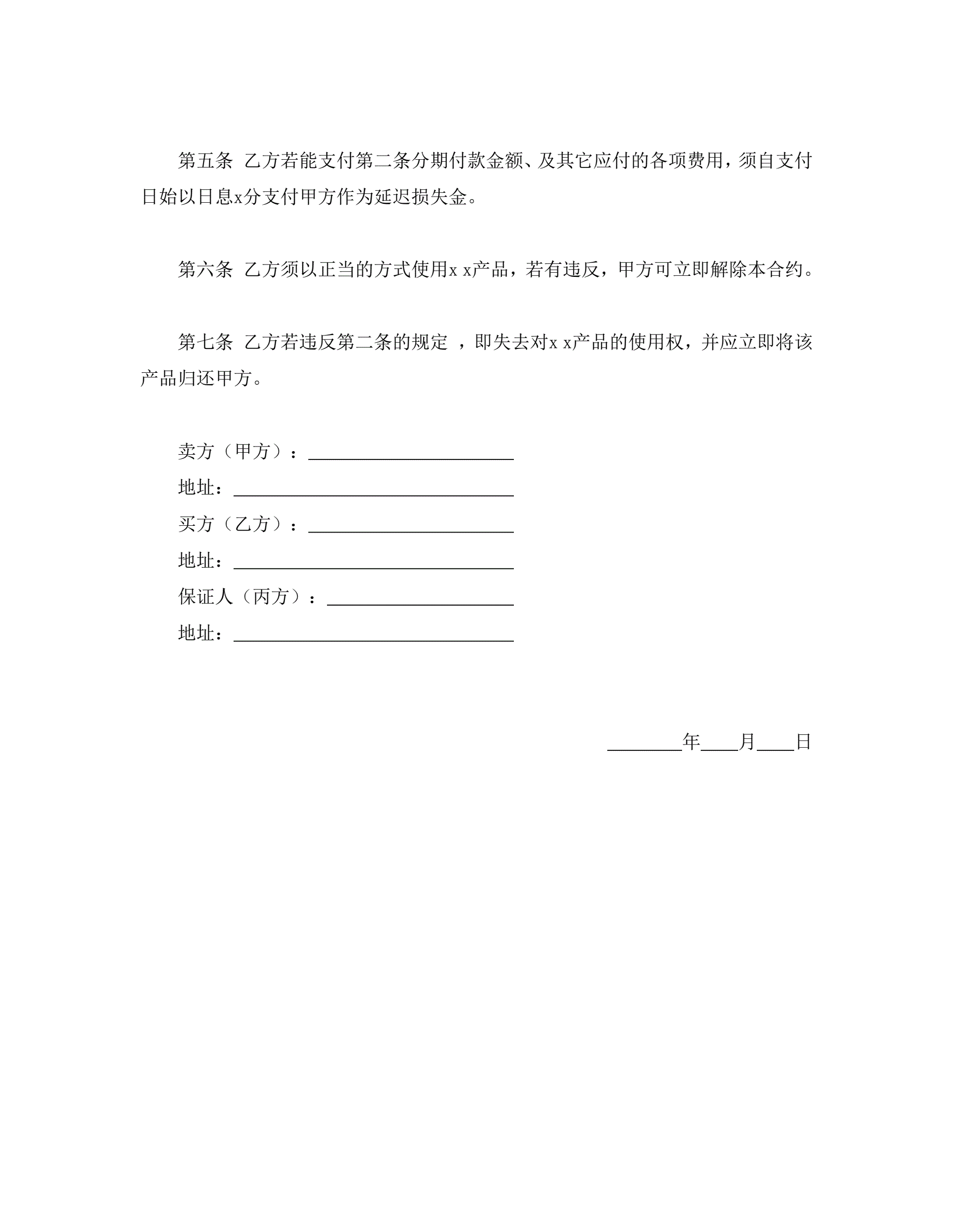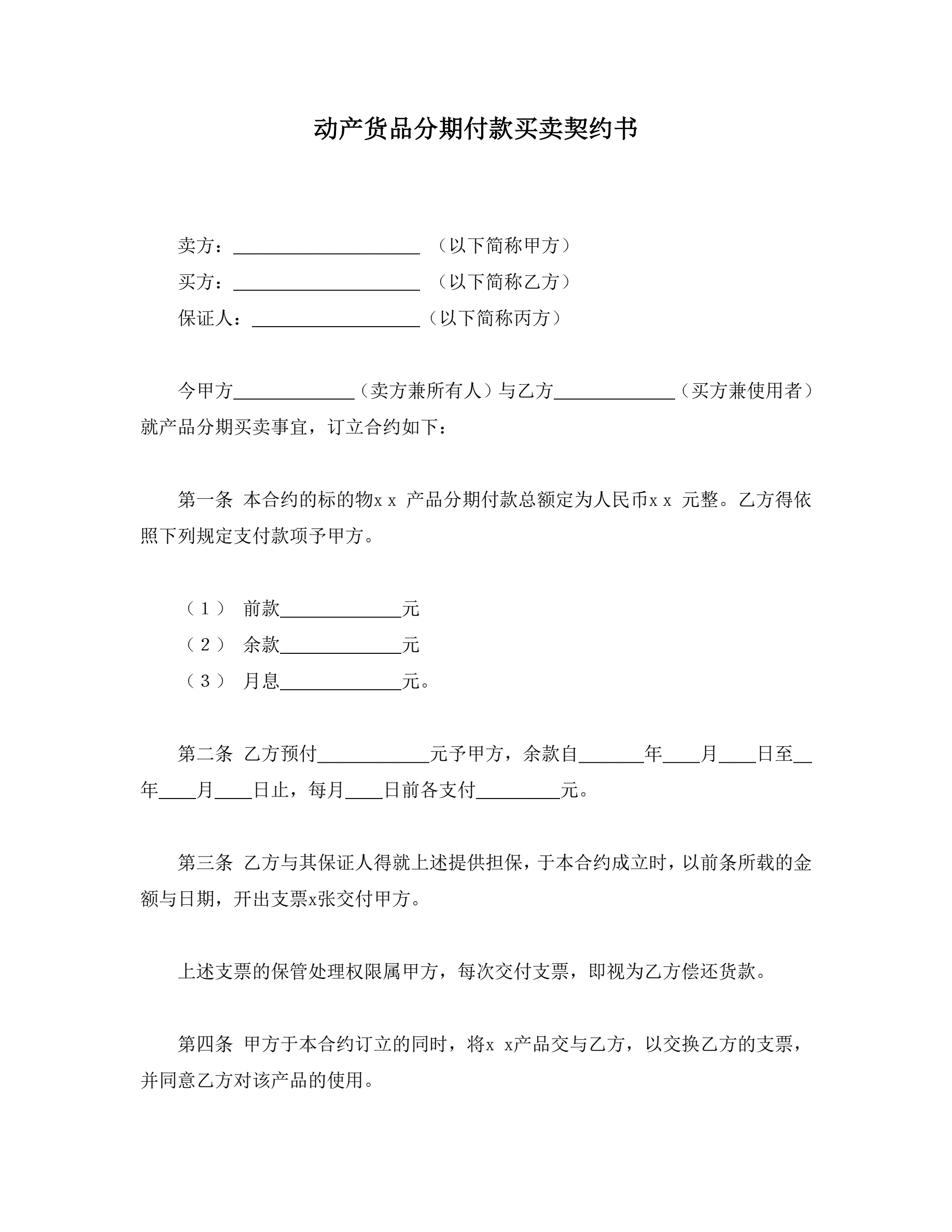 货品分期付款买卖契约书