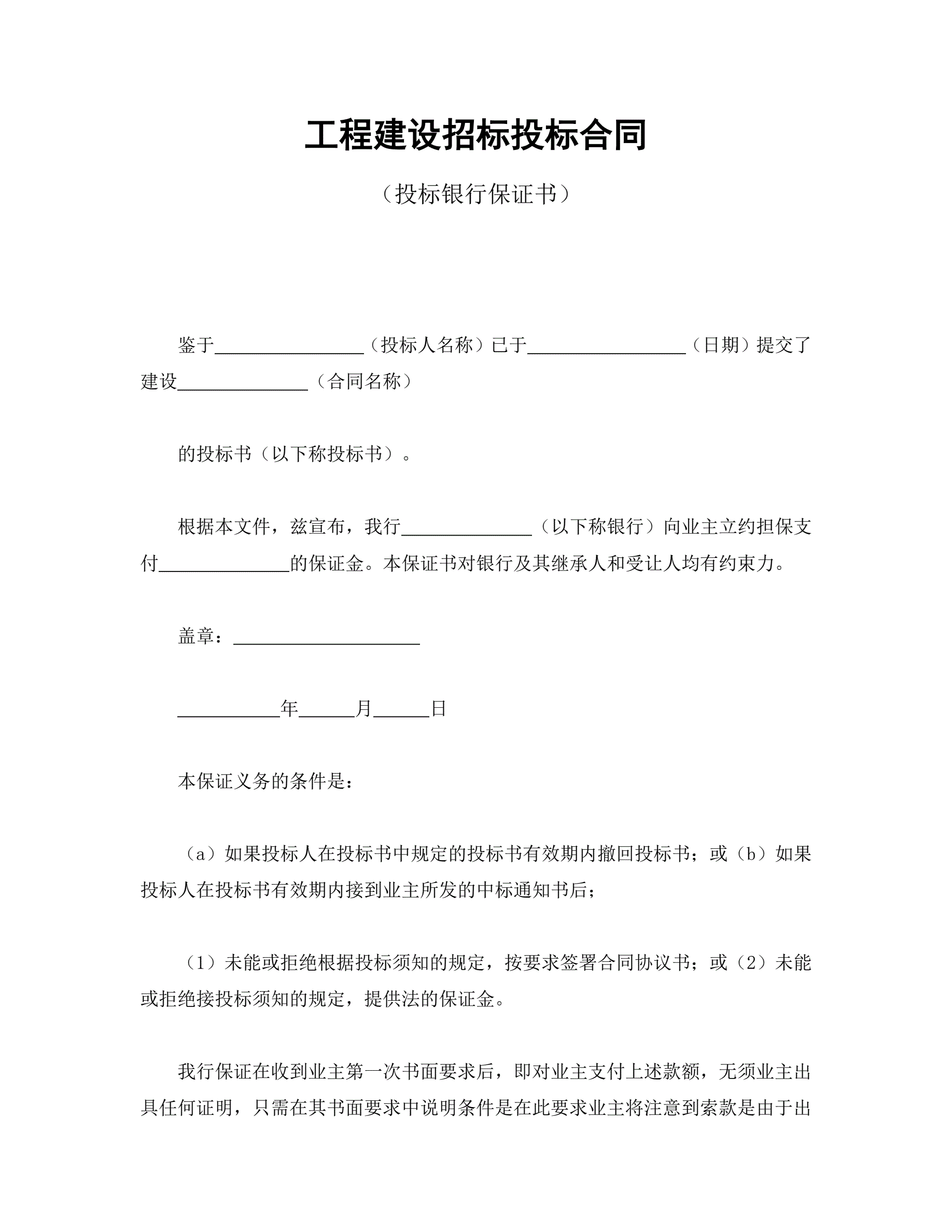 >工程建设招标投标合同(投标银行保证书)