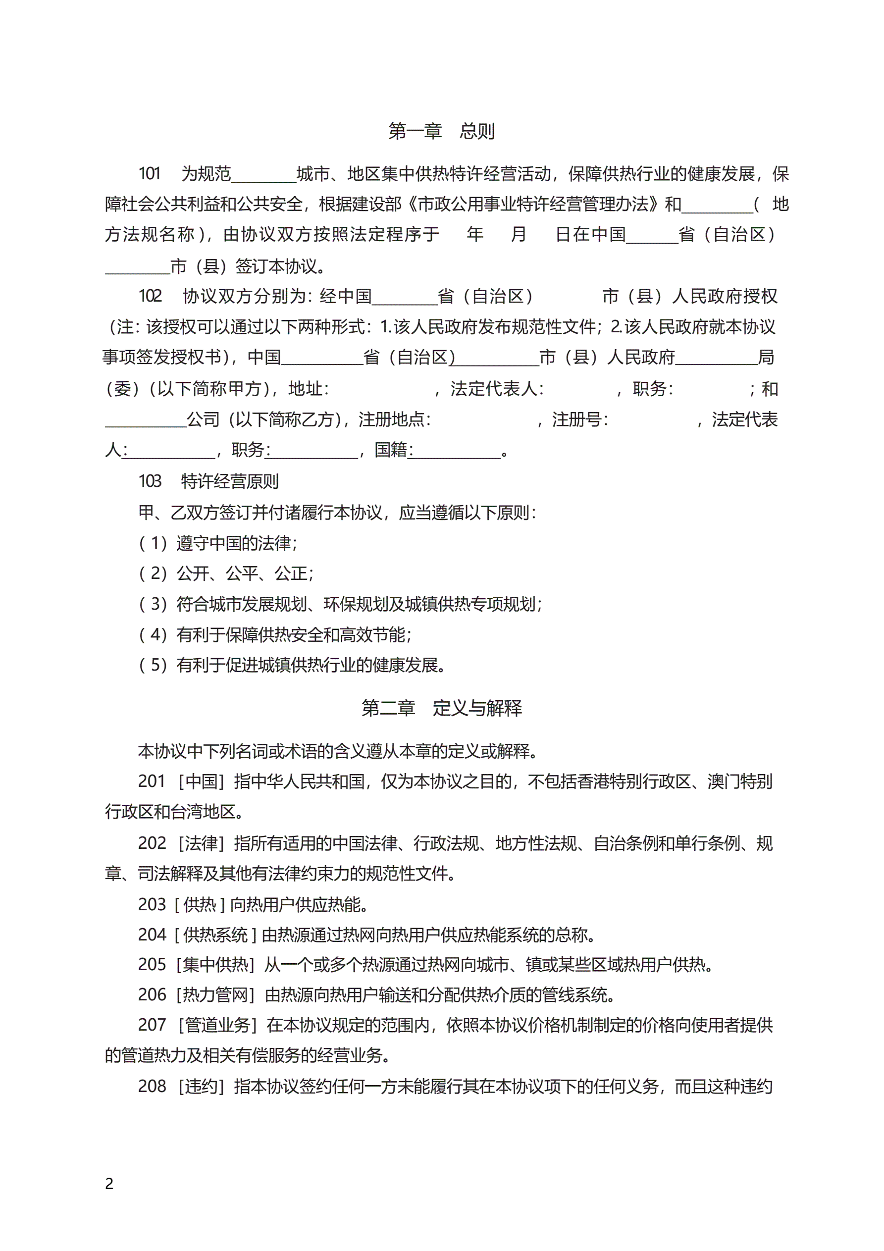 >城镇供热特许经营协议 GF—2006—2503