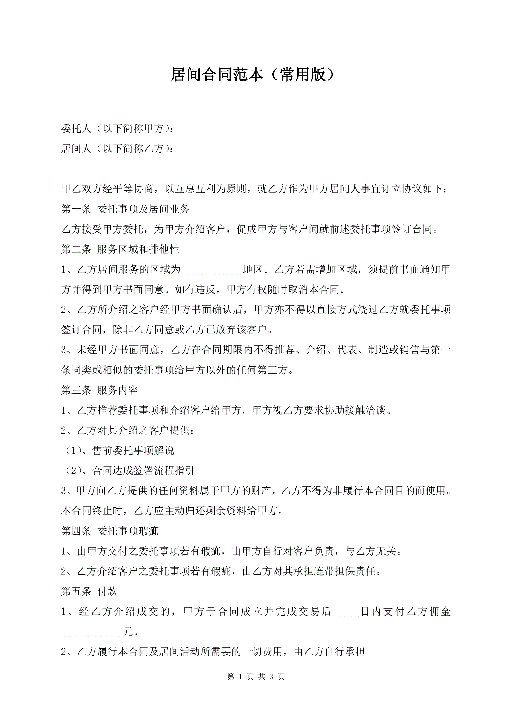 居间合同范本(常用版)