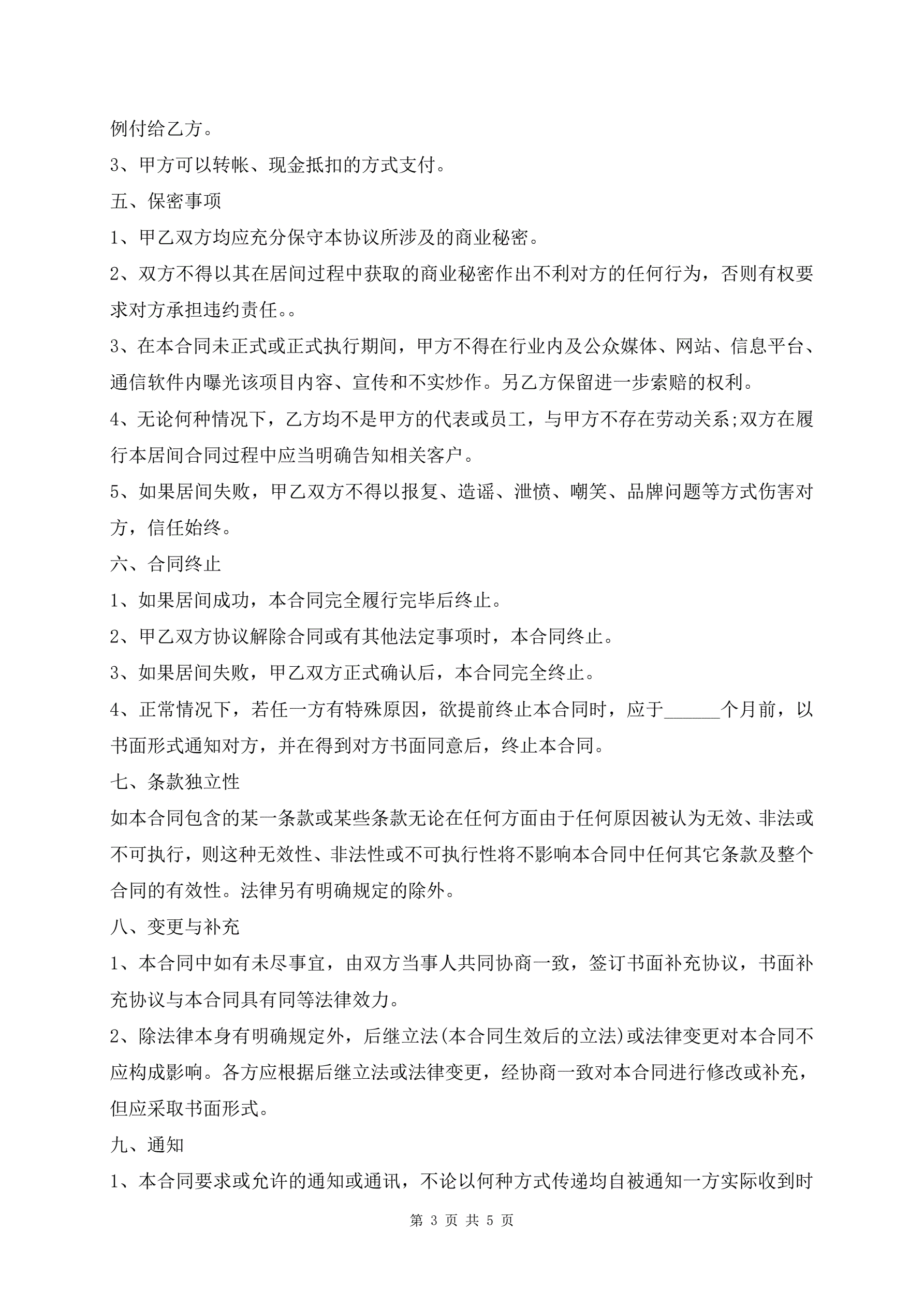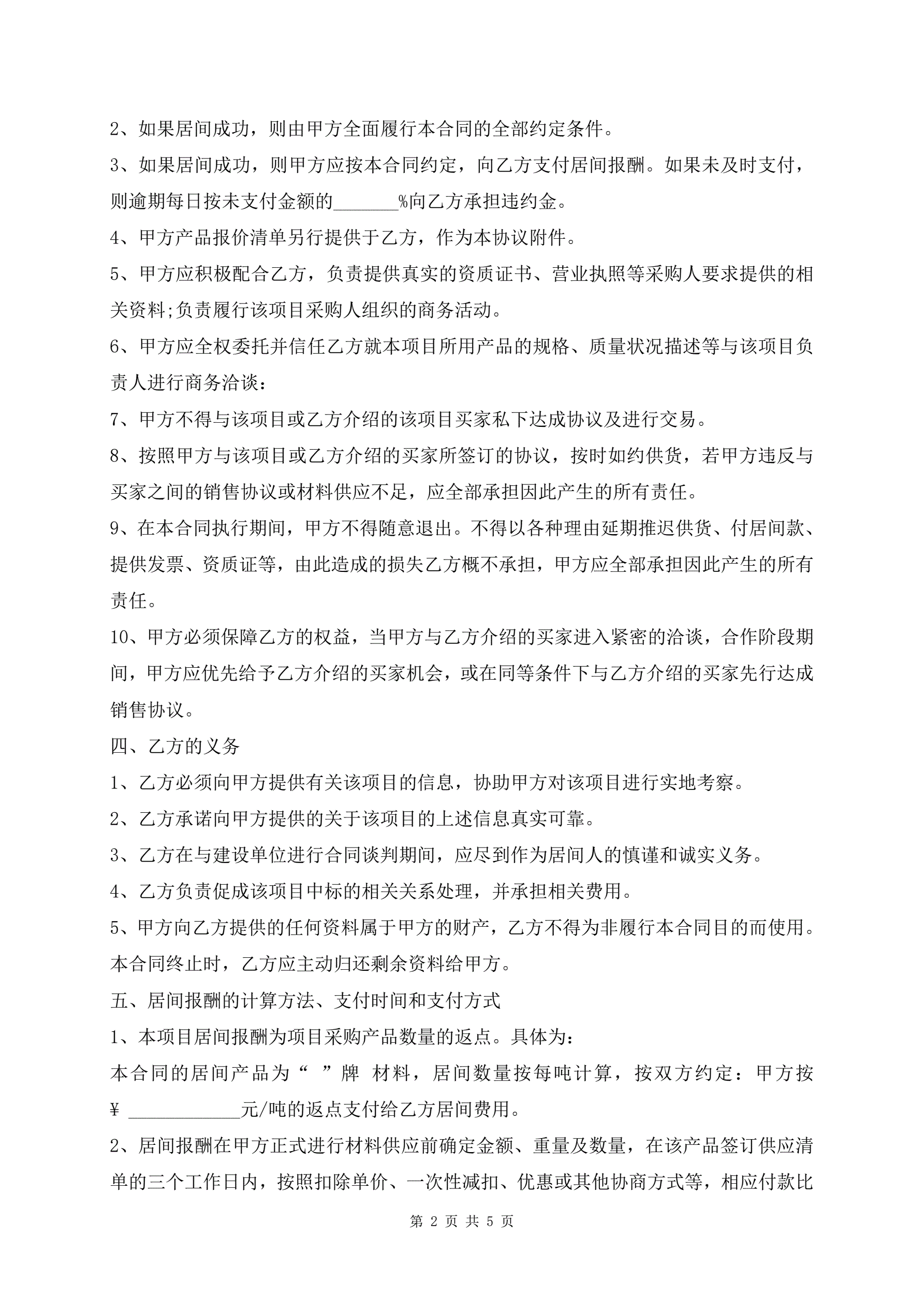 项目居间协议范文