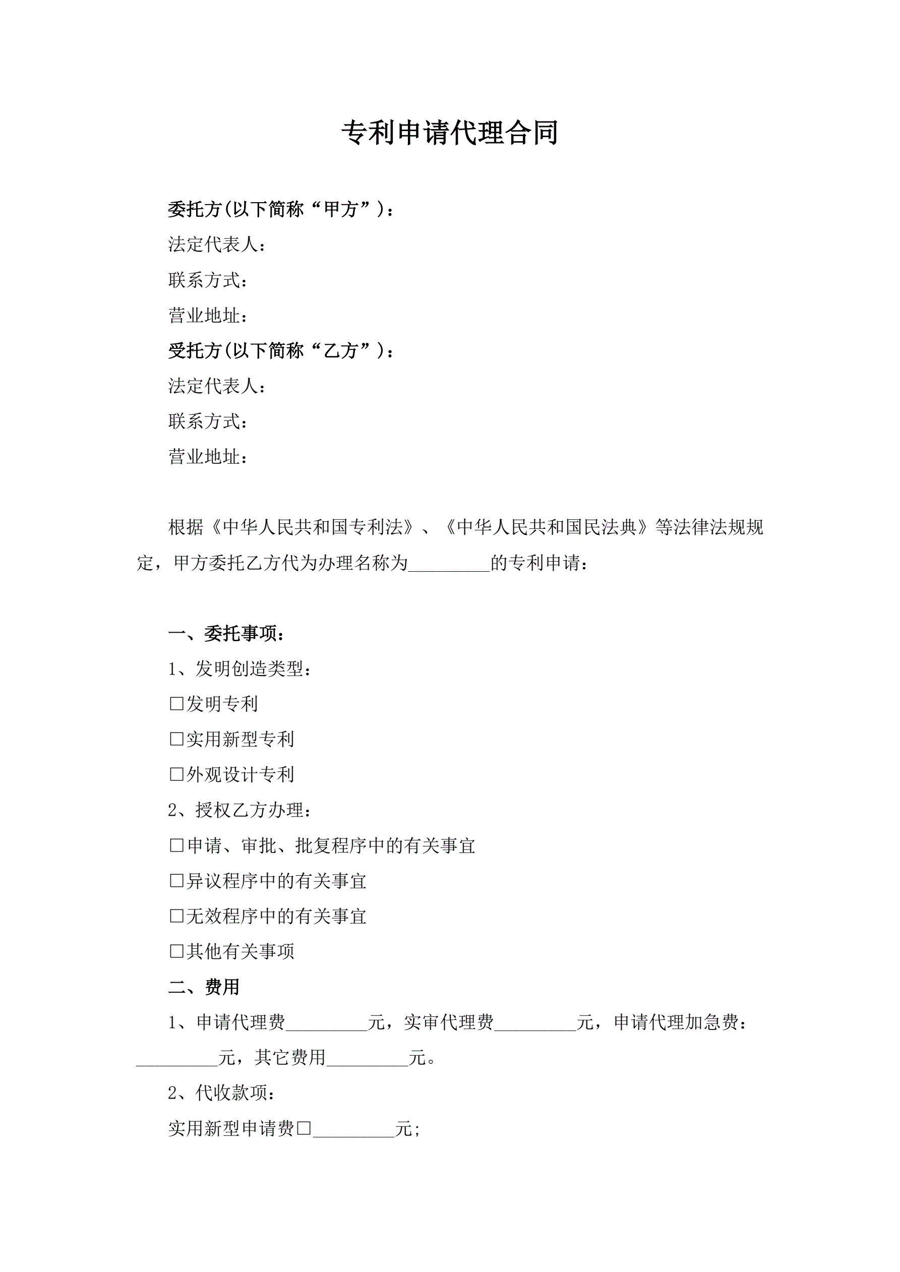 专利申请代理合同(指导版)