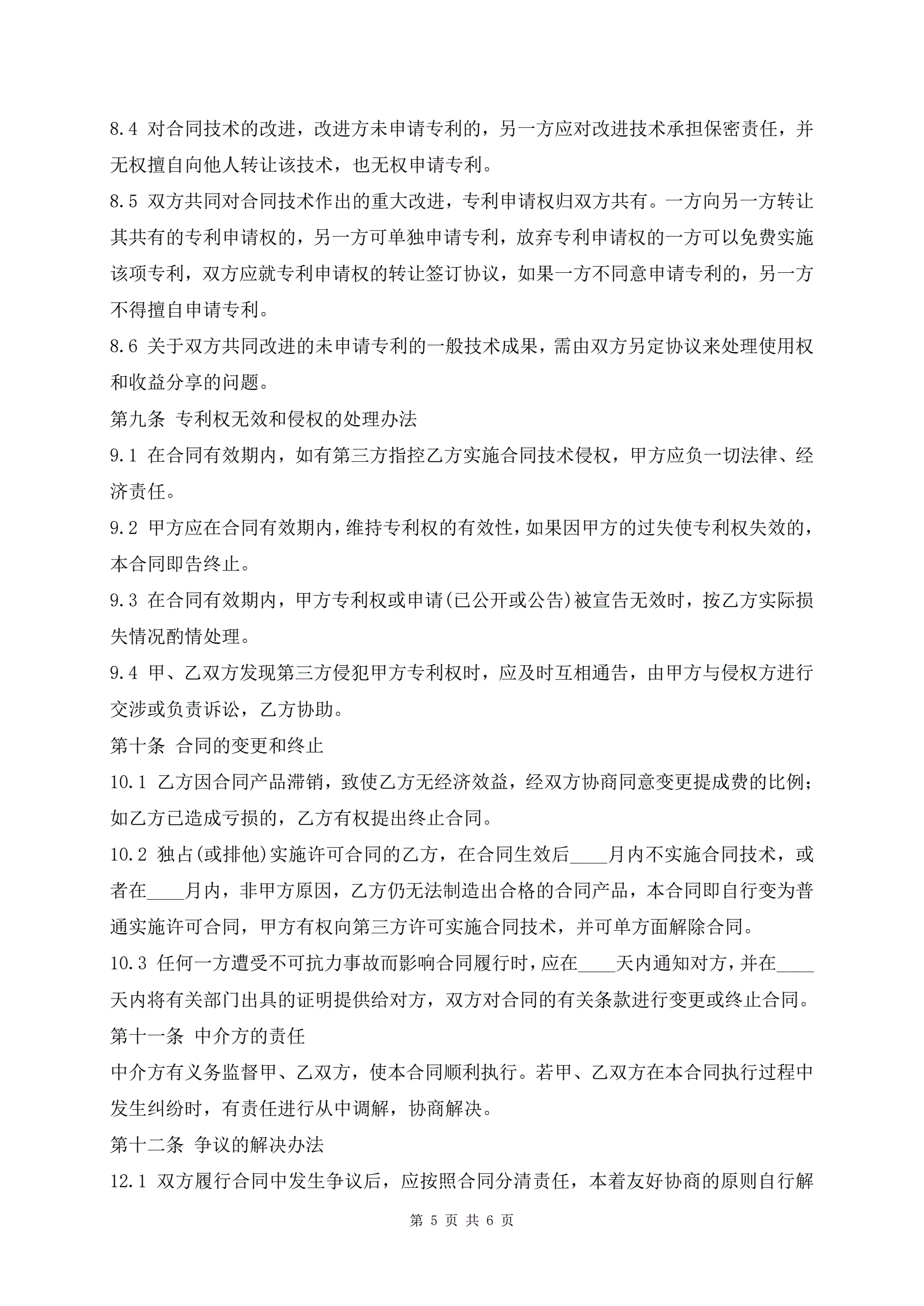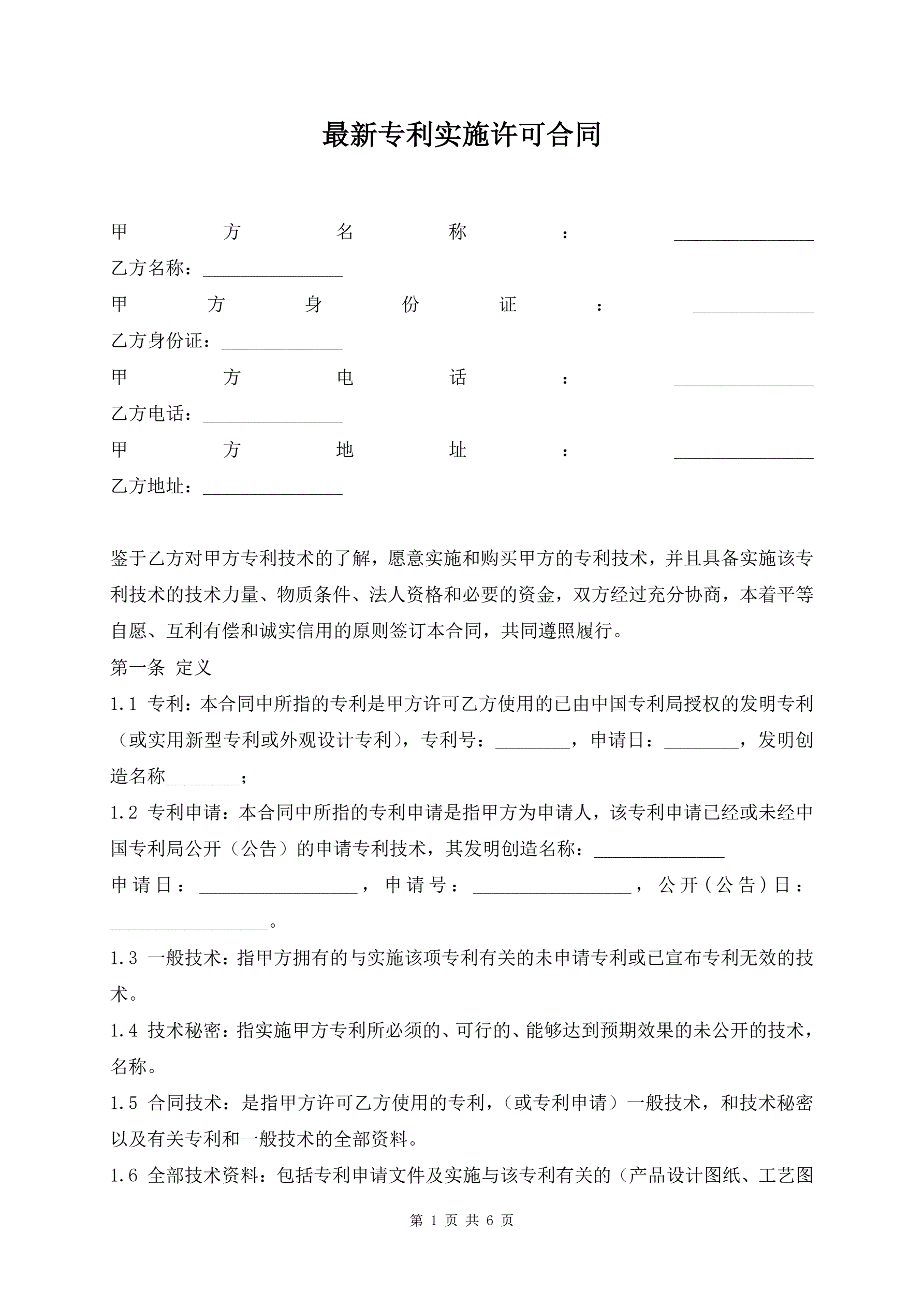 最新专利实施许可合同