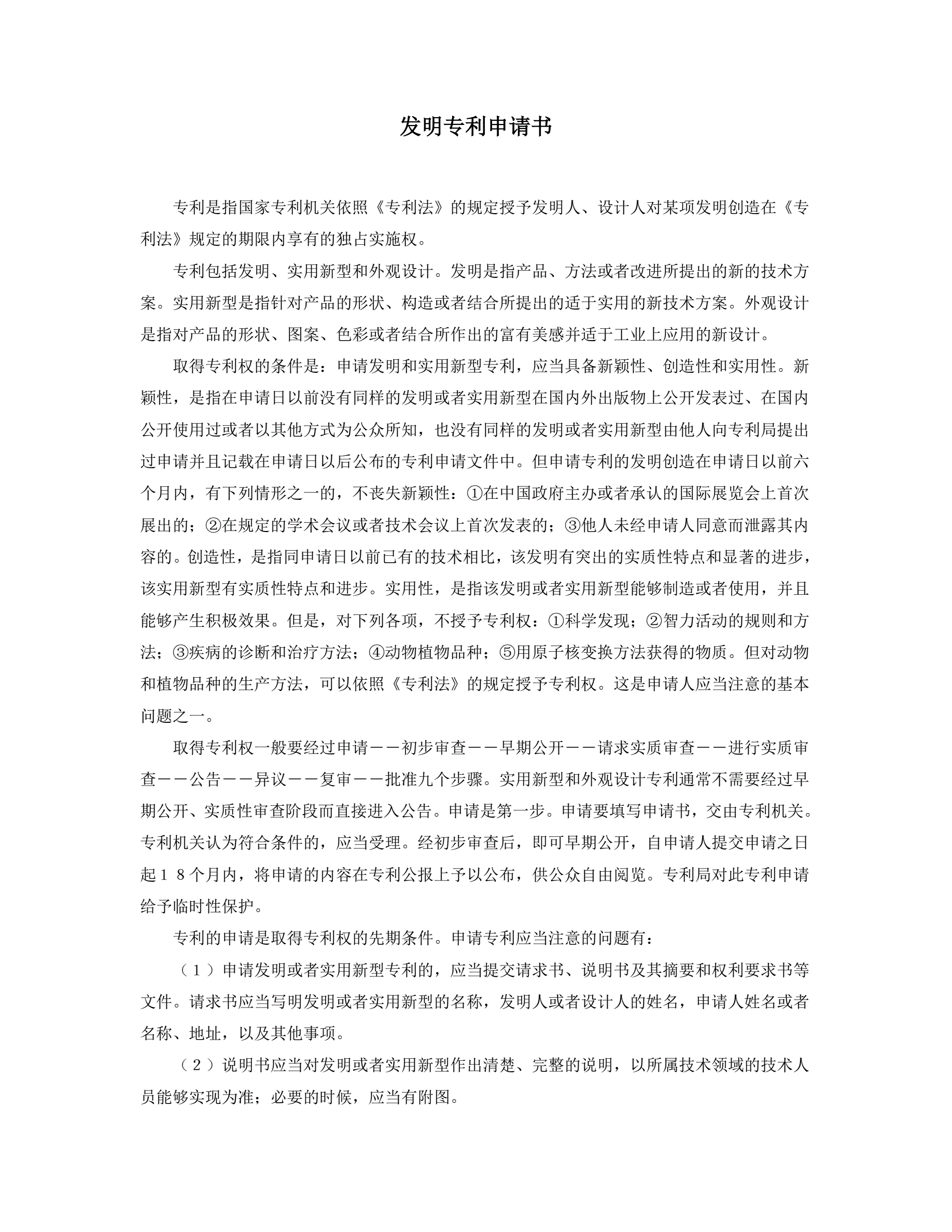发明专利申请书