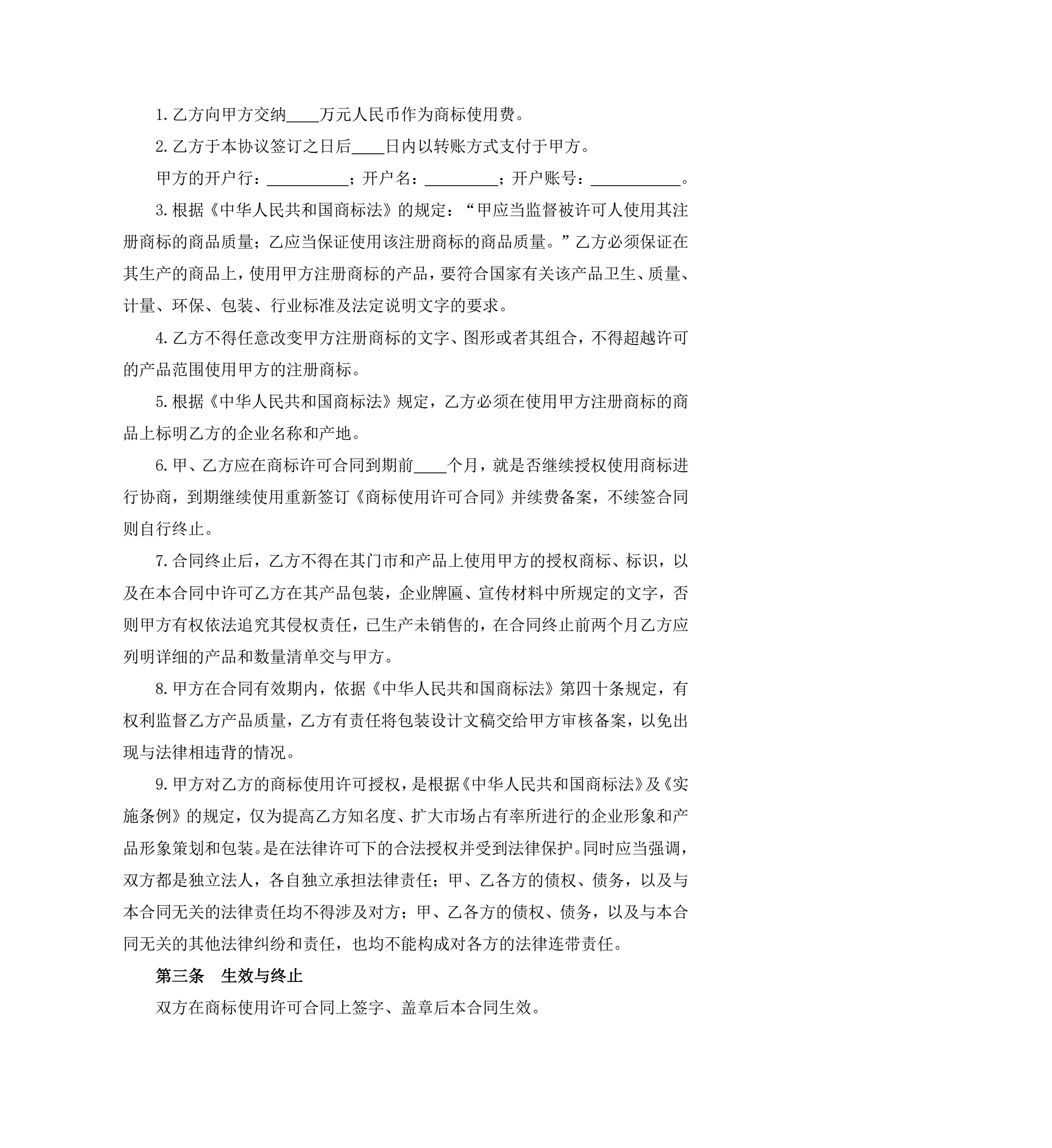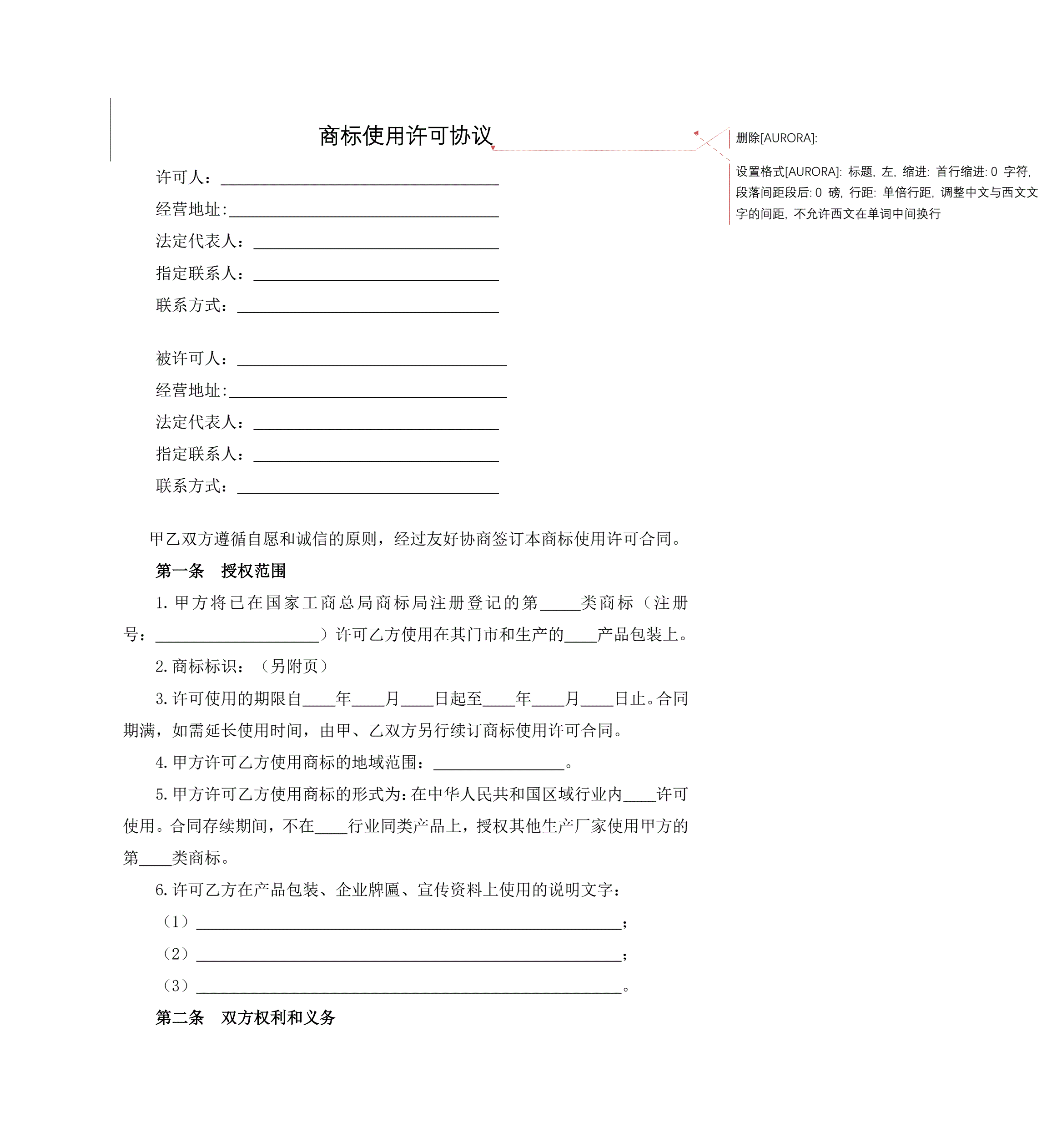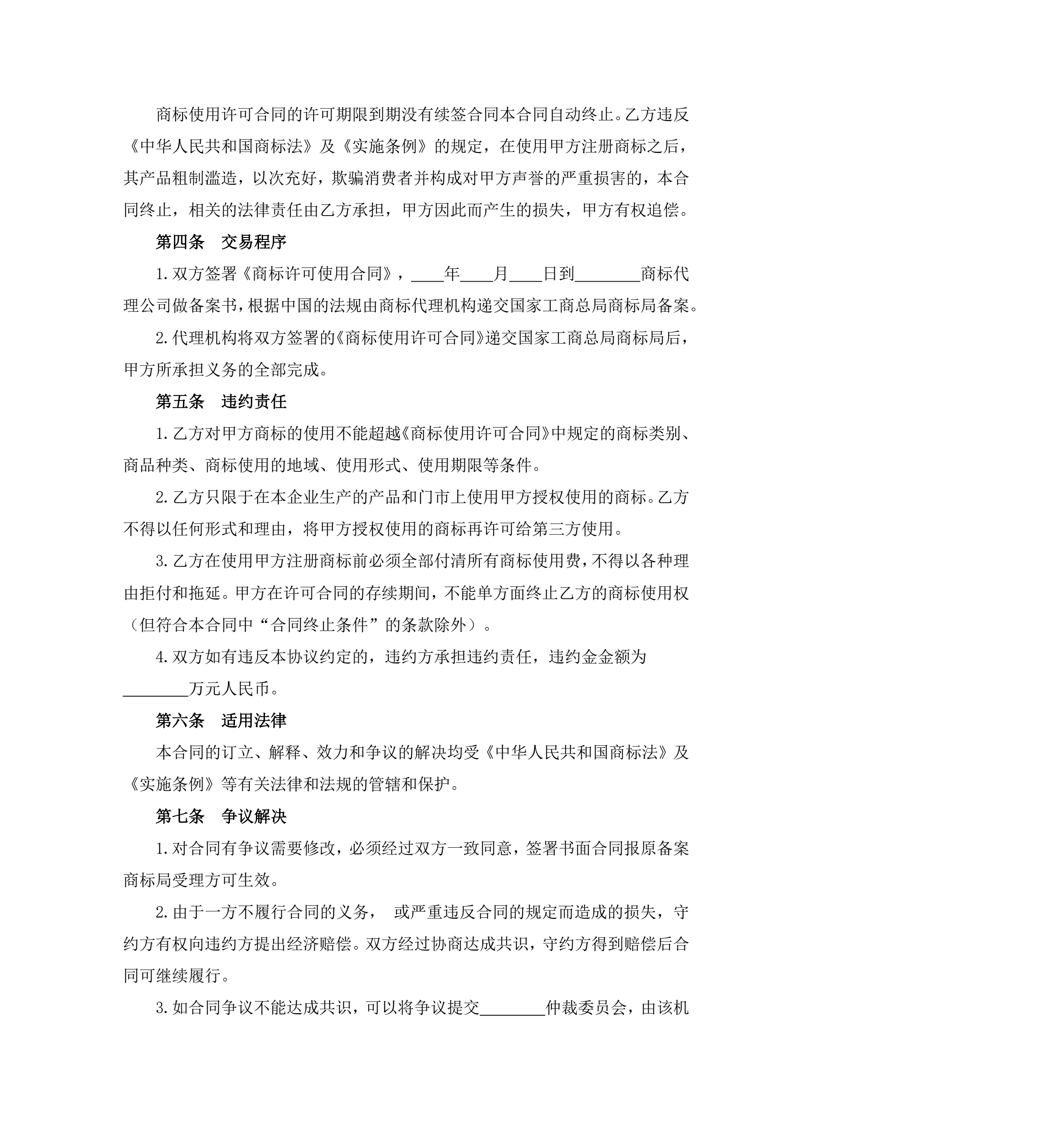 商标使用许可协议