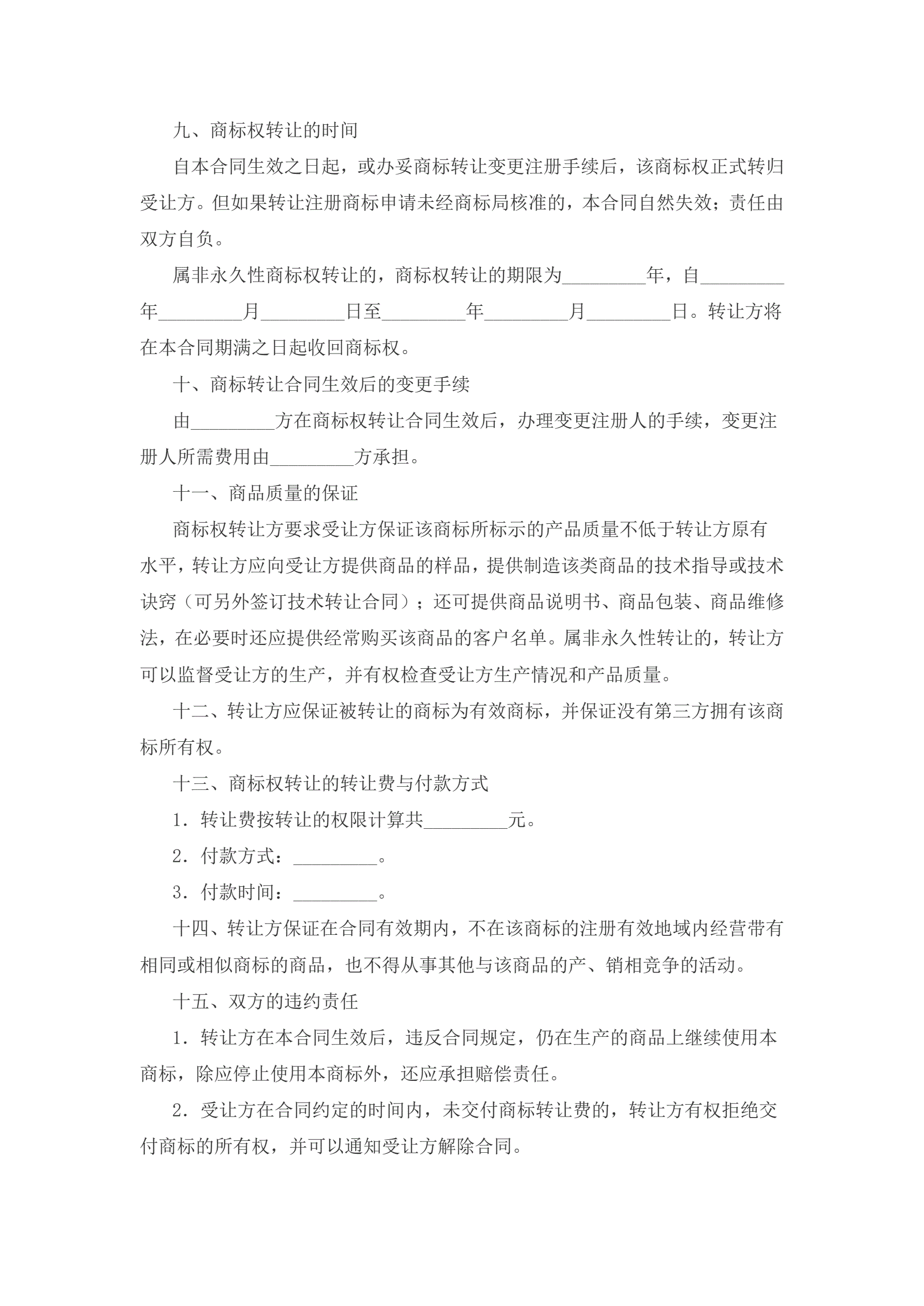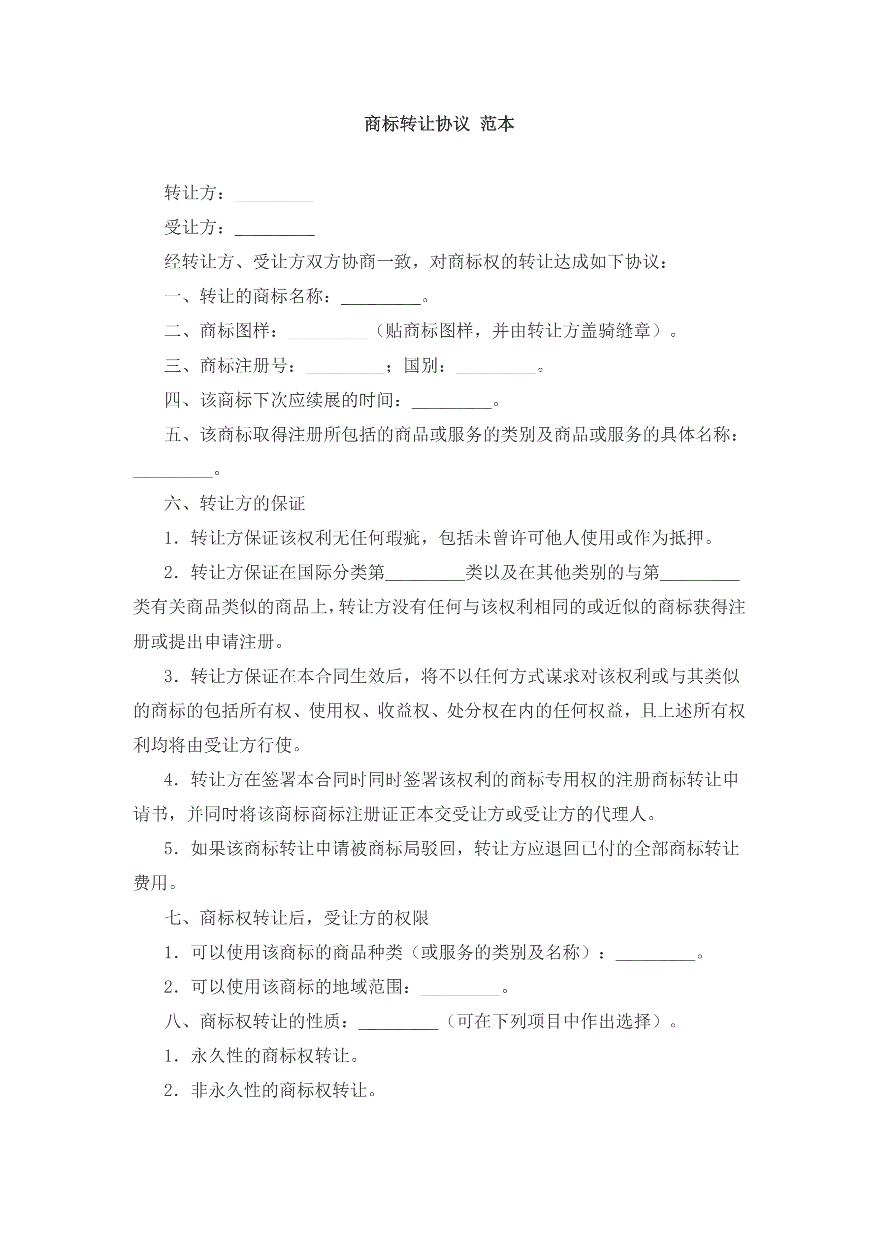商标转让协议范本