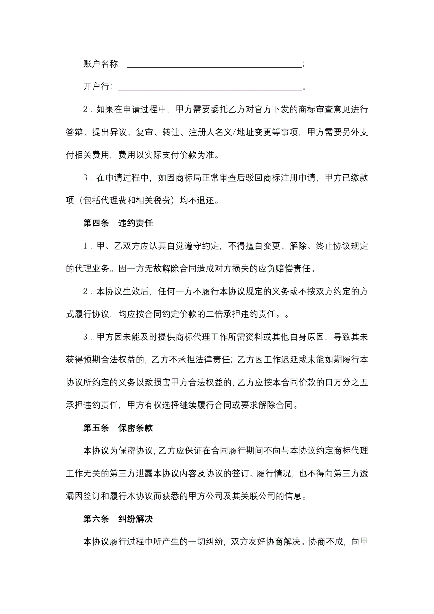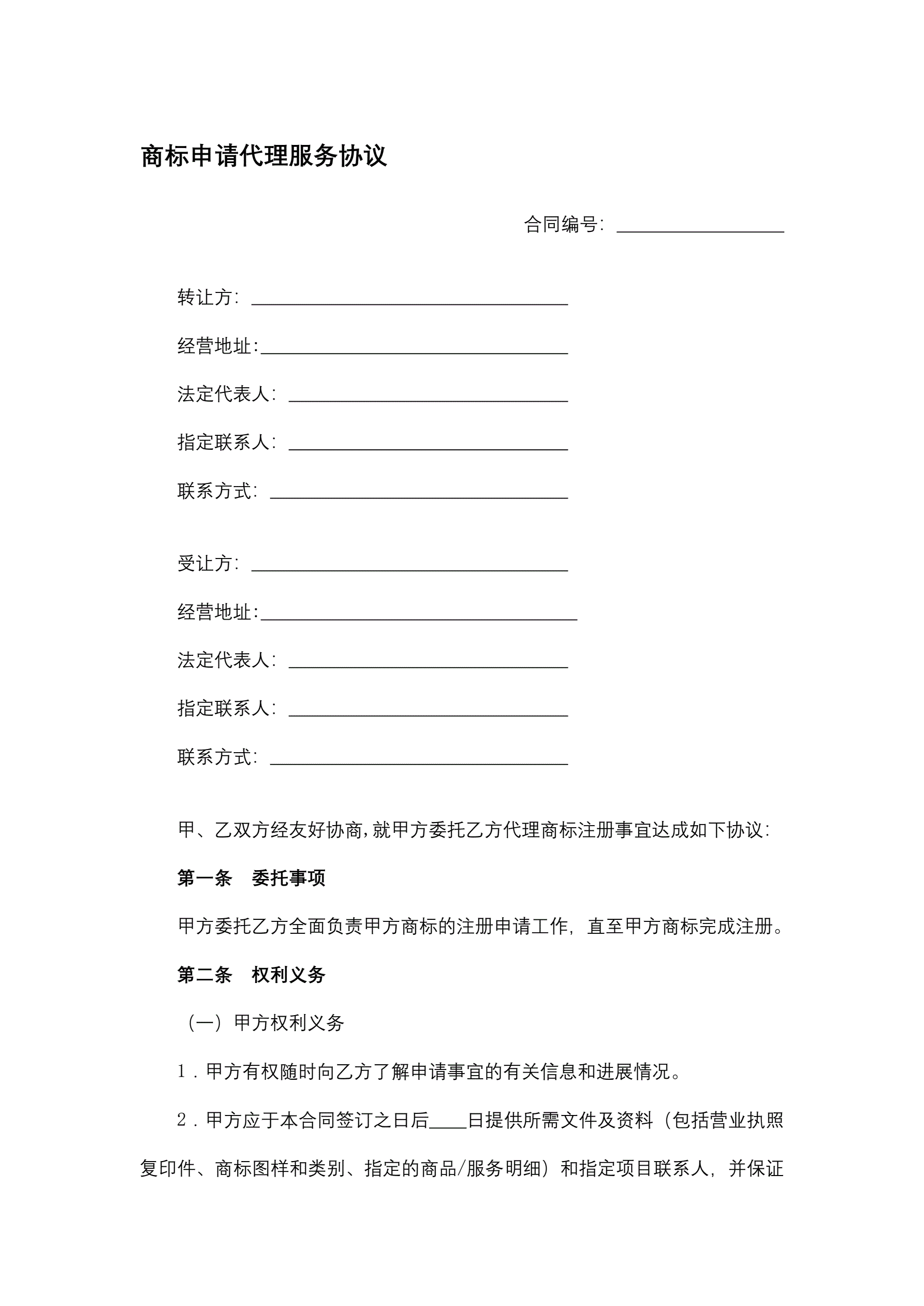 商标申请代理服务协议