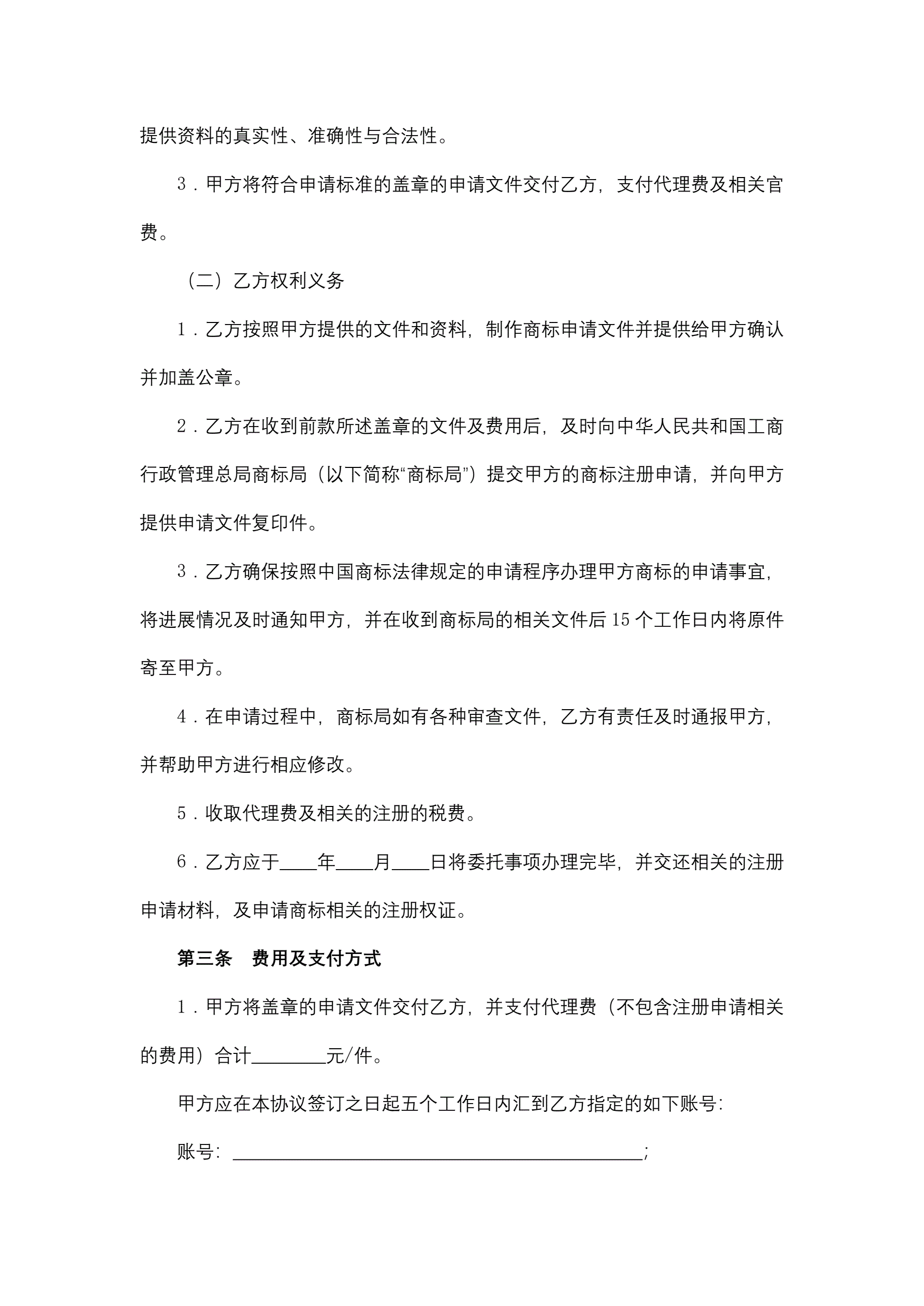 >商标申请代理服务协议