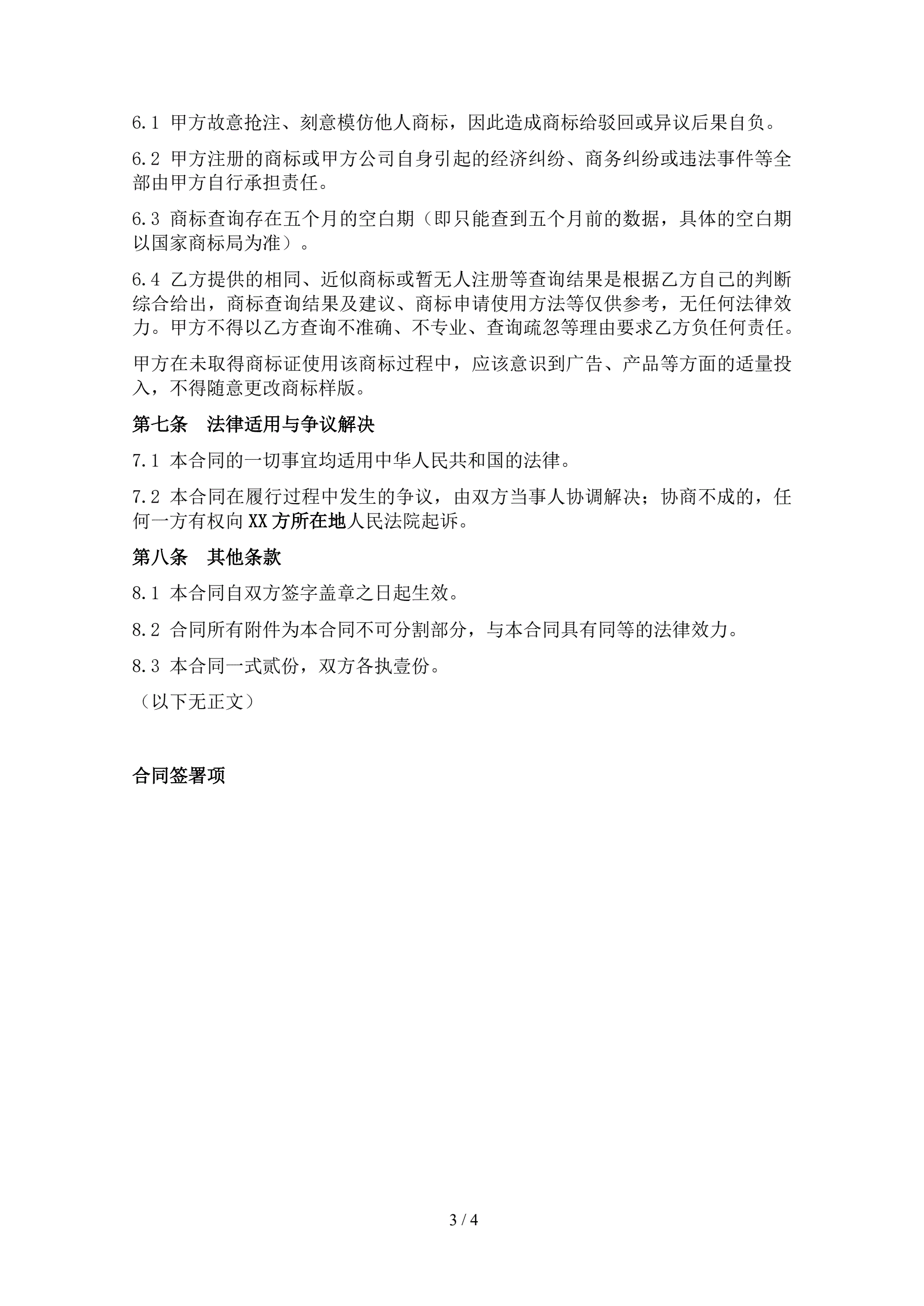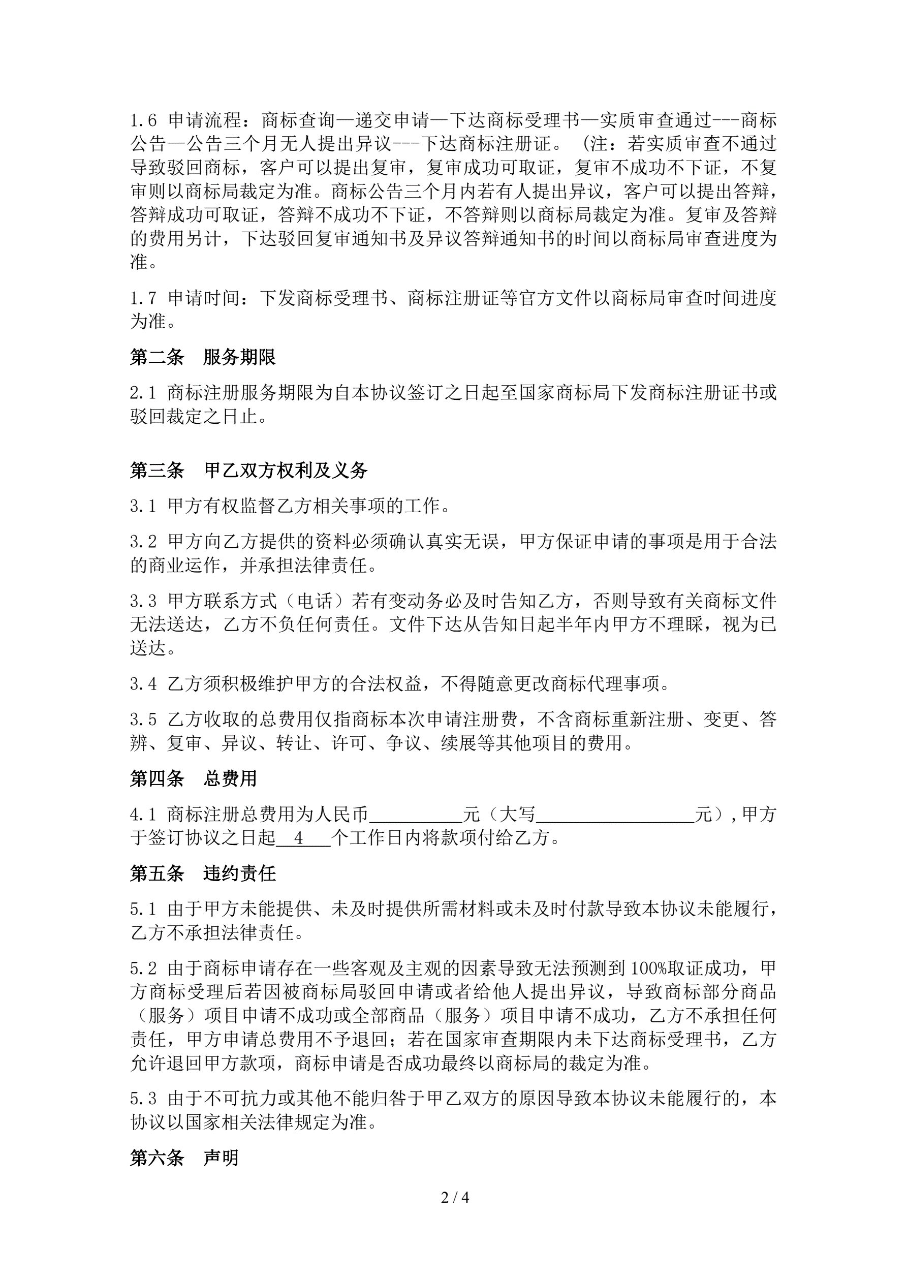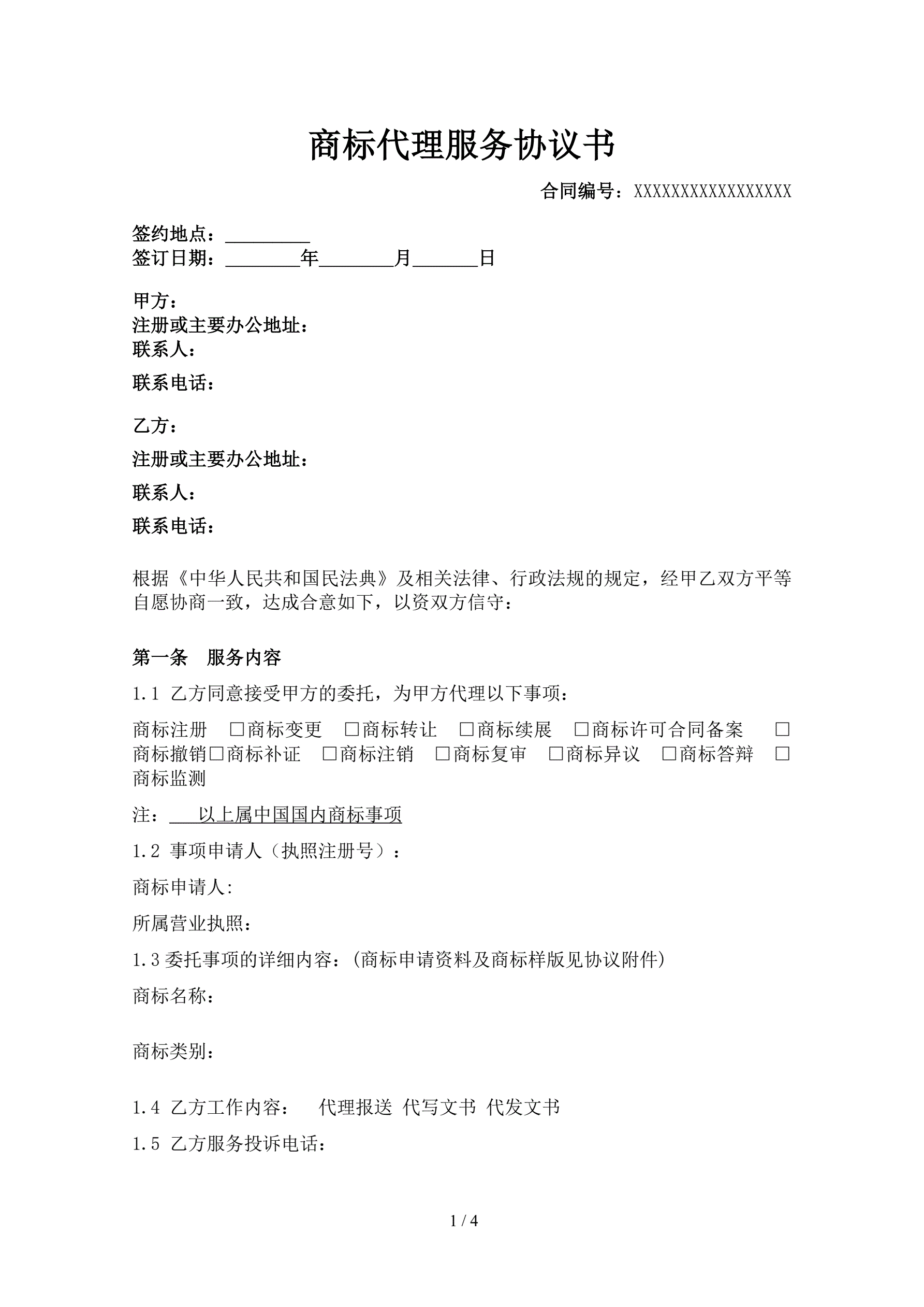商标代理服务协议书
