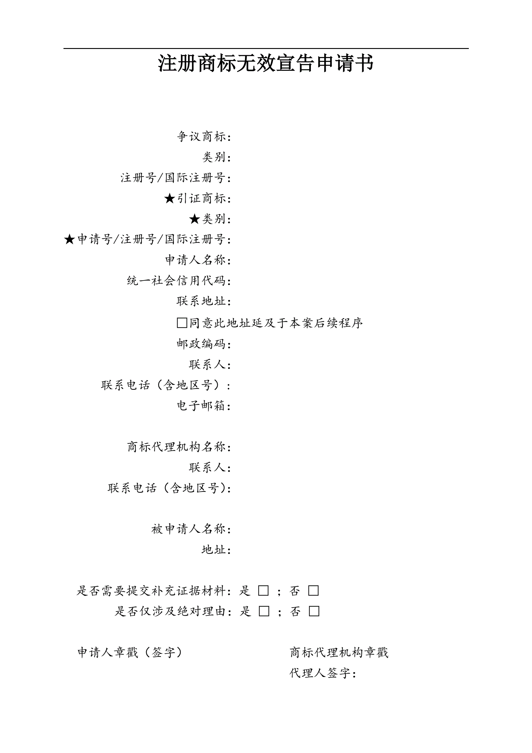 >注册商标无效宣告申请书(指导版)