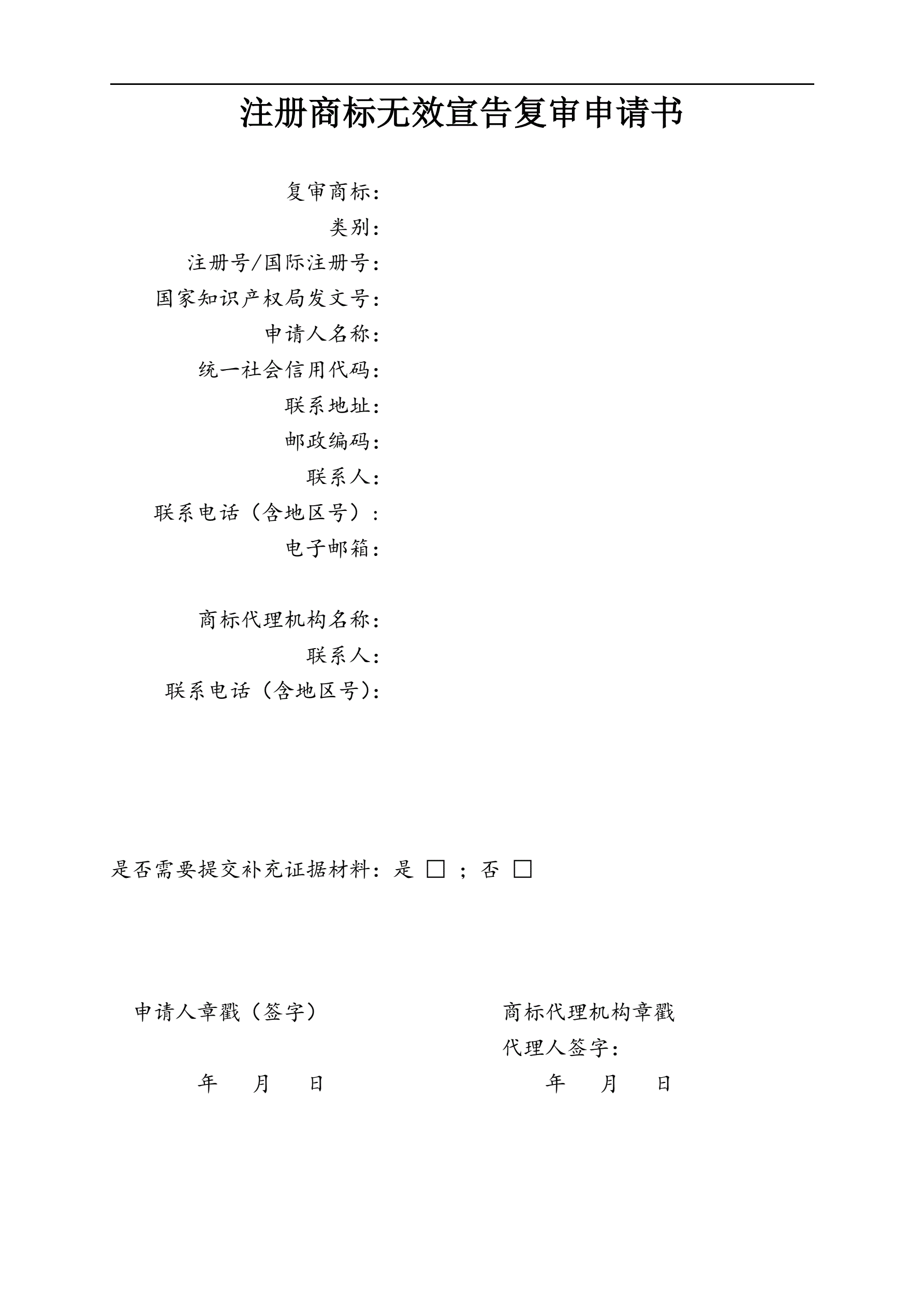 >注册商标无效宣告复审申请书(指导版)
