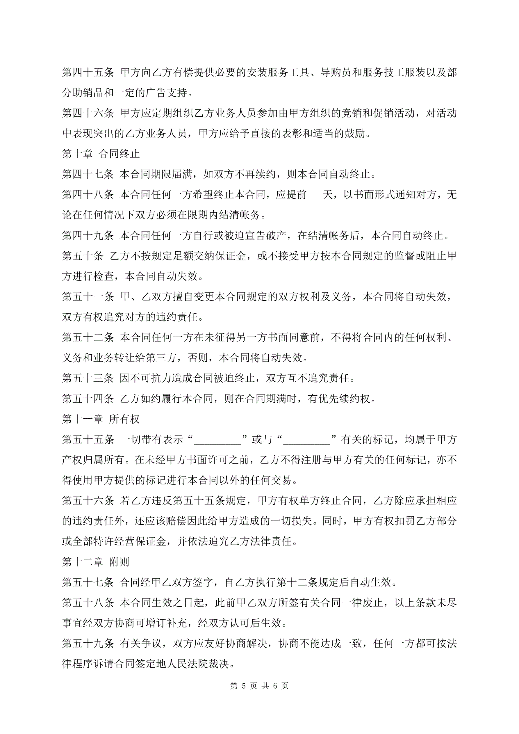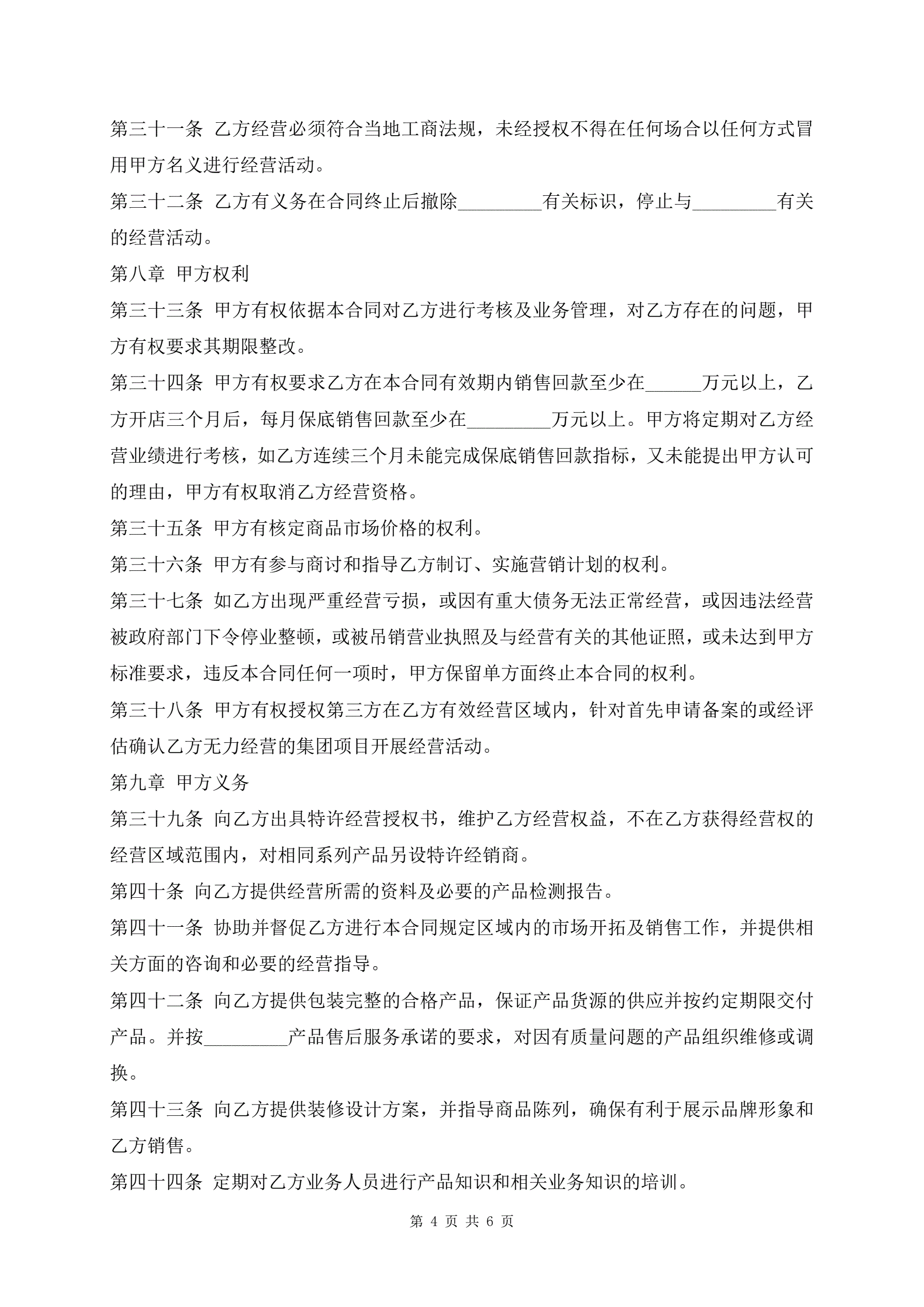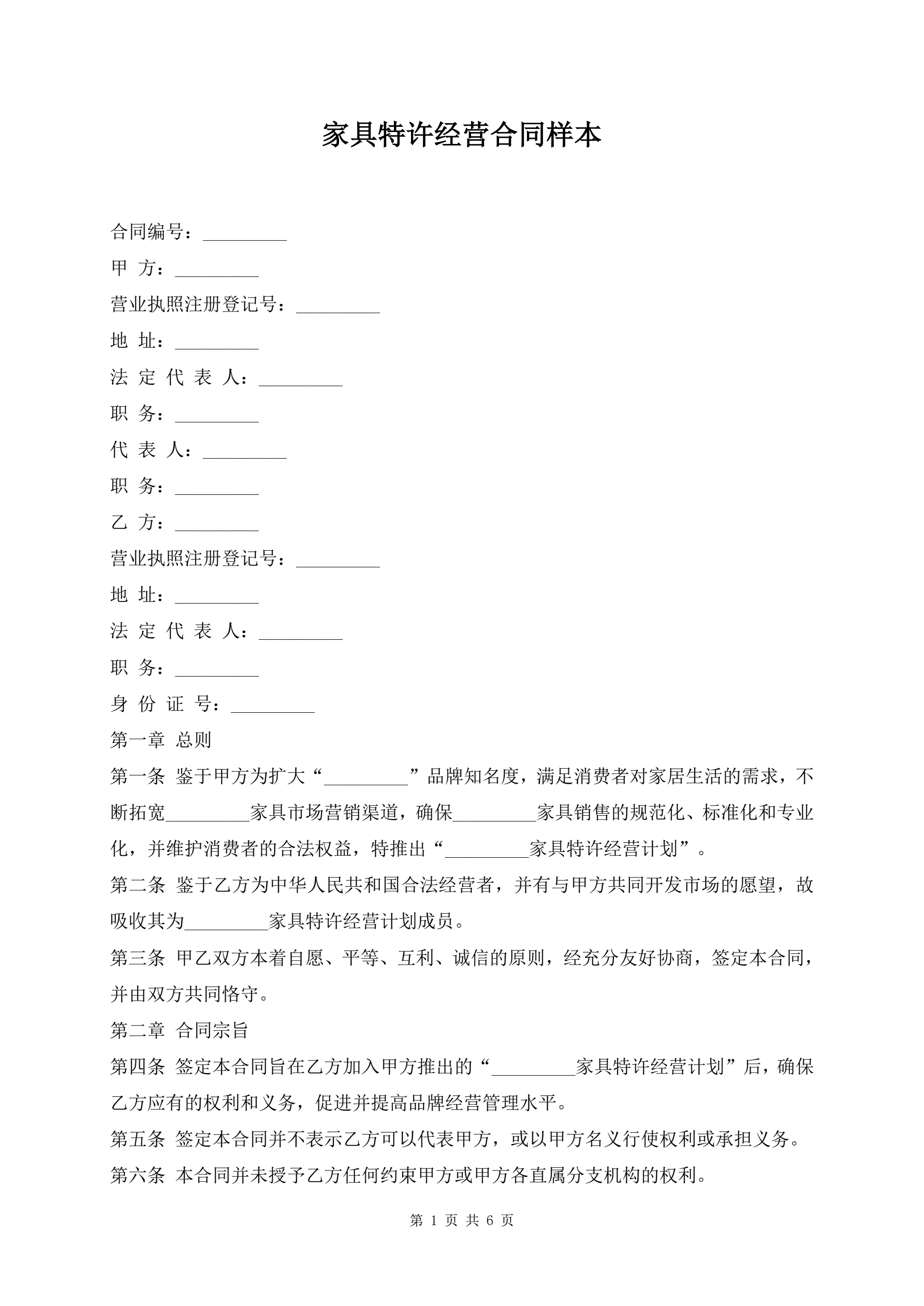 家具特许经营合同样本
