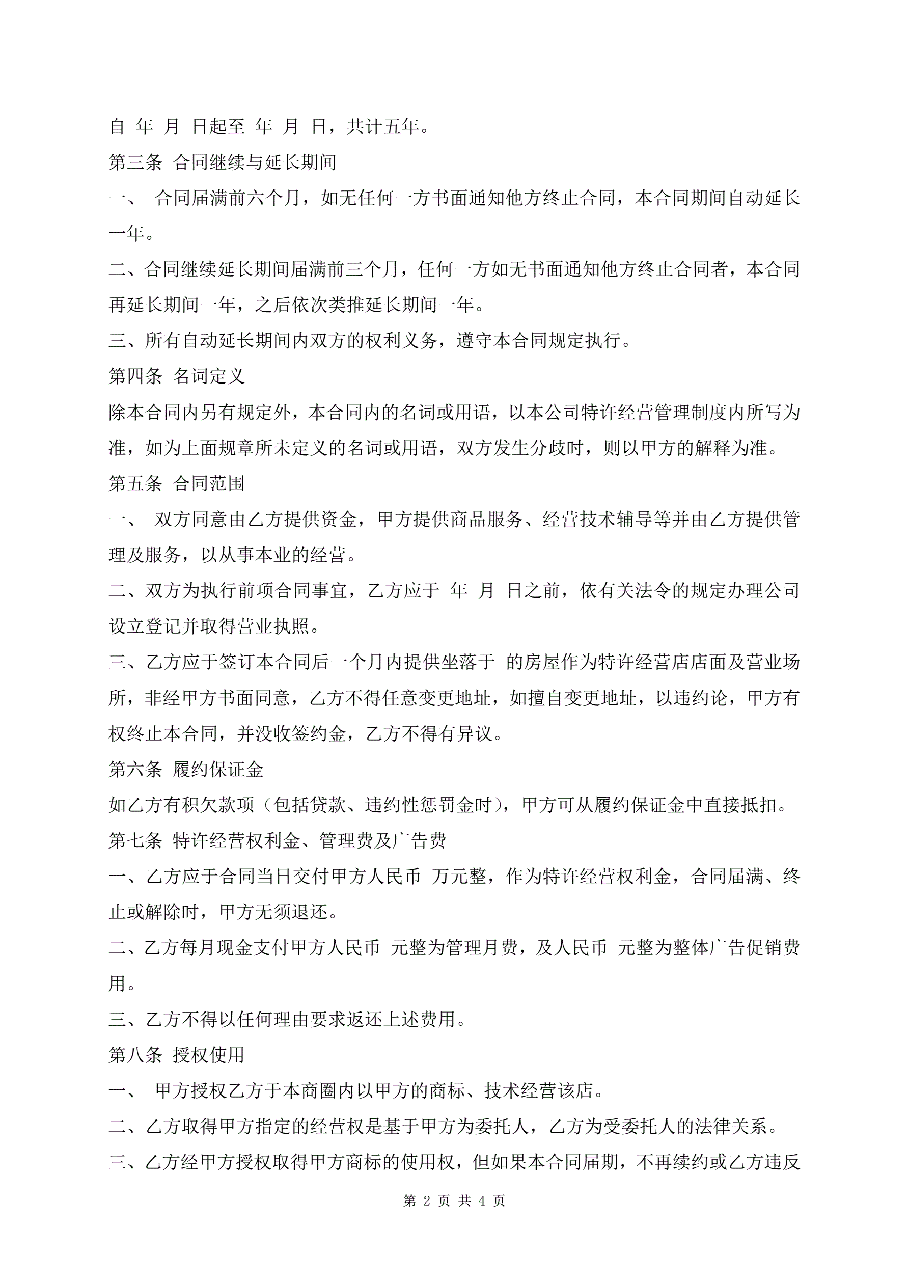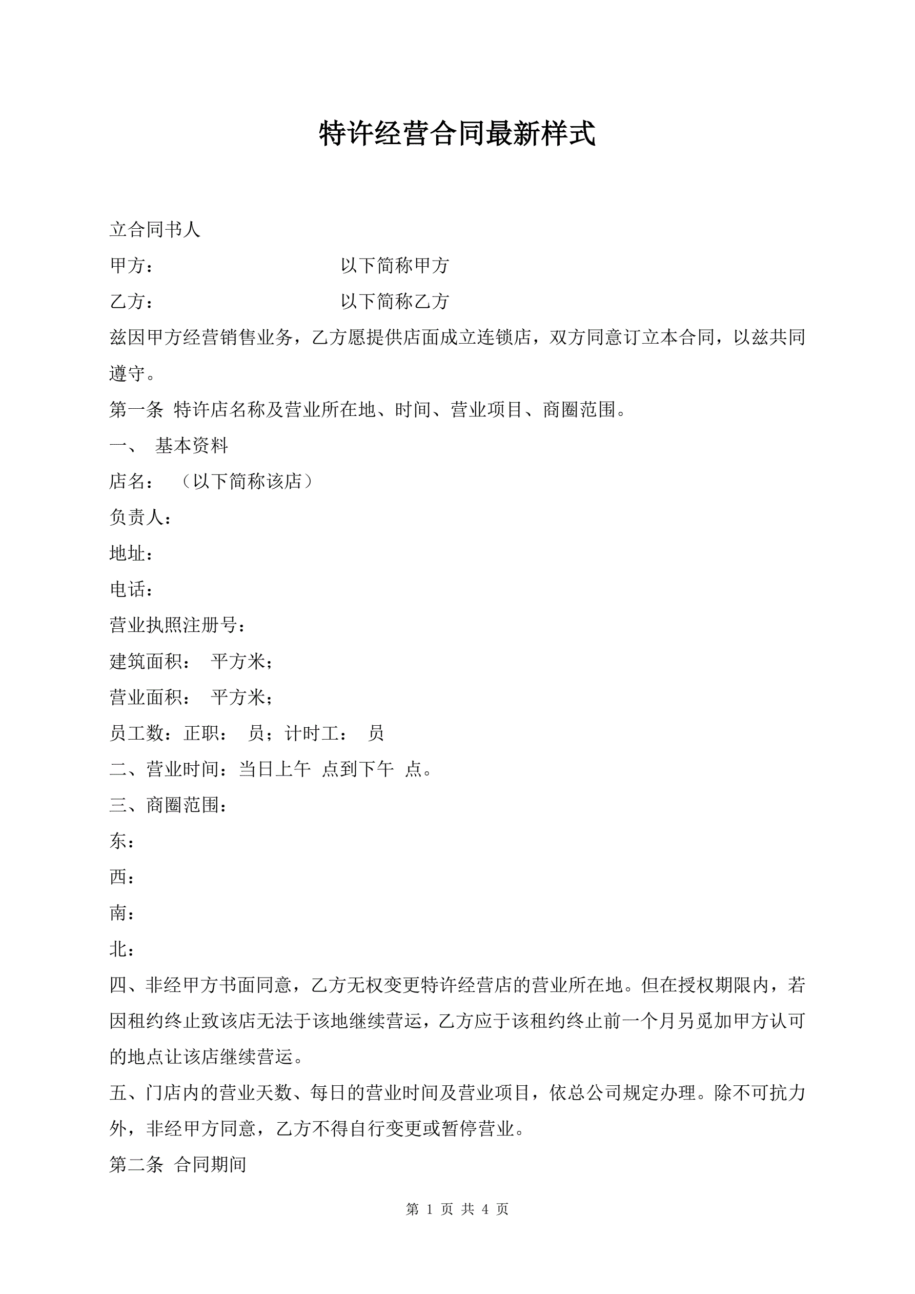 特许经营合同最新样式
