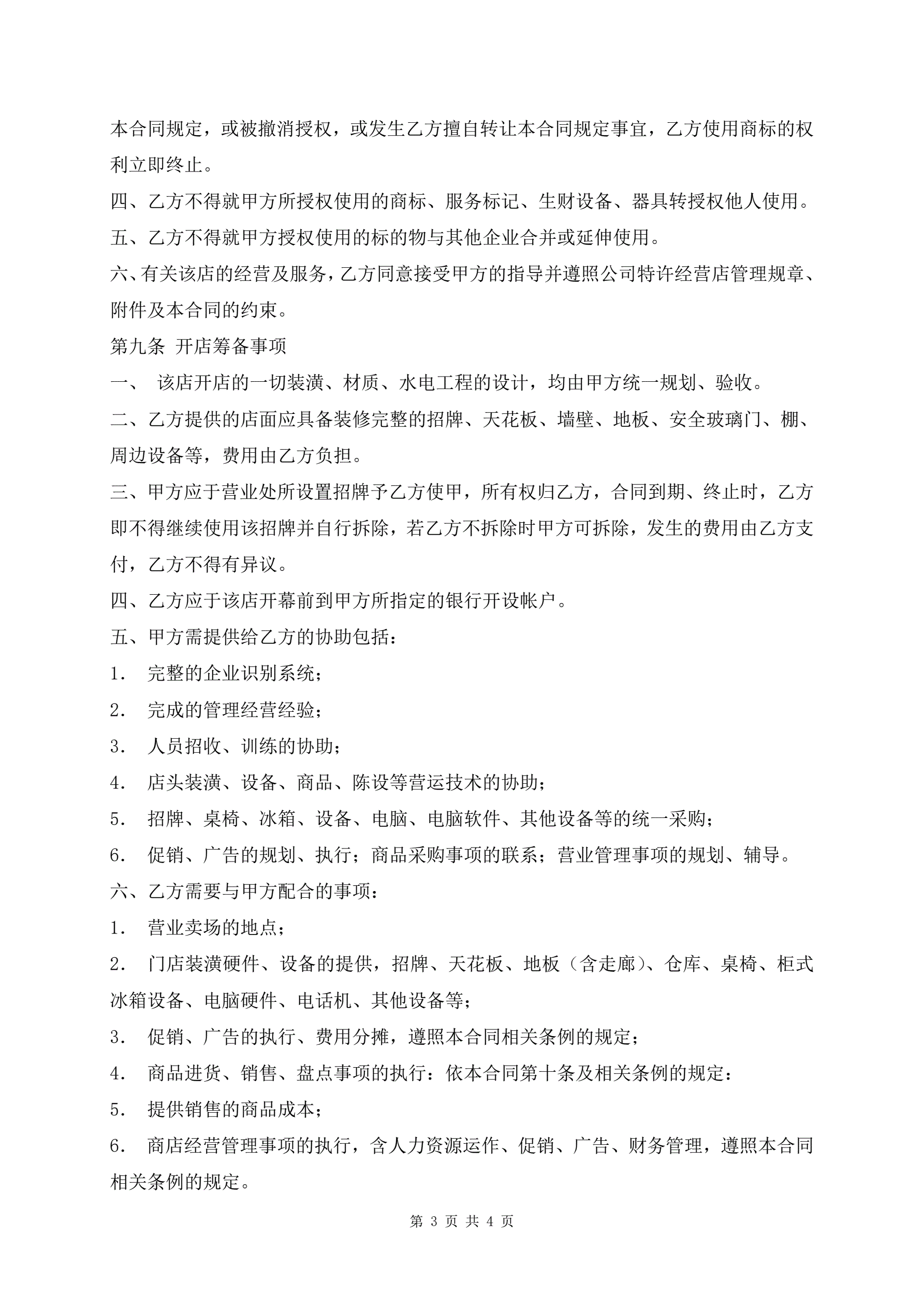 >特许经营合同最新样式