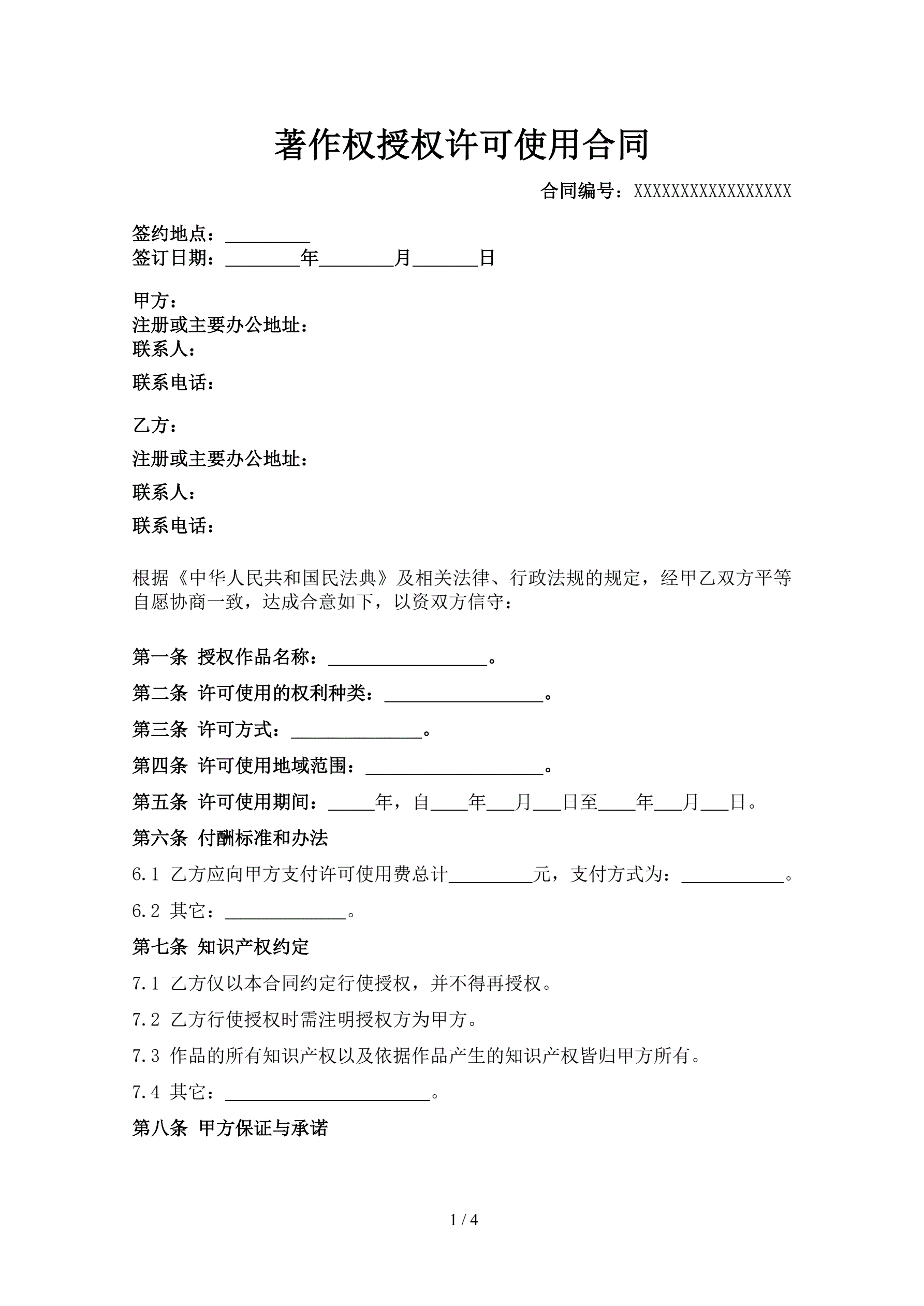 >著作权授权许可使用合同