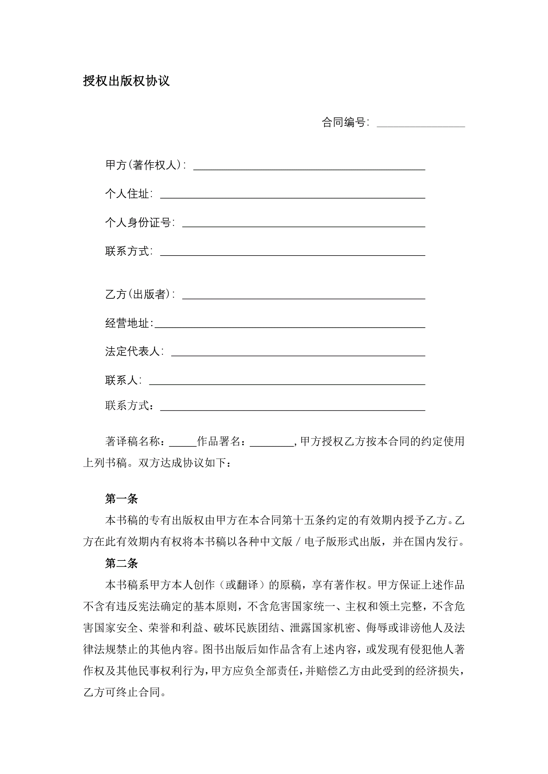 >授权出版权协议