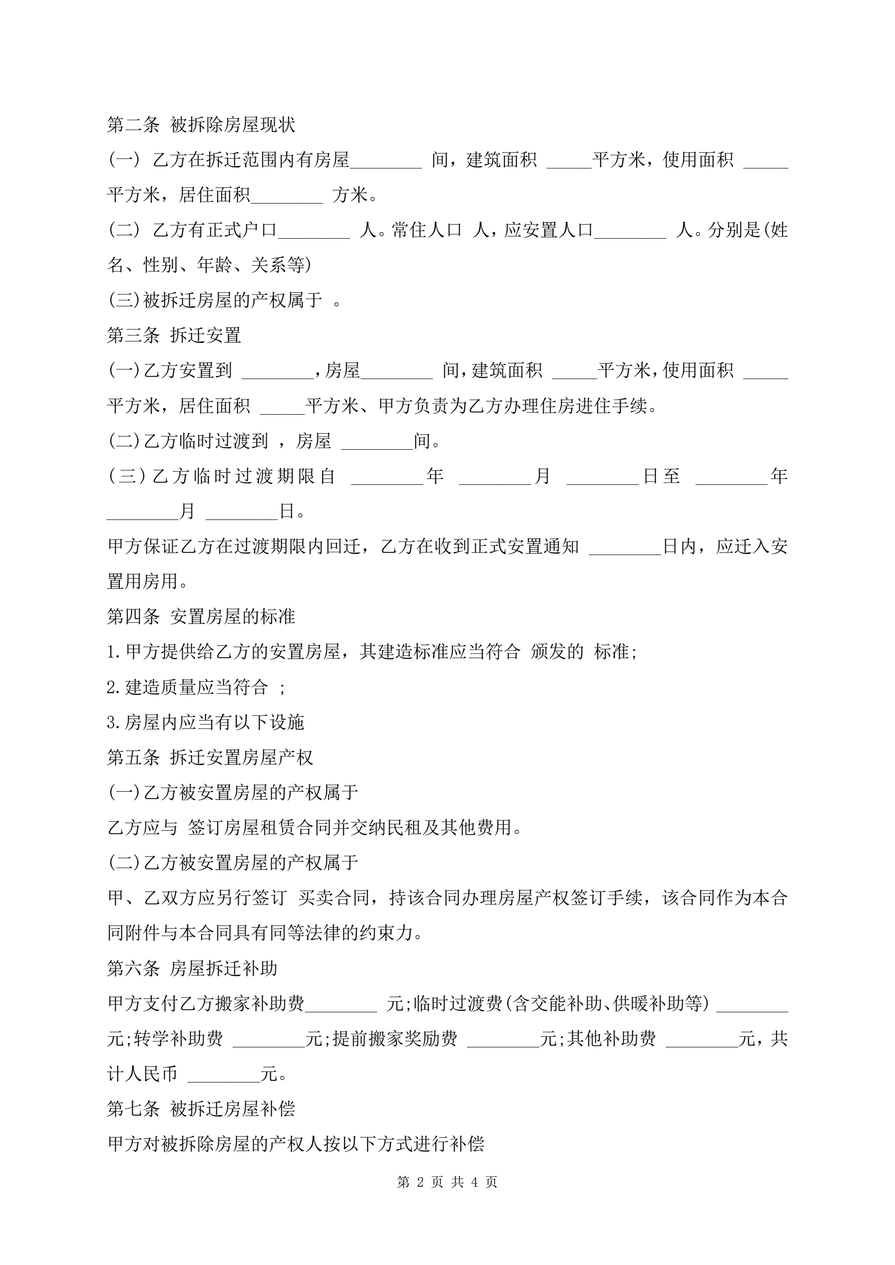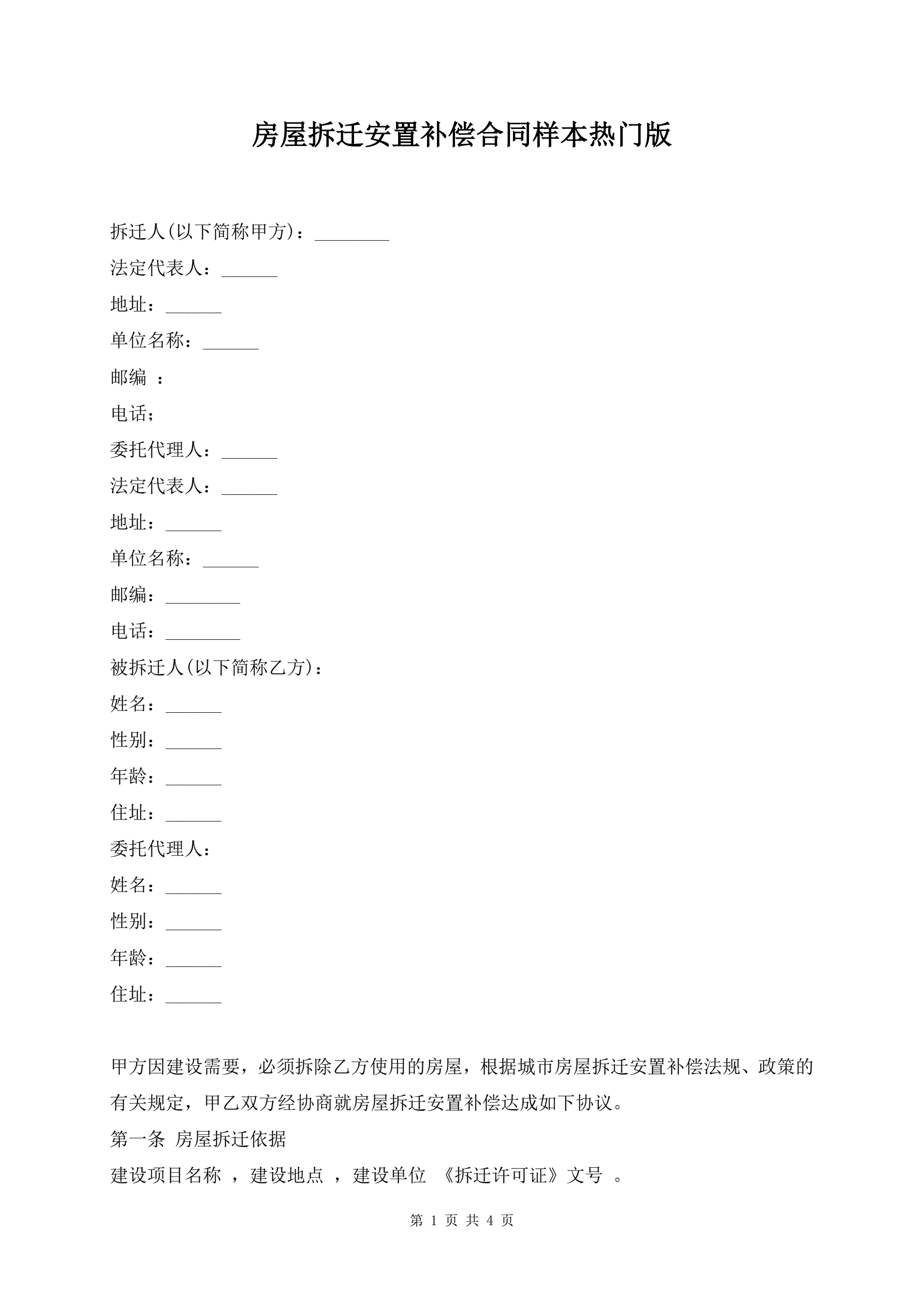 房屋拆迁安置补偿合同样本热门版