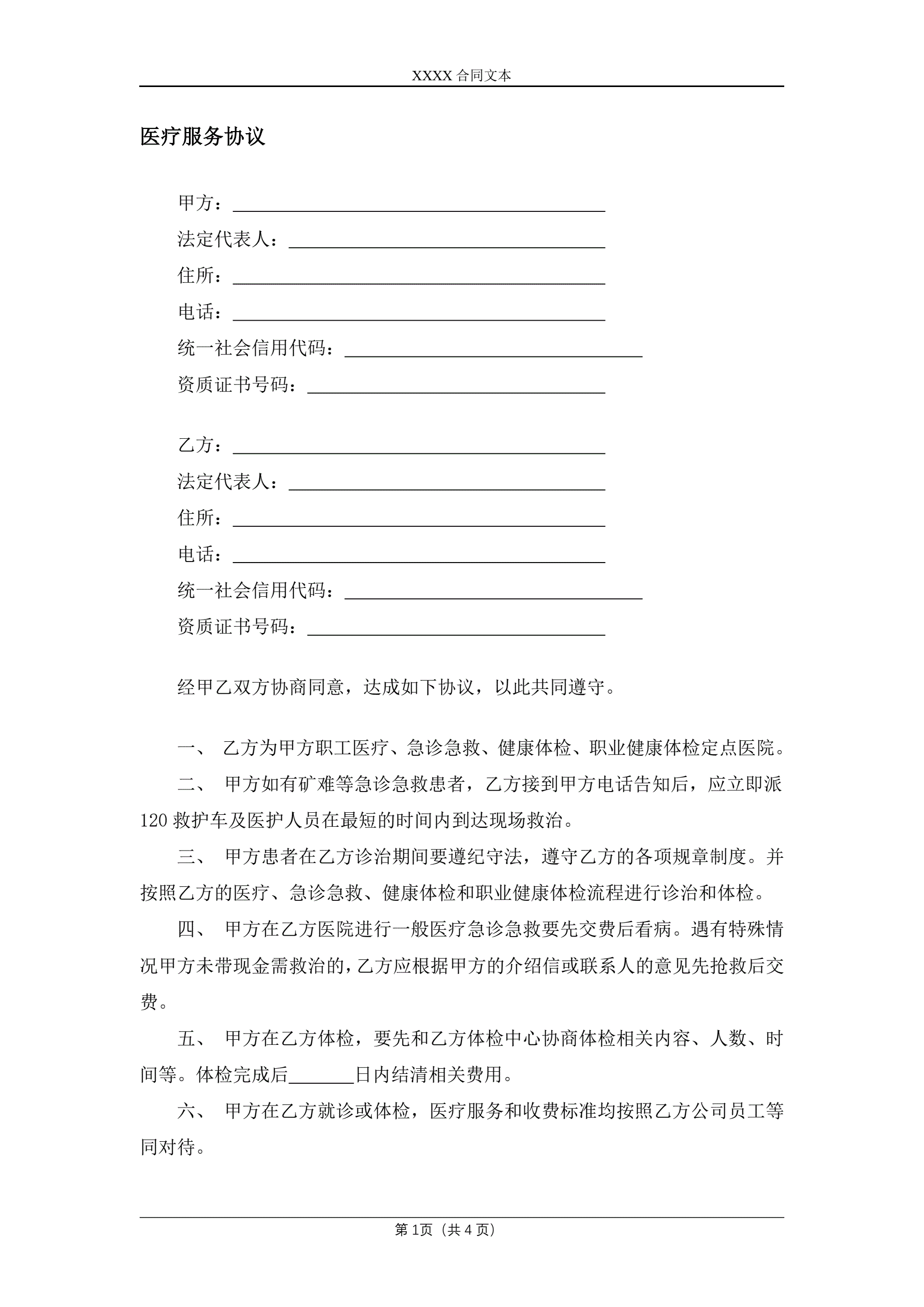 >医疗服务协议(职工定点)