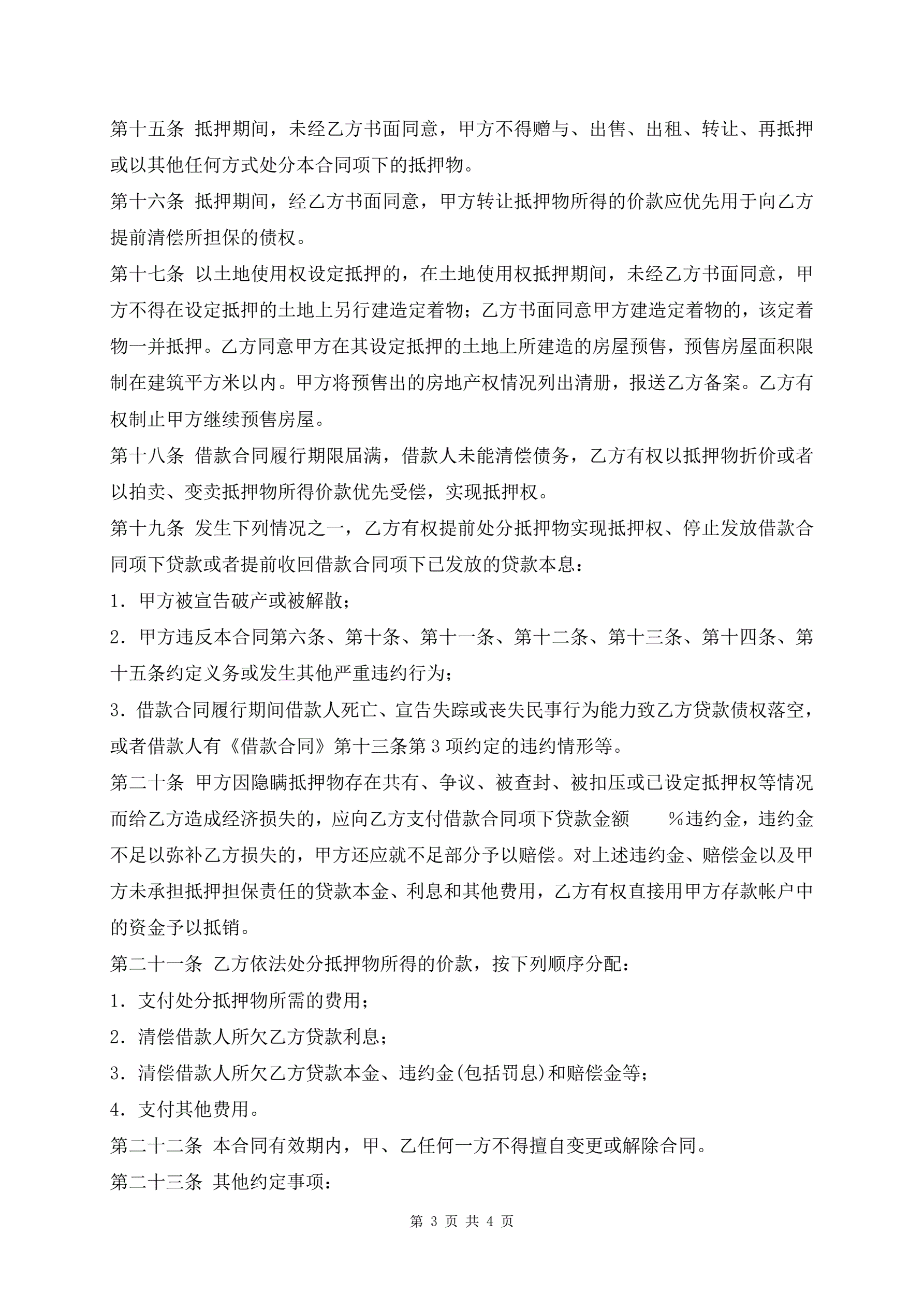 >个人住房贷款质押经典合同样本