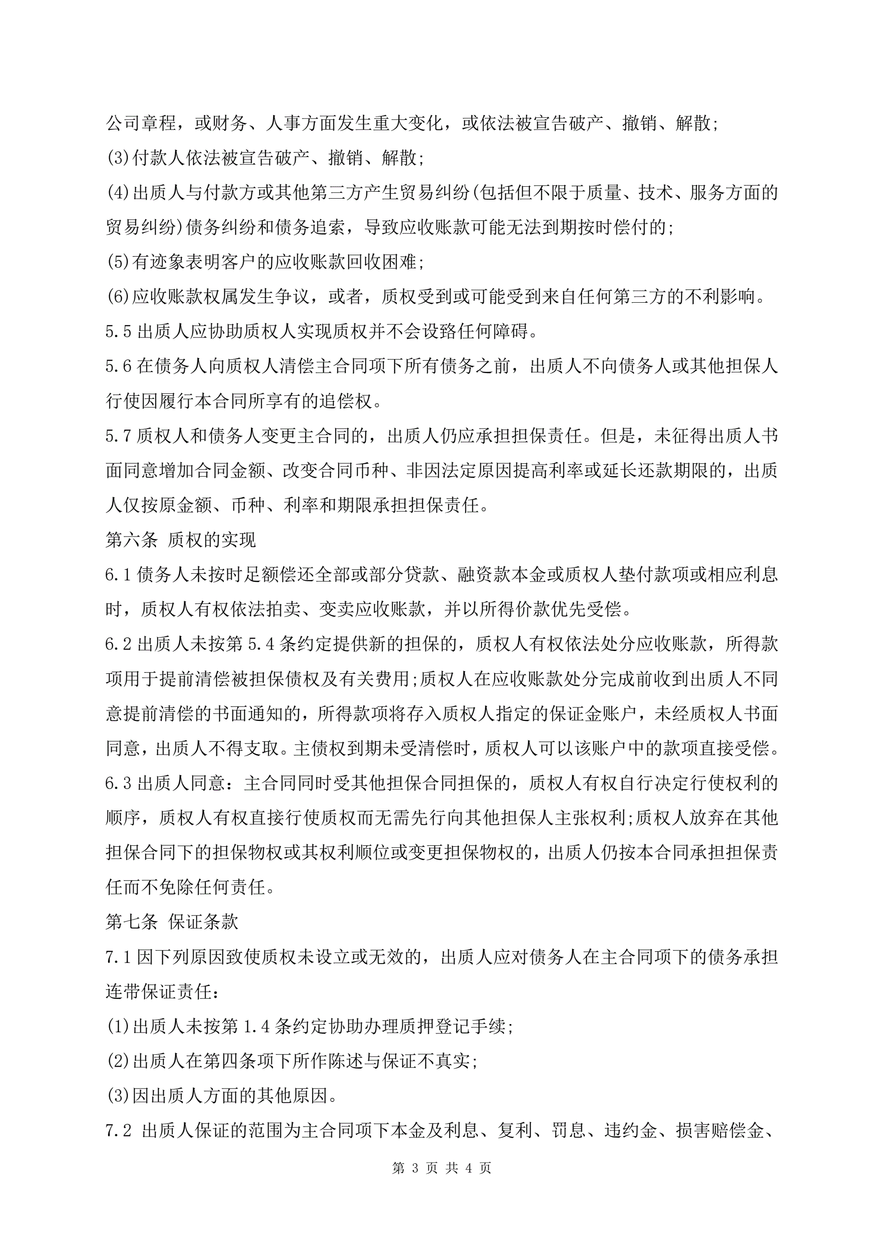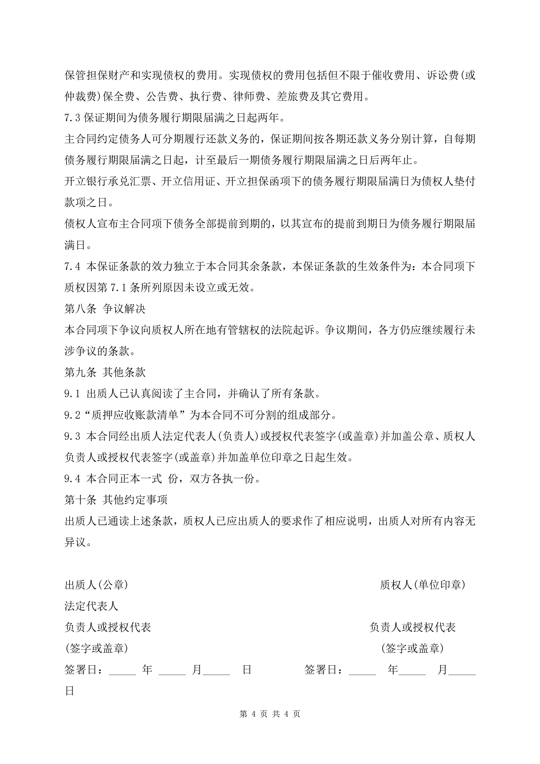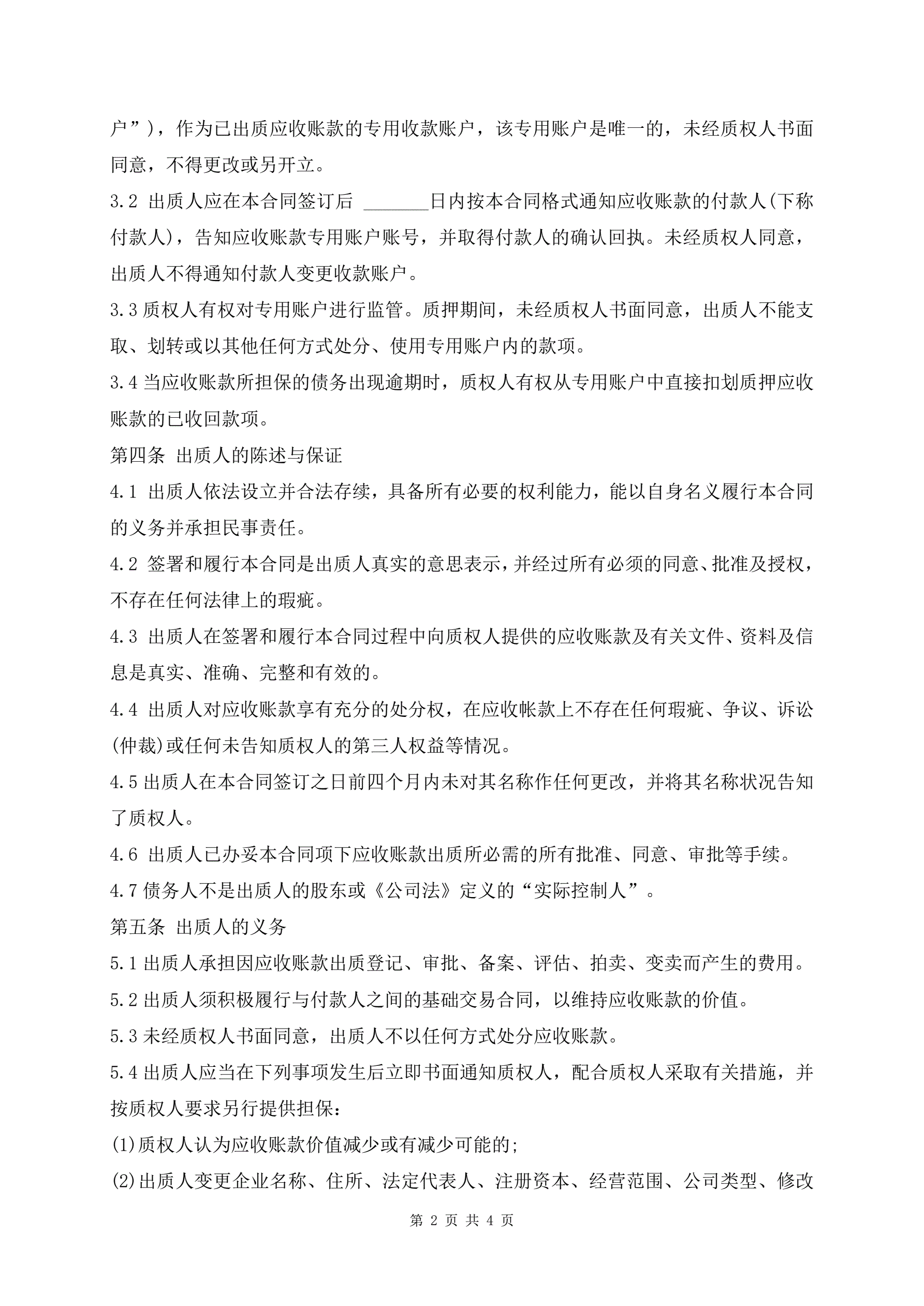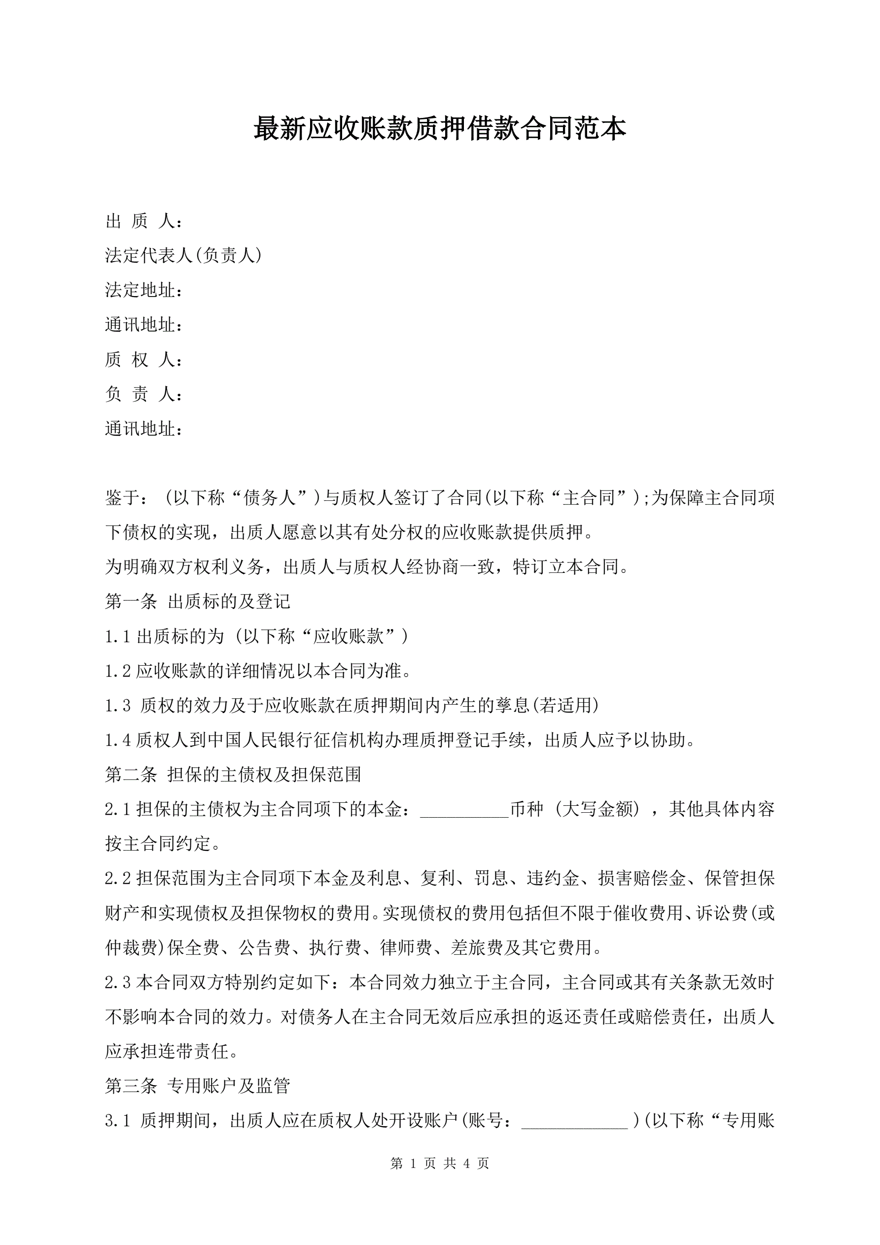 最新应收账款质押借款合同范本