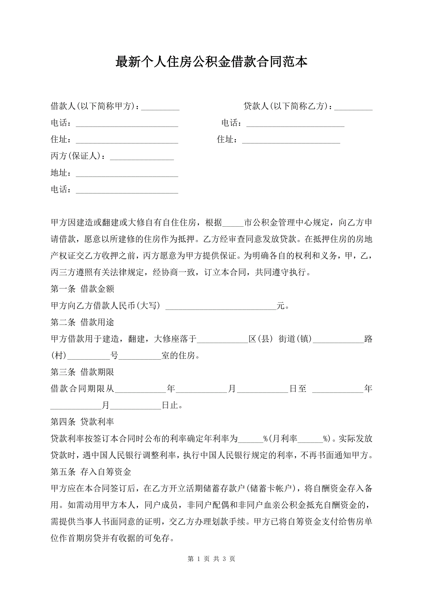 最新个人住房公积金借款合同范本