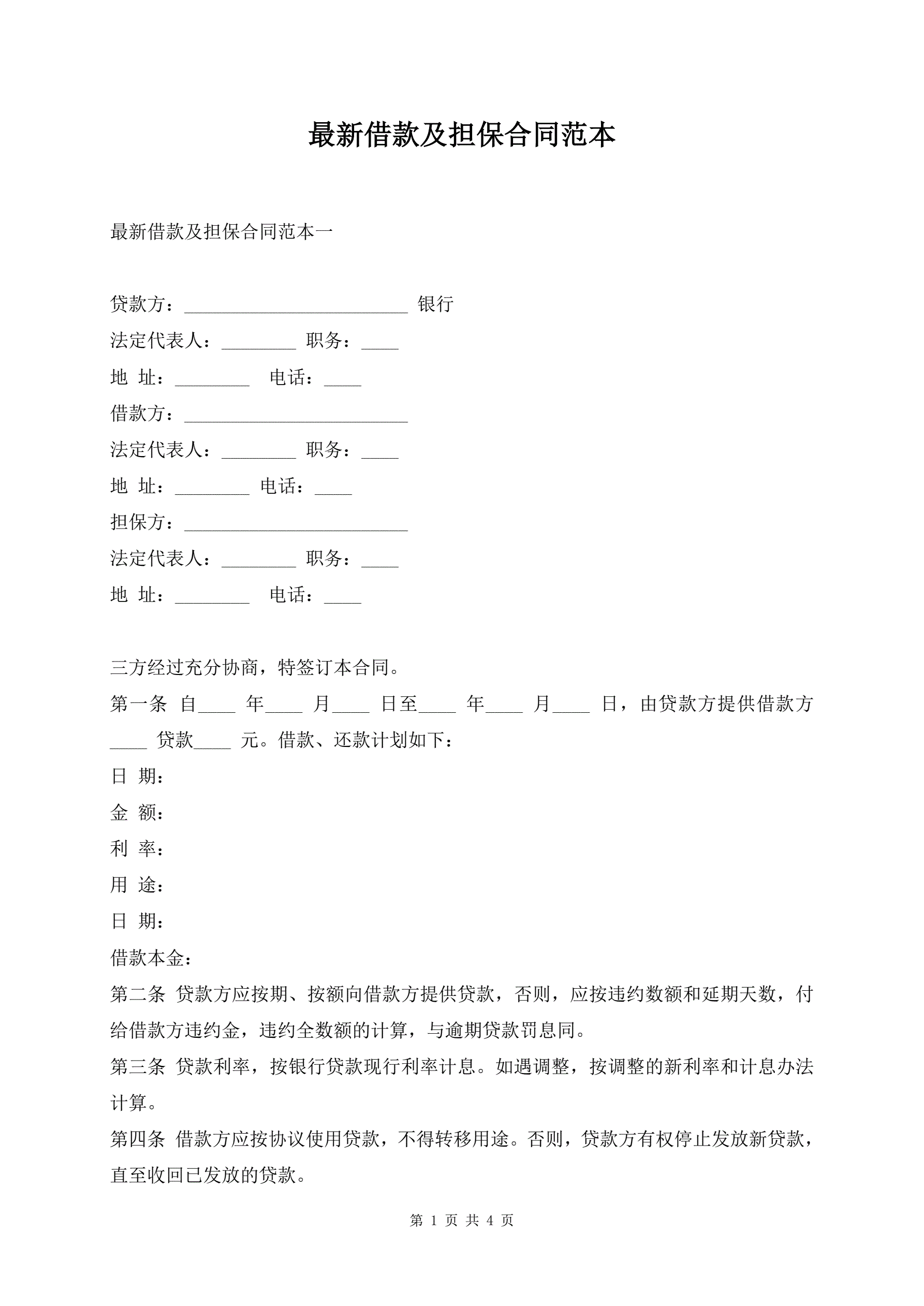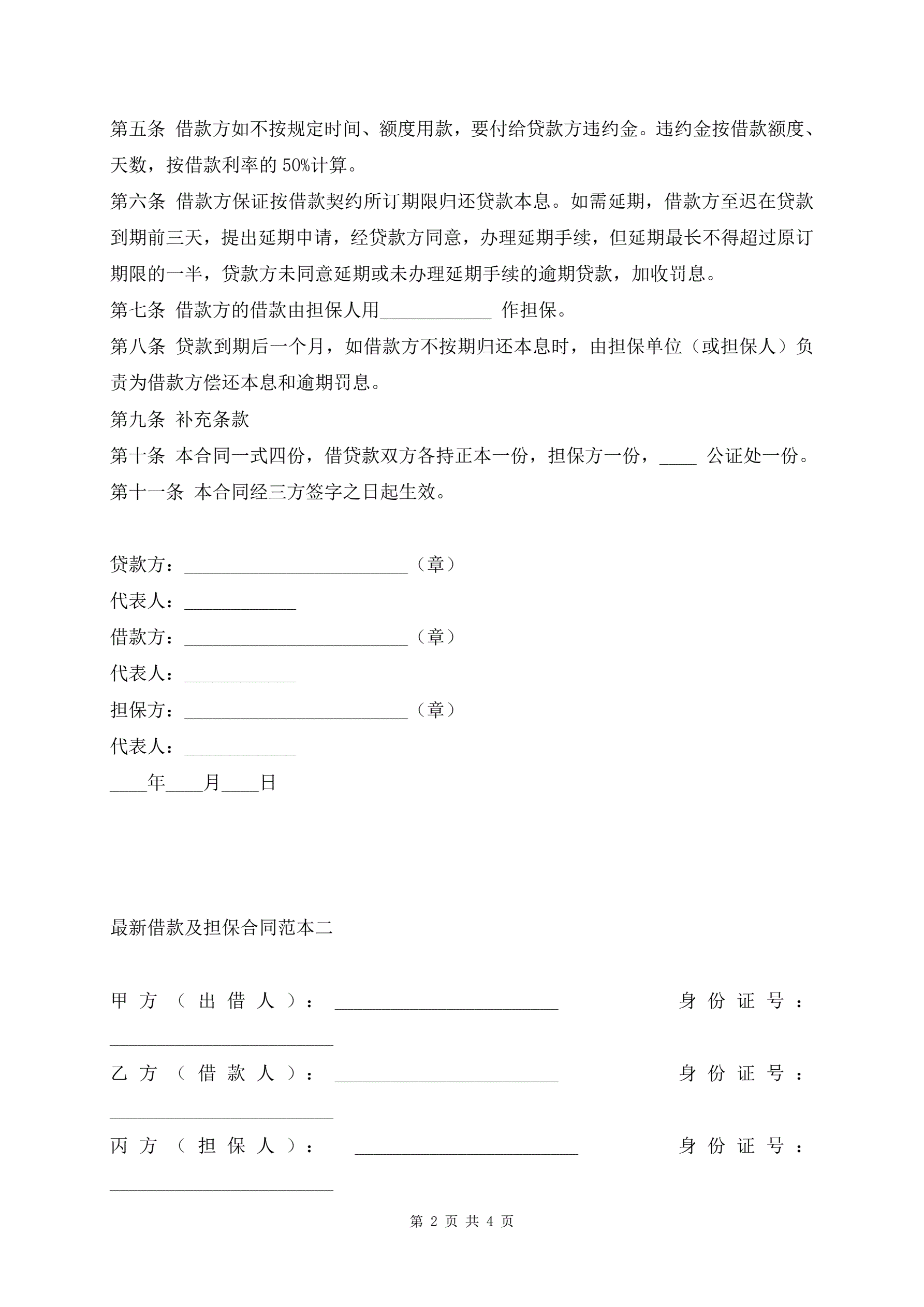 最新借款及担保合同范本