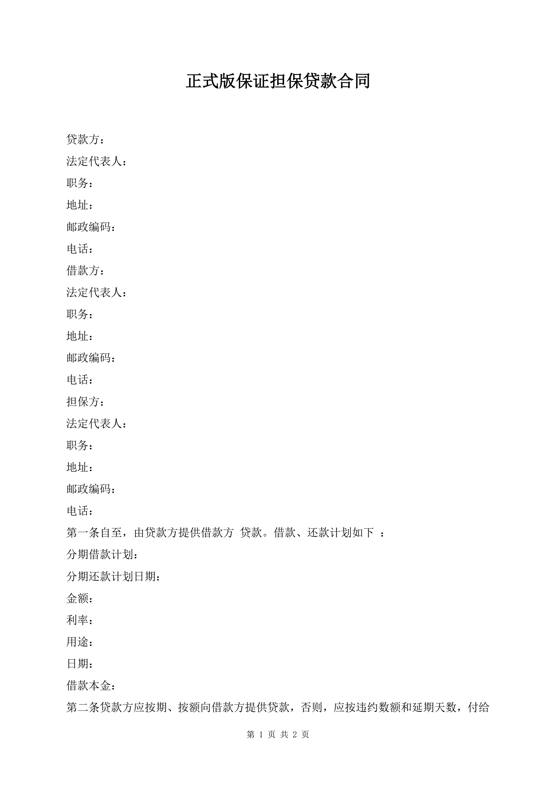 正式版保证担保贷款合同