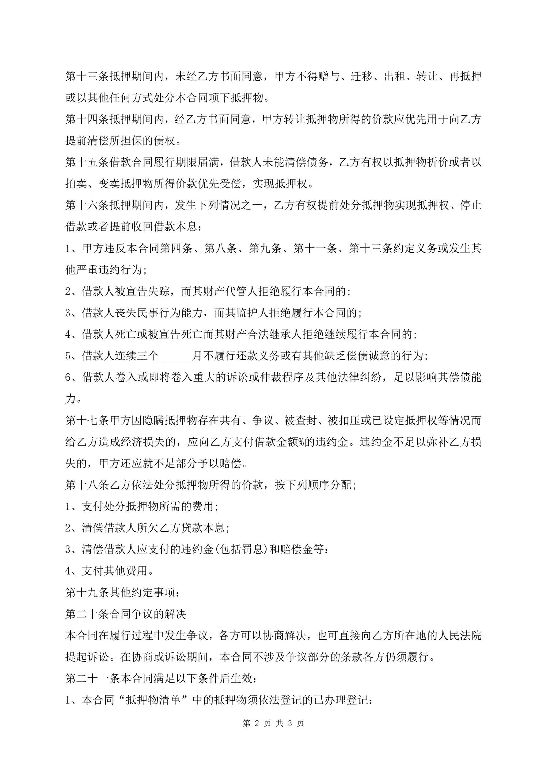 >抵押借款合同范本(下载版)