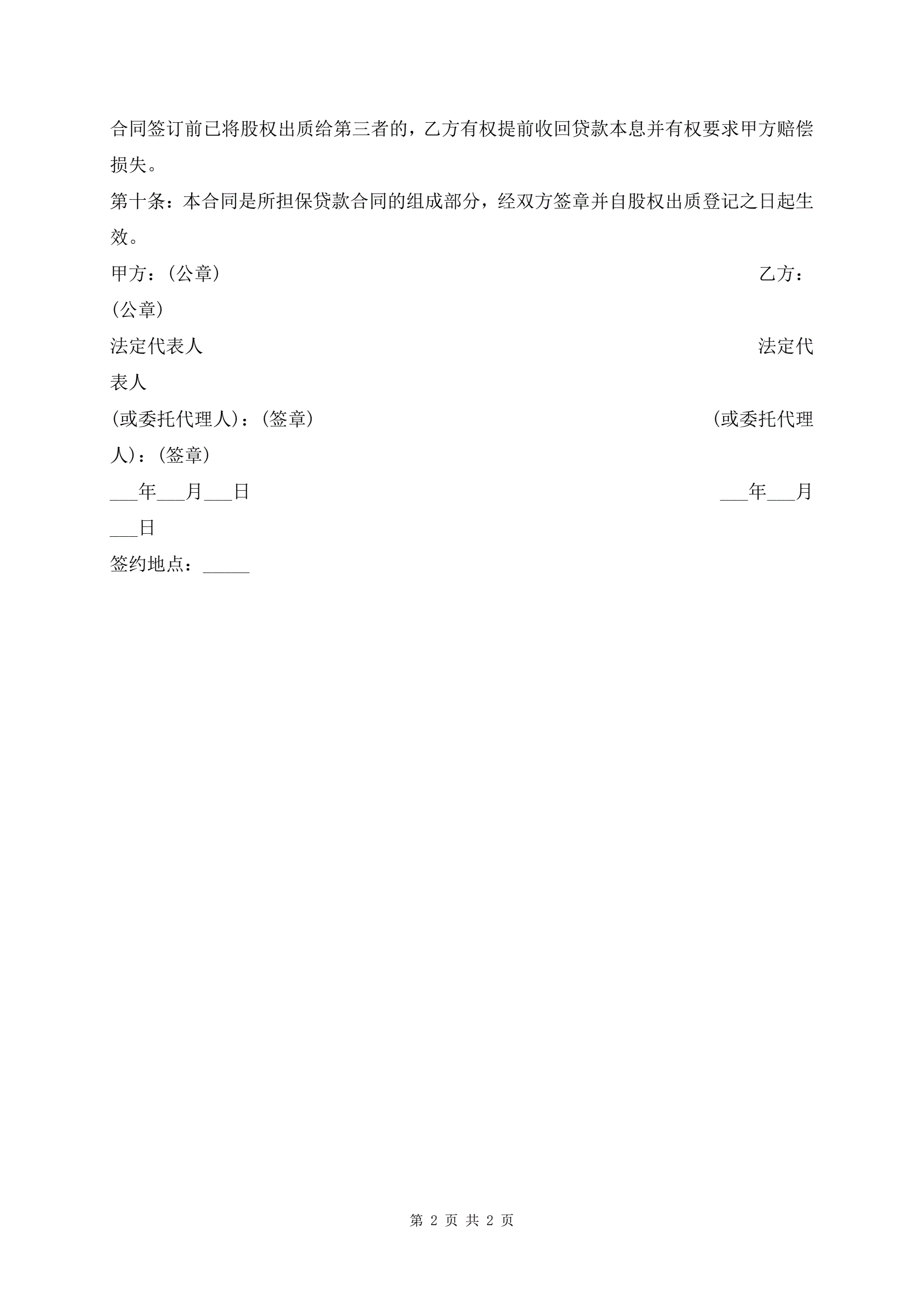 >最新股权质押贷款合同