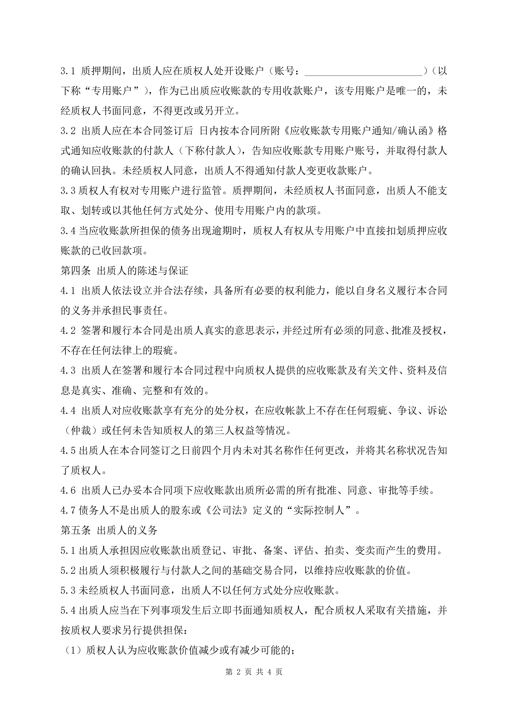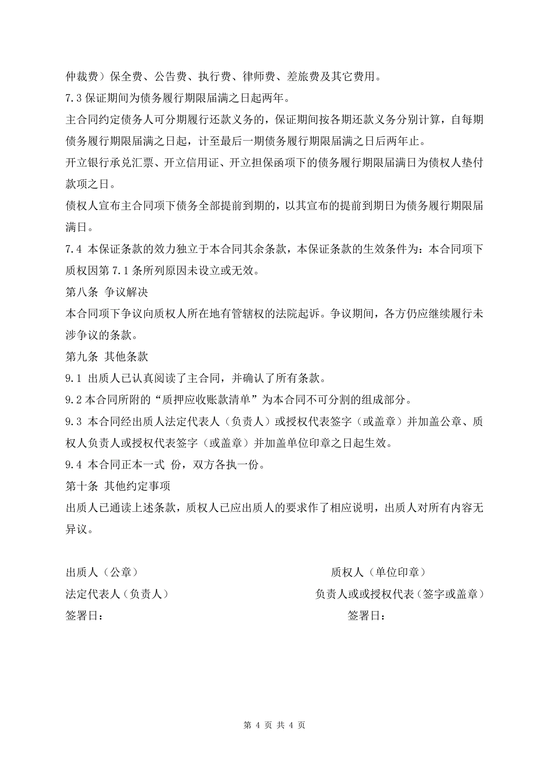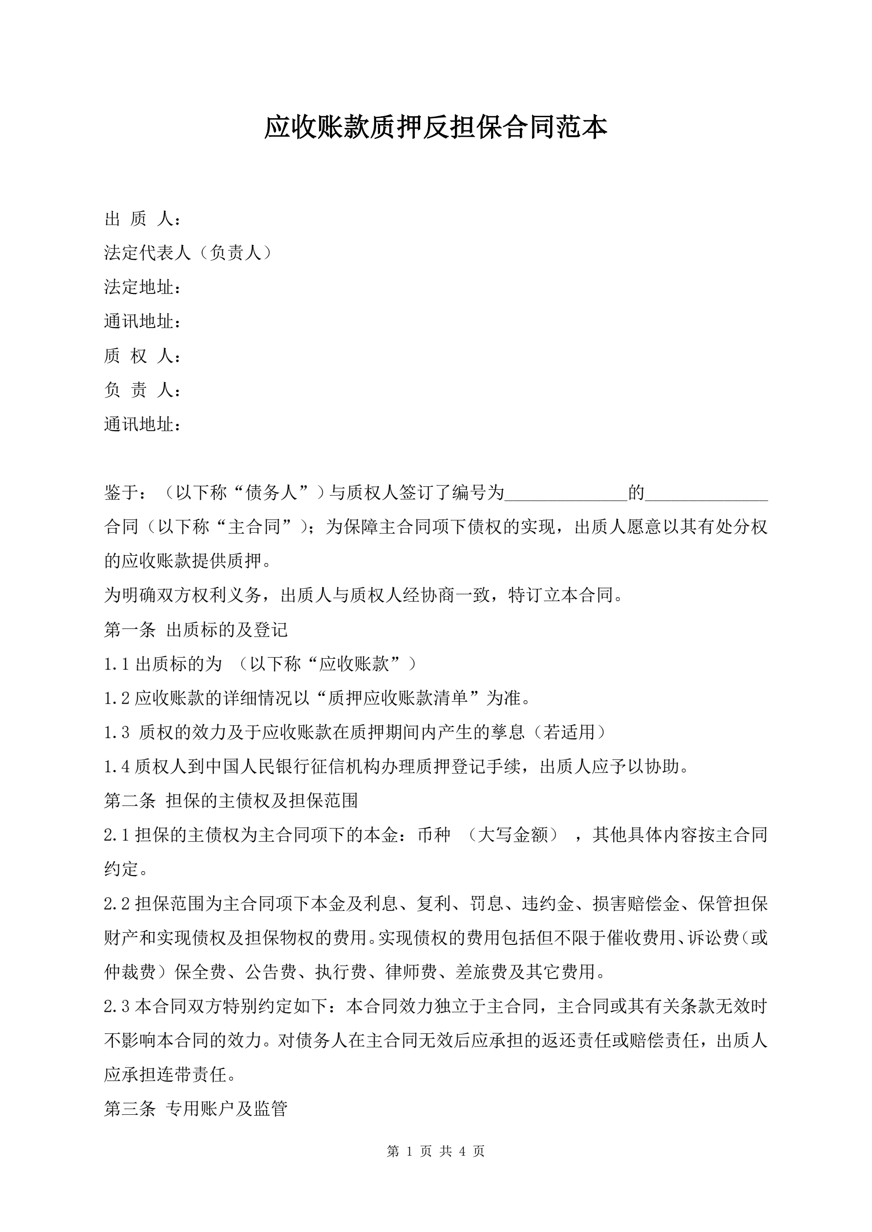 应收账款质押反担保合同范本