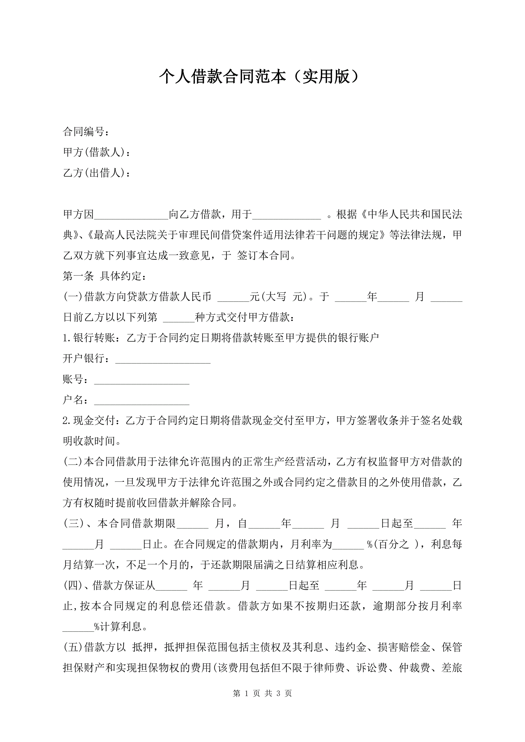 个人借款合同范本(实用版)