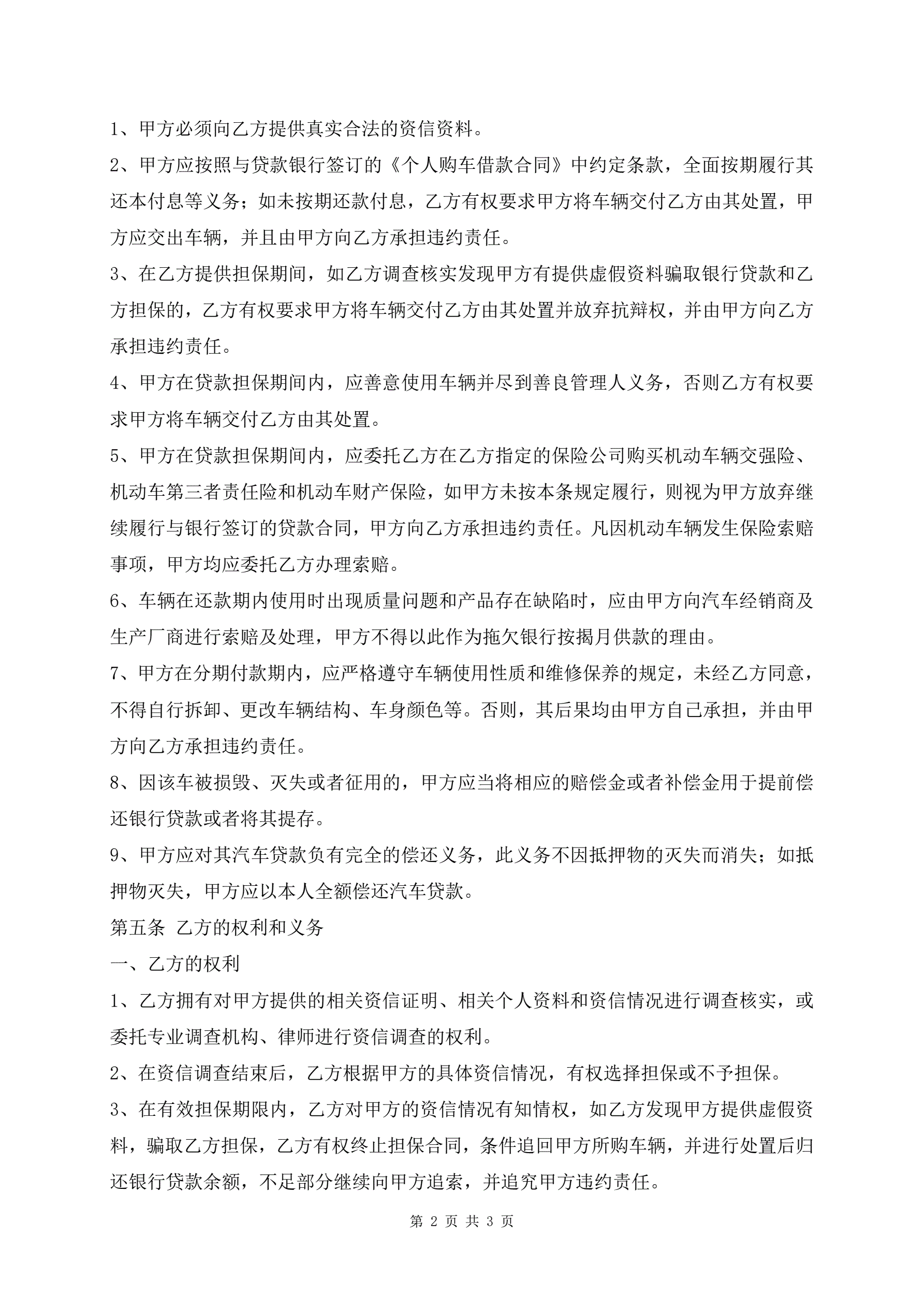 官方的个人汽车贷款担保合同范本