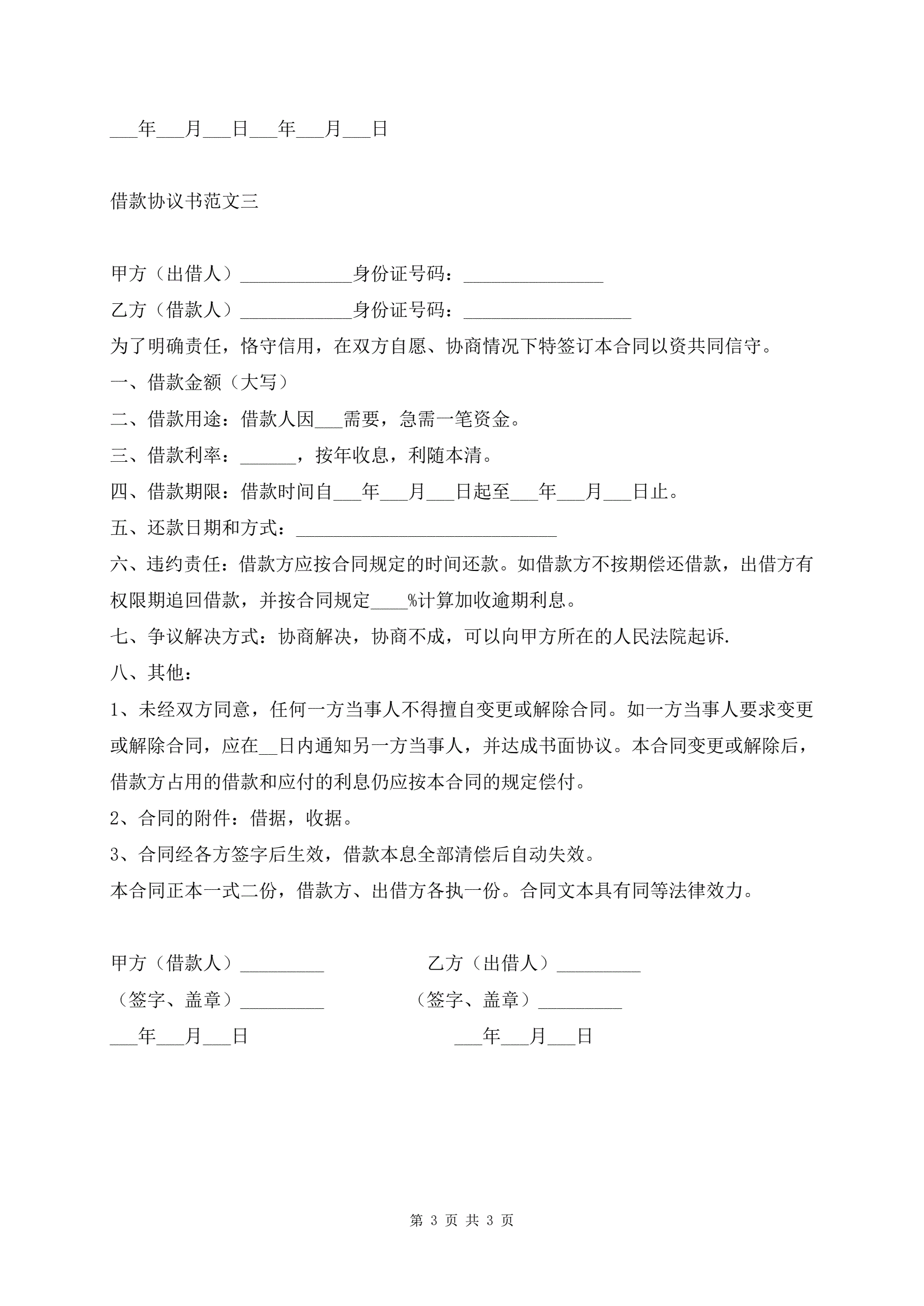 >借款协议书范文