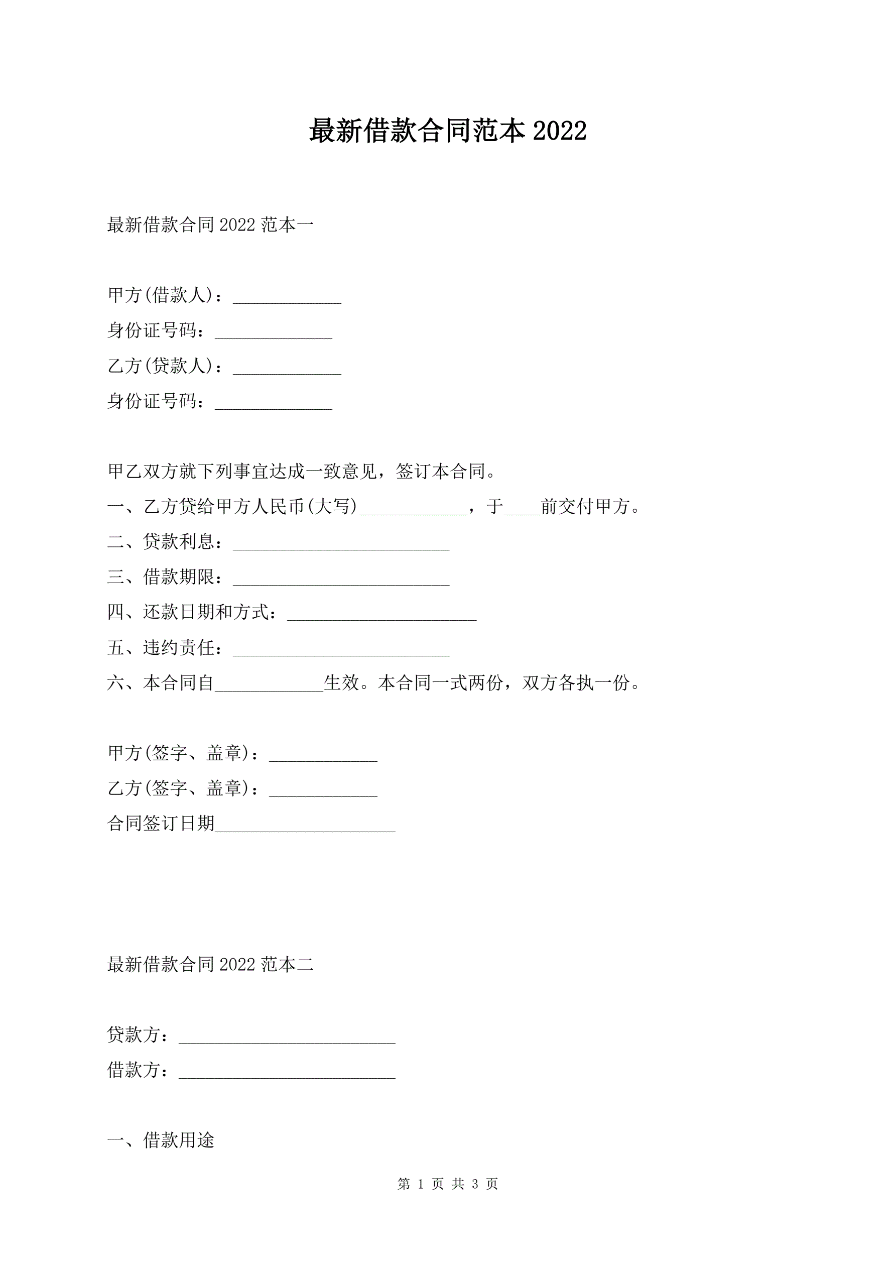 最新借款合同范本2022