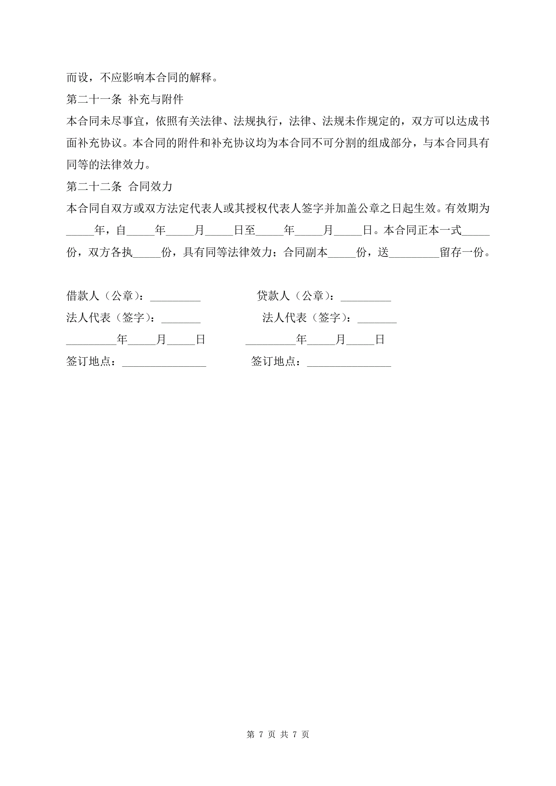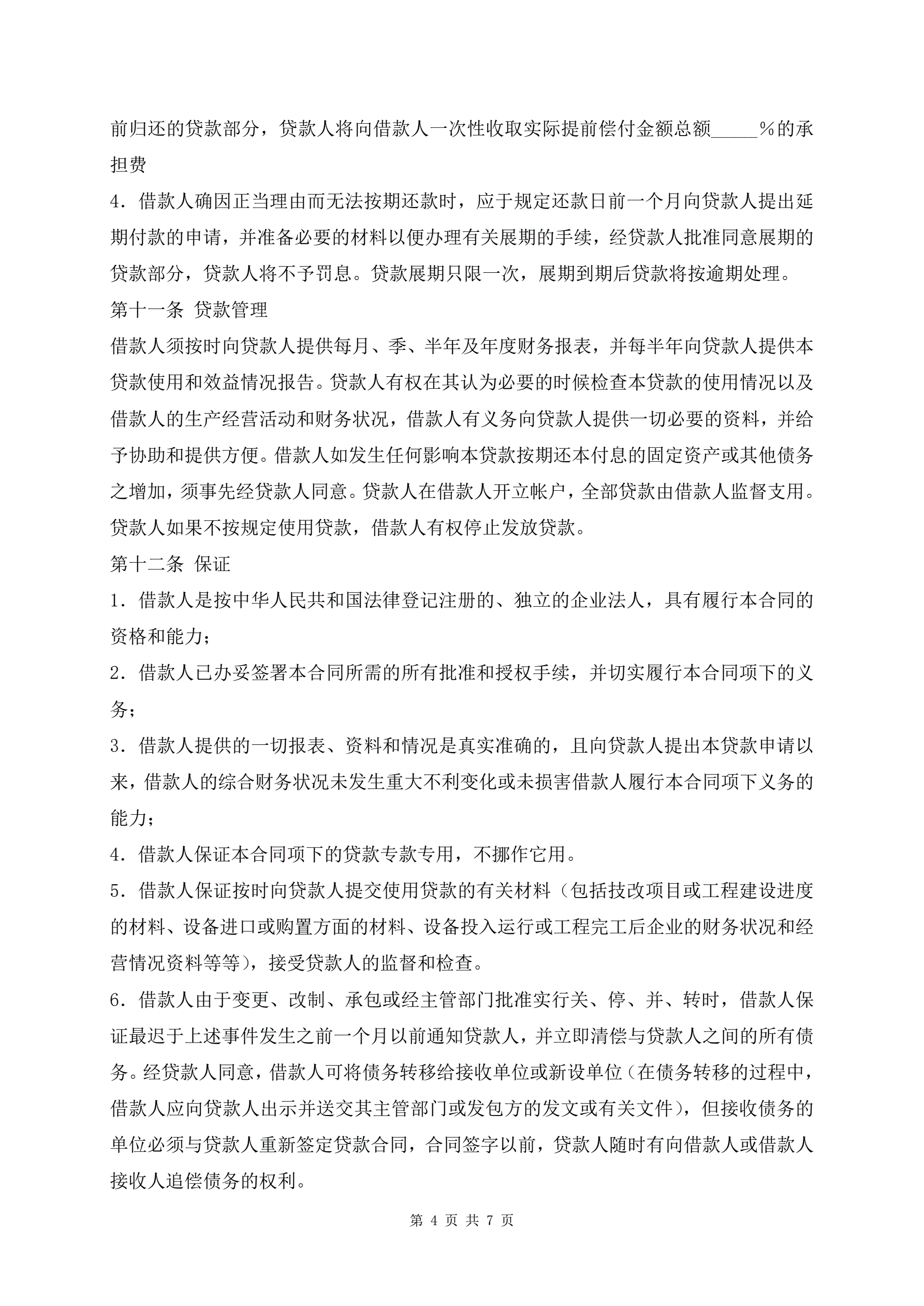 工业贷款合同样书标准专业版