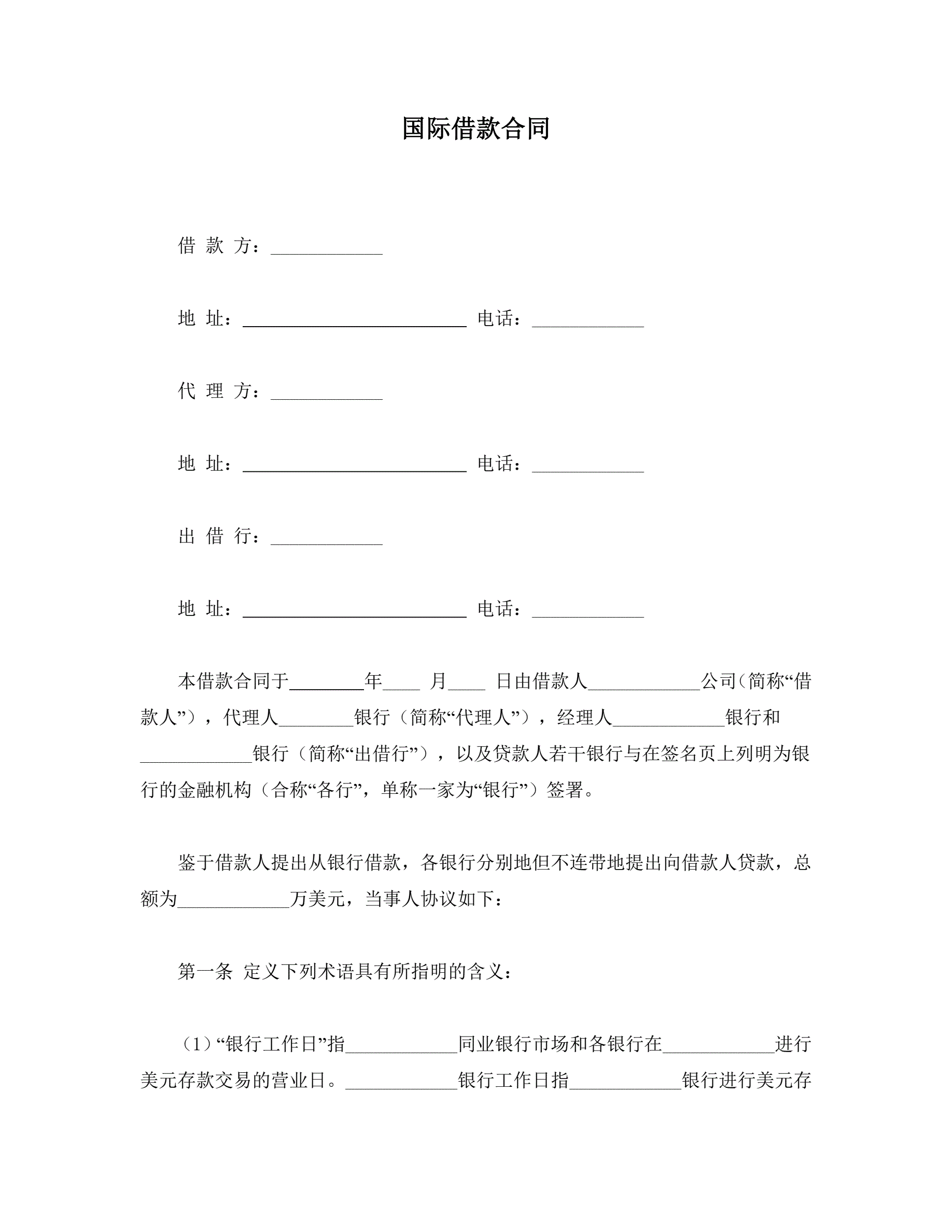 合同名称:国际借款合同