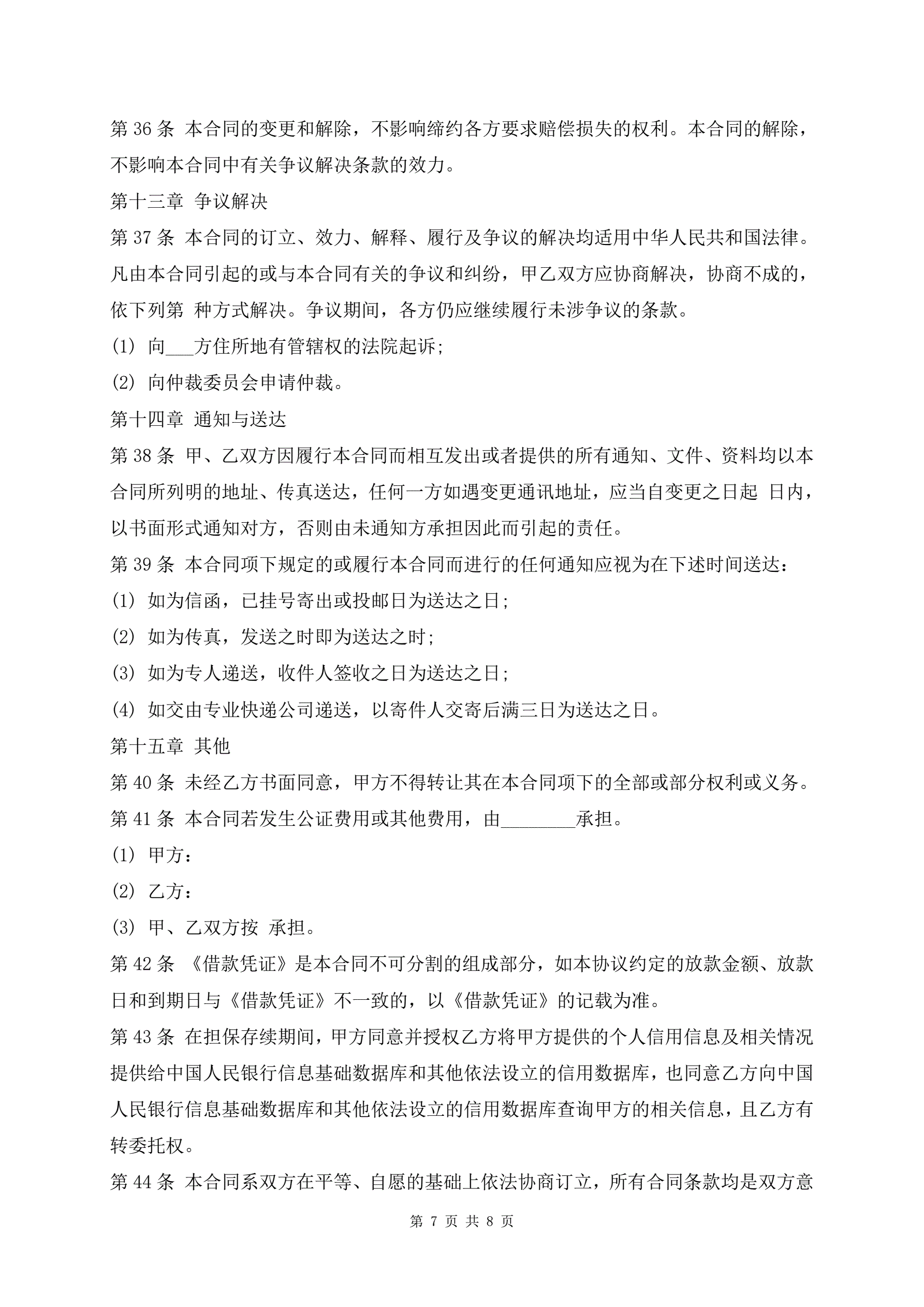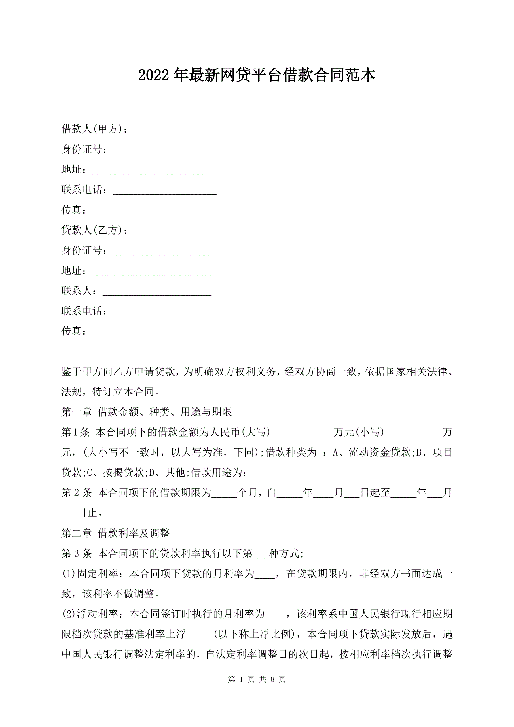 >2022年最新网贷平台借款合同范本