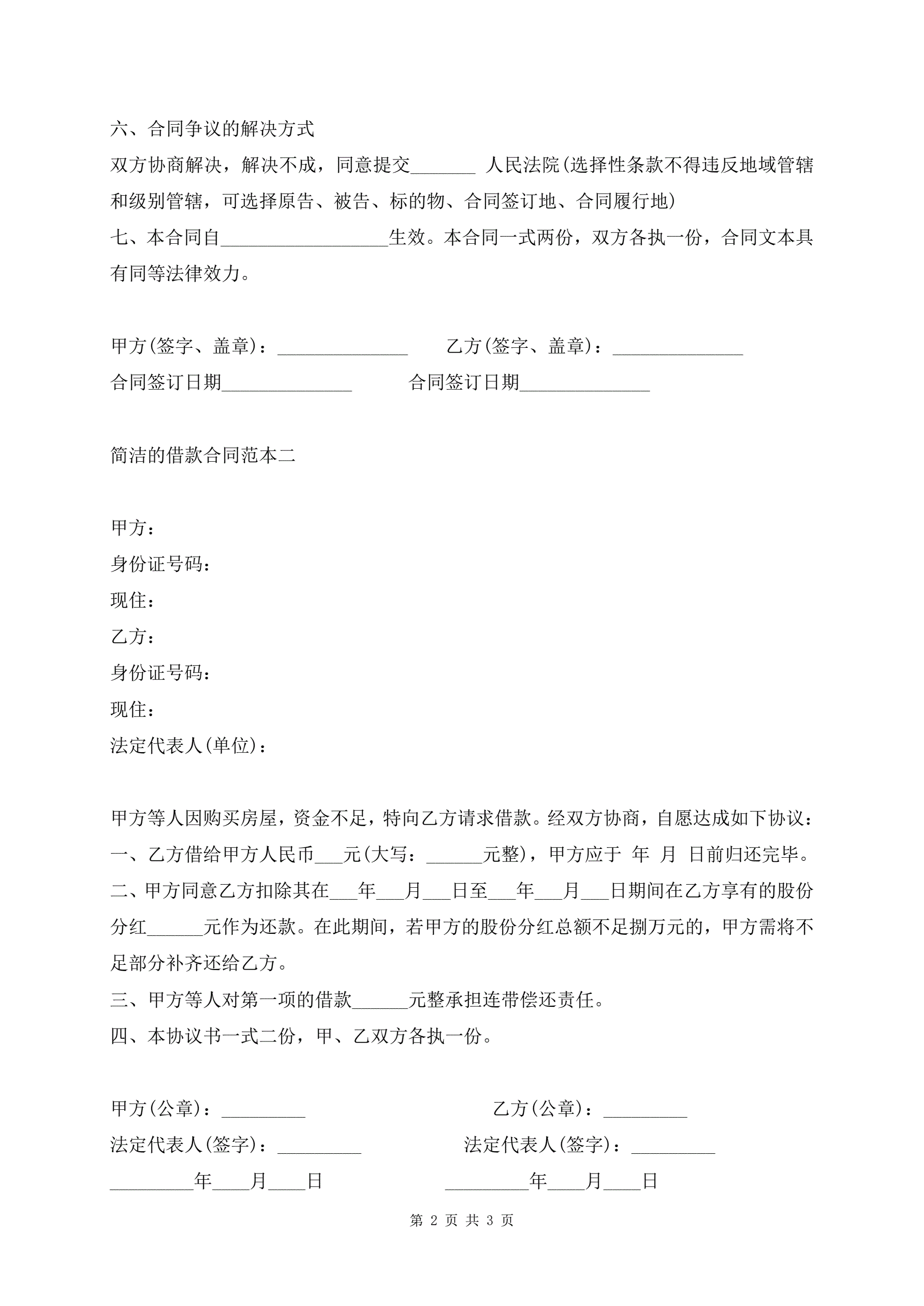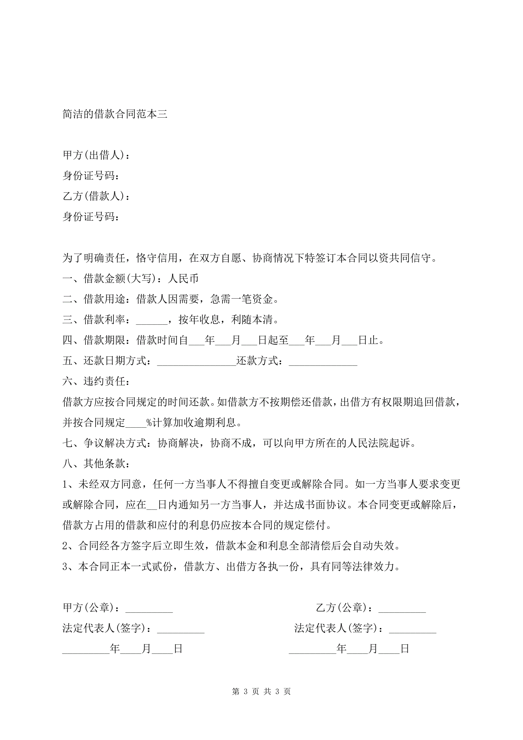 简洁的借款合同范本