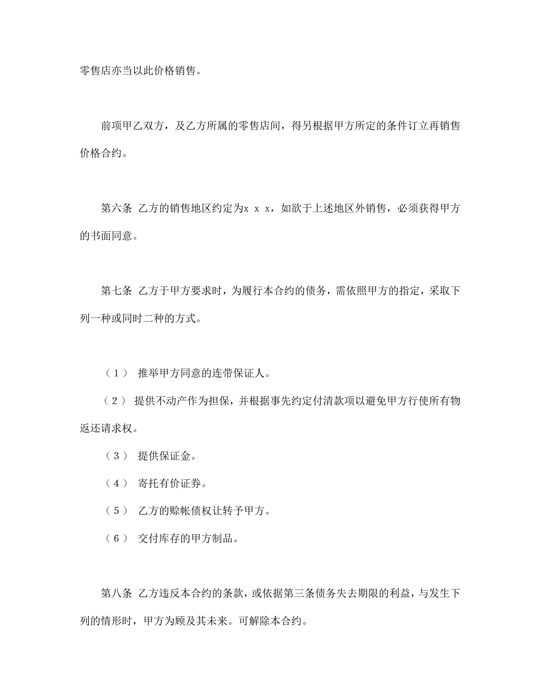 连续性商品交易契约书