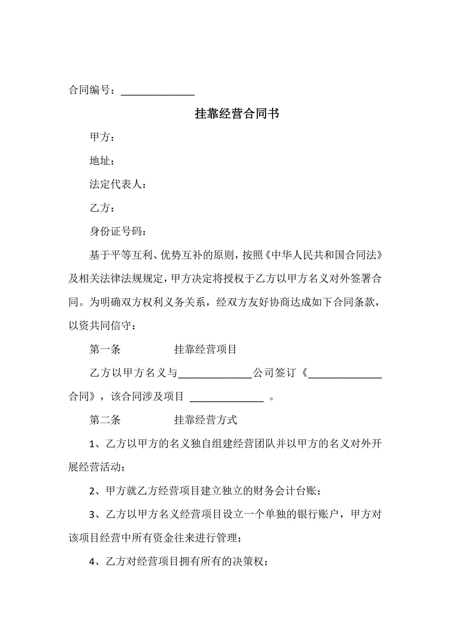 >挂靠经营合同书