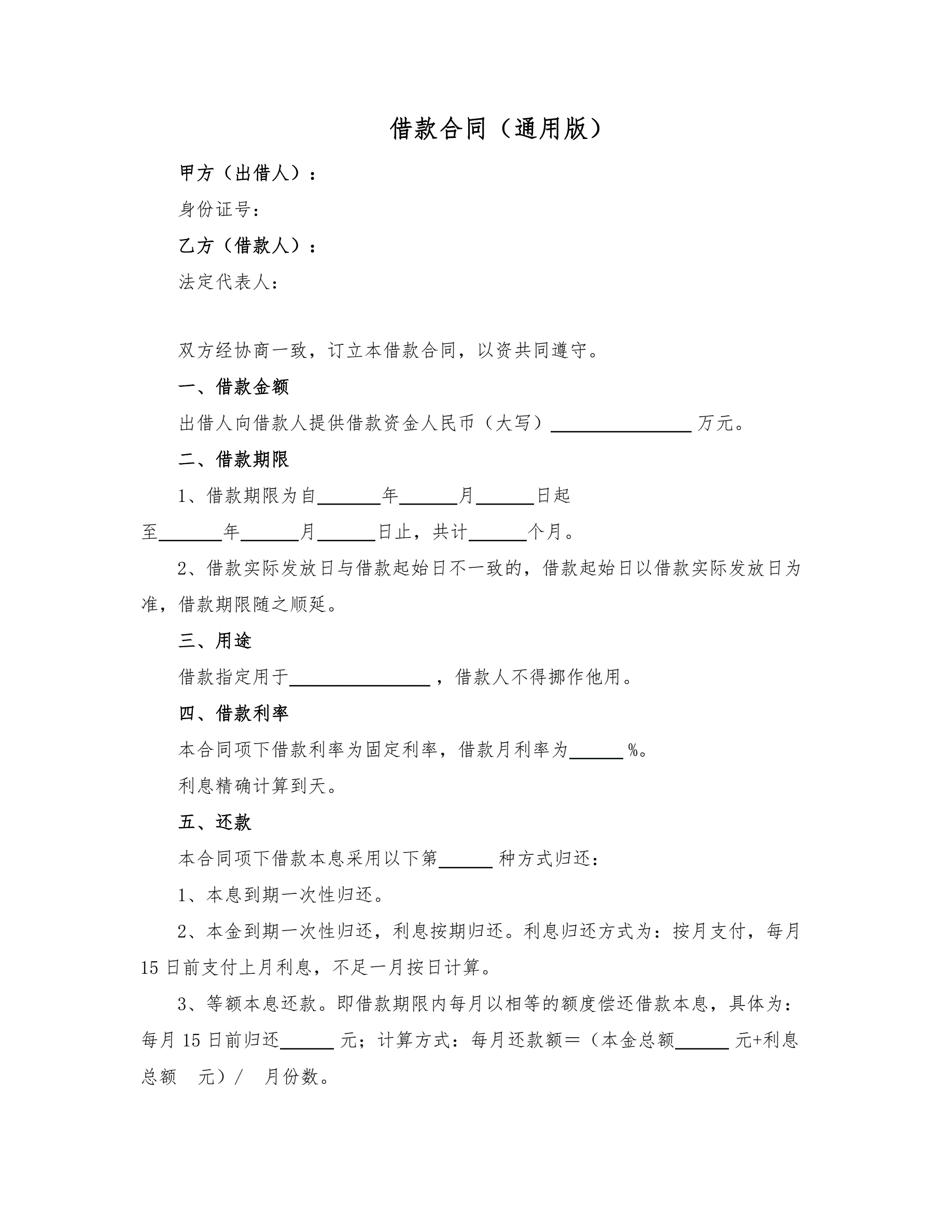 借款合同(通用版)