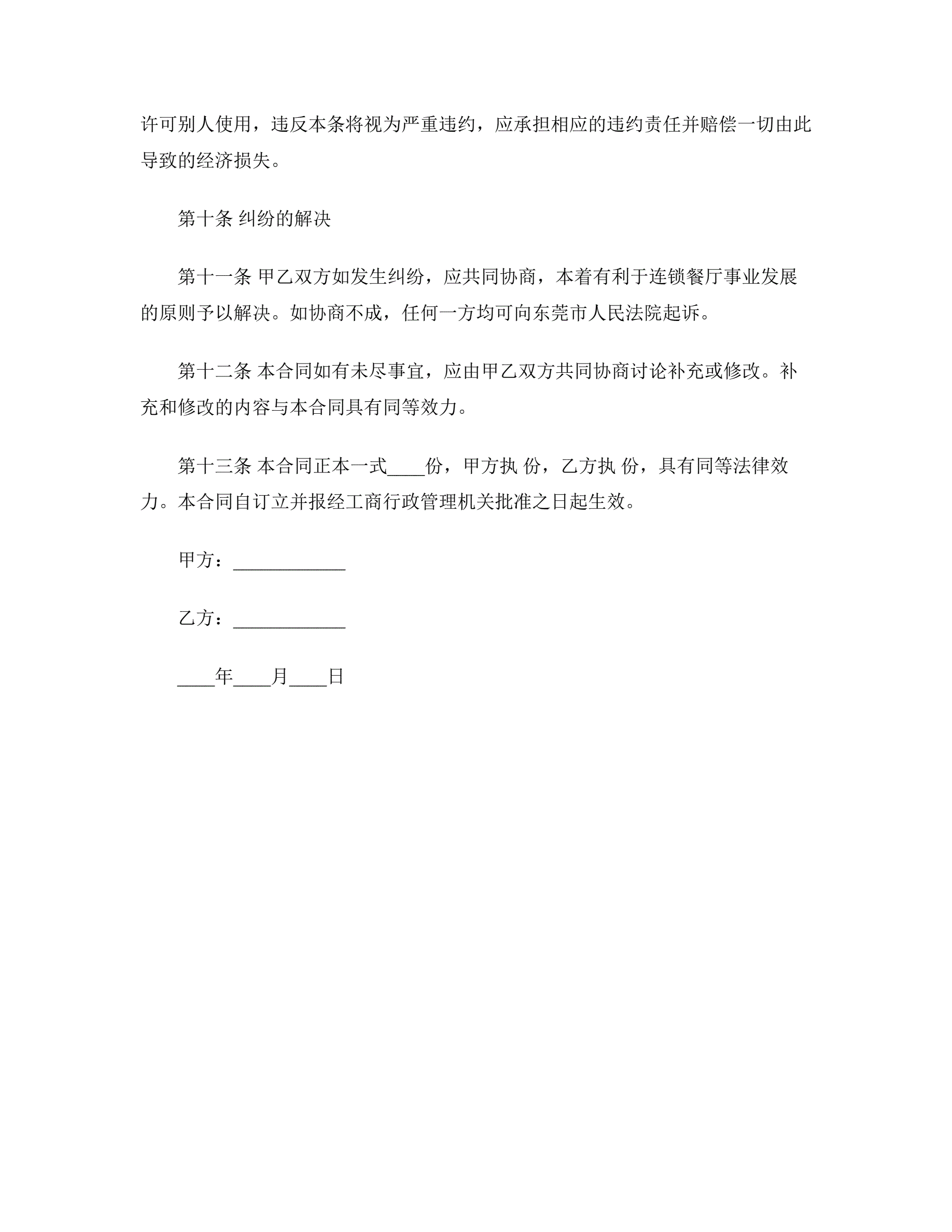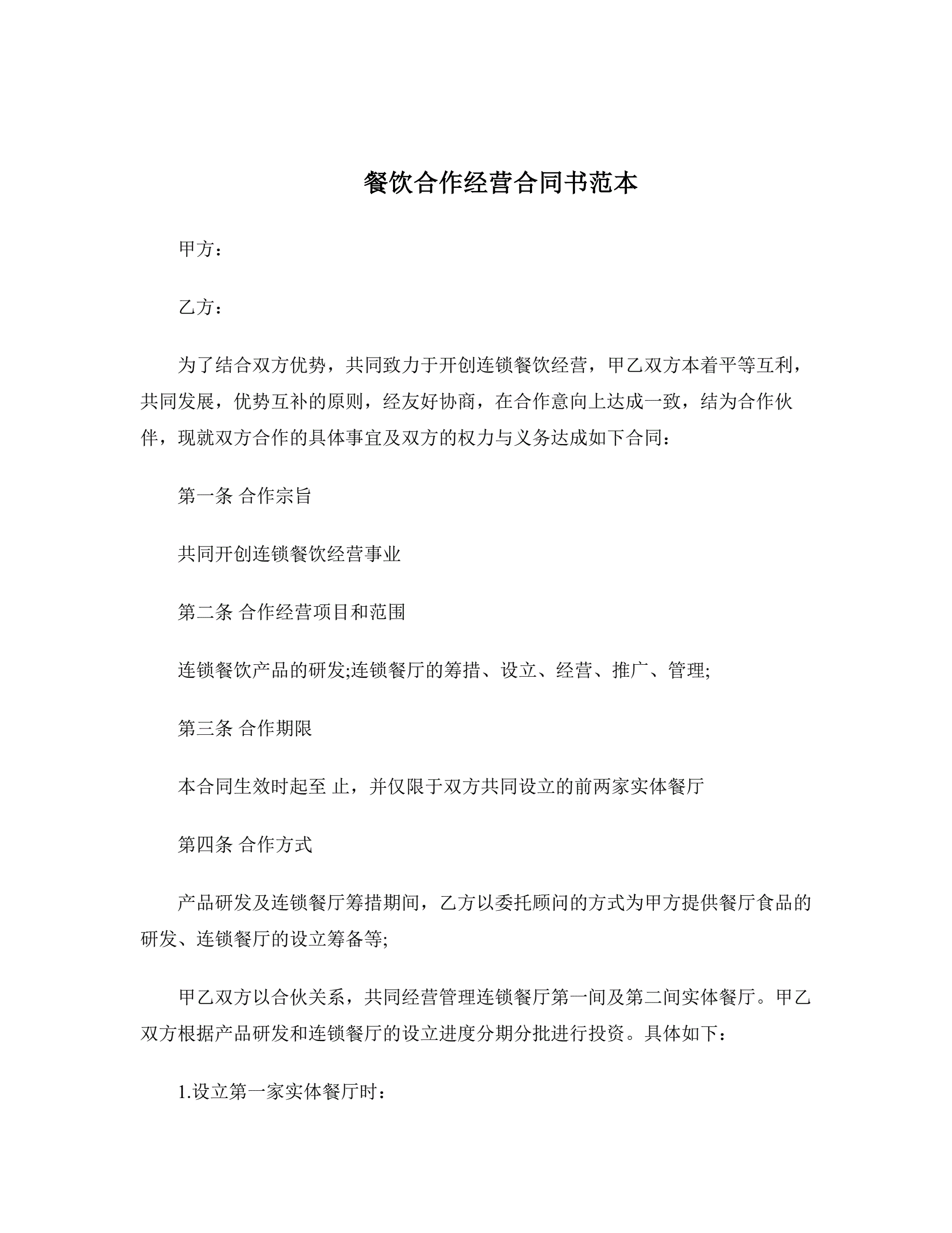 >餐饮合作经营合同书范本