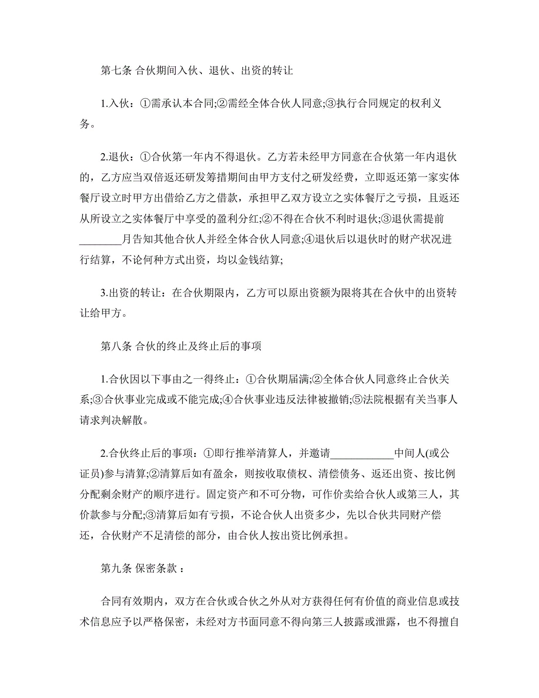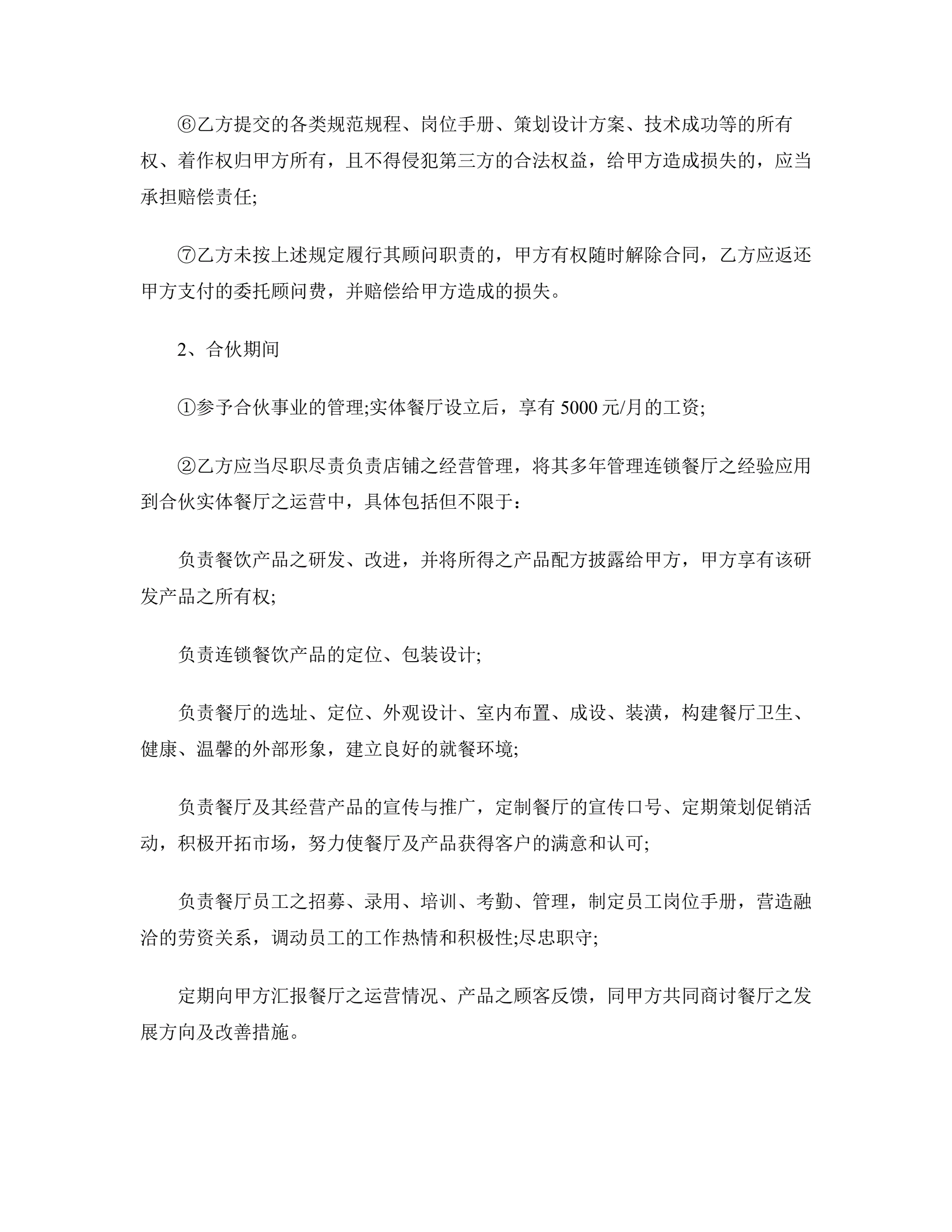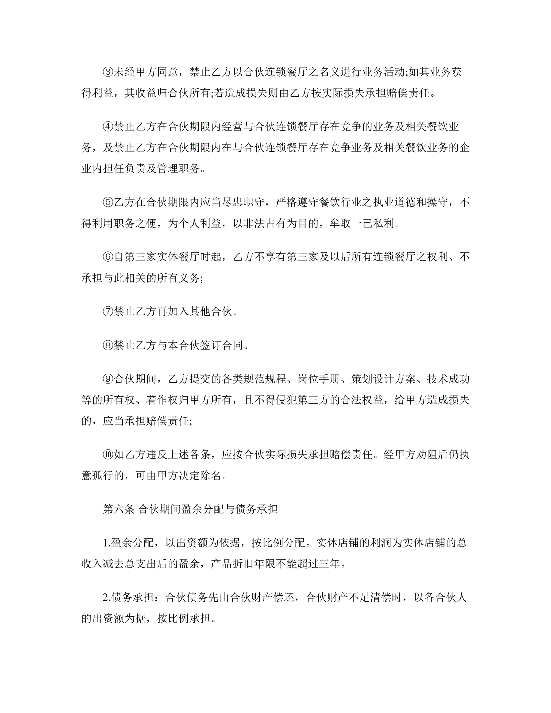 餐饮合作经营合同书范本