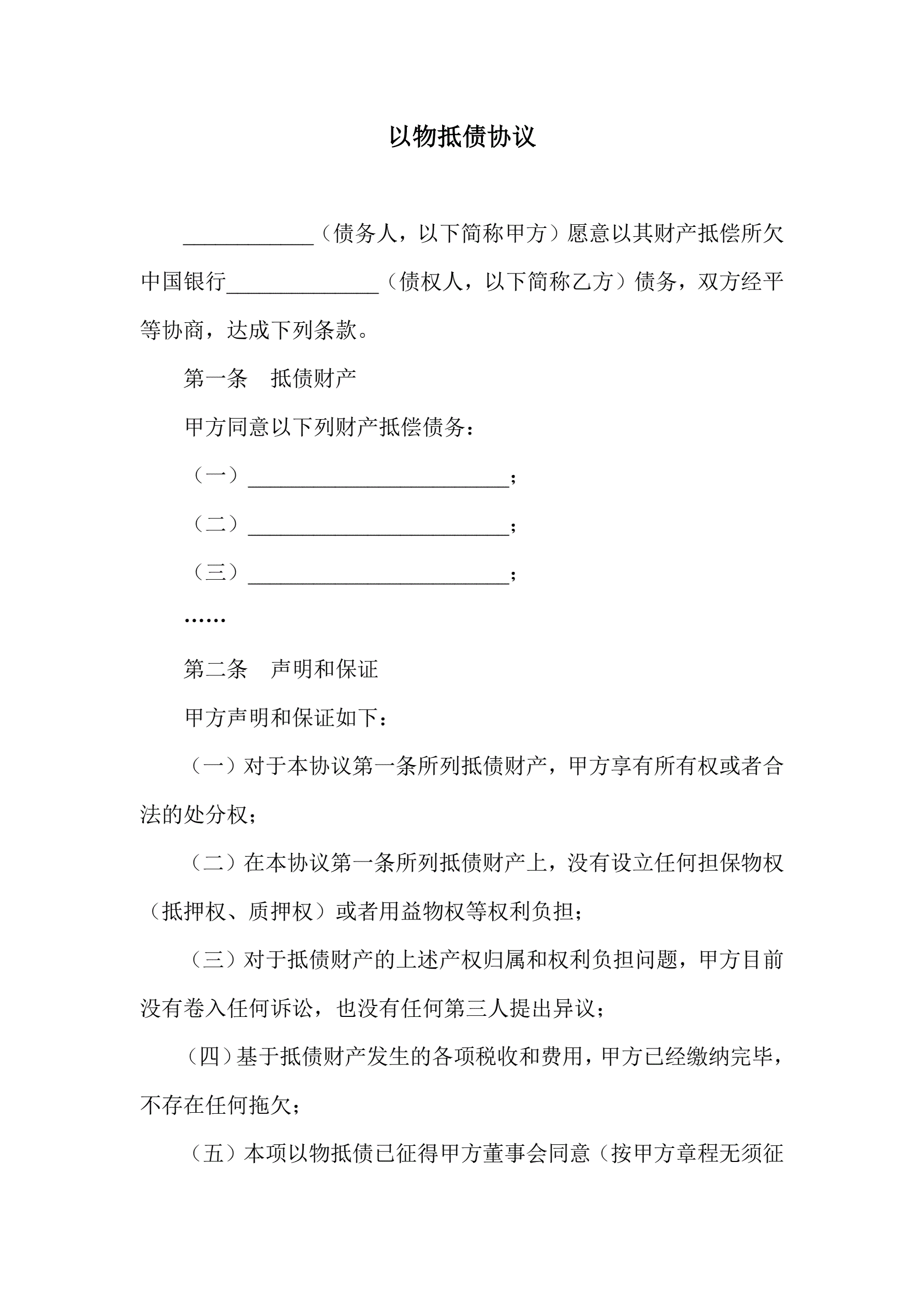 >以物抵债协议