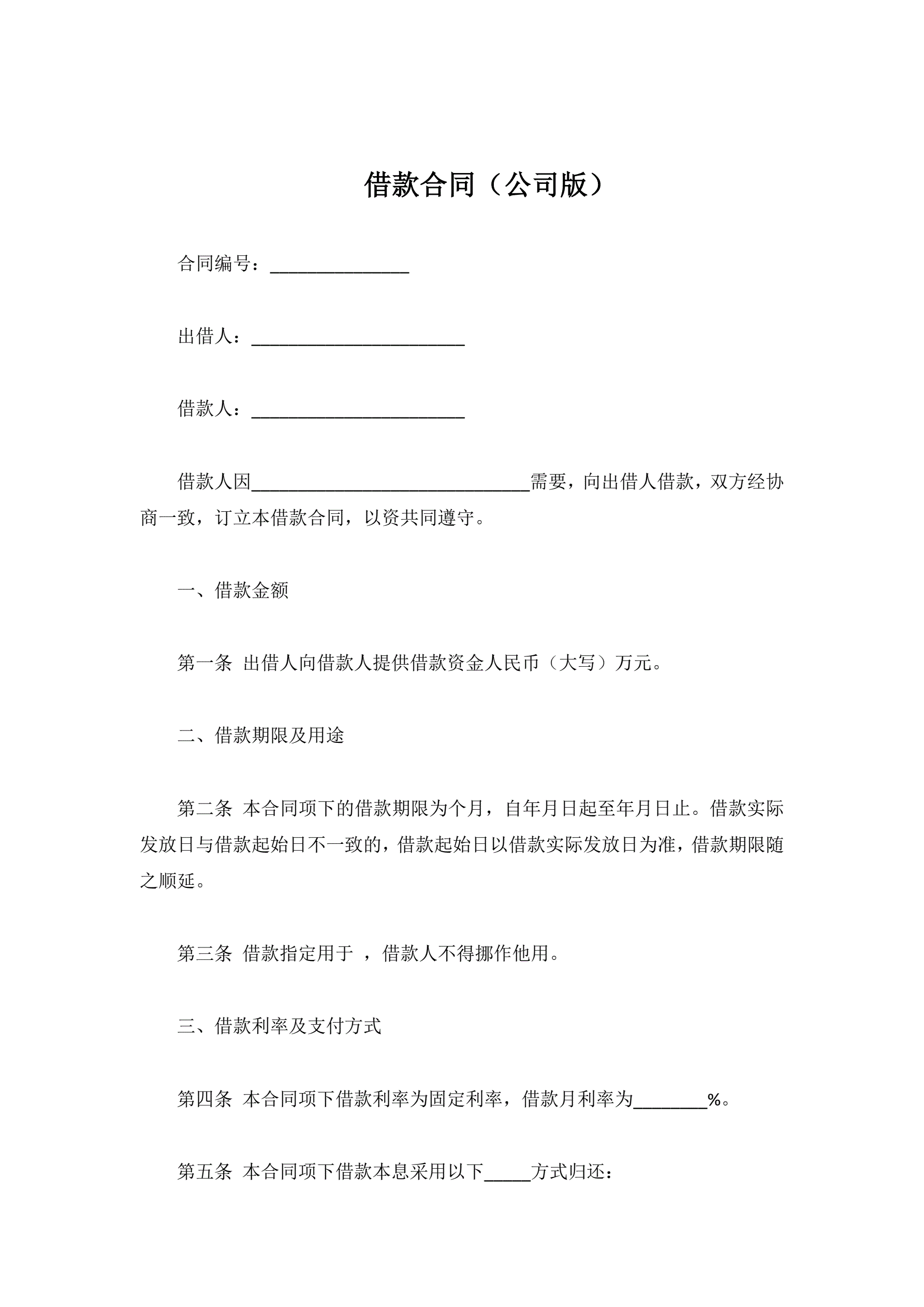 >借款合同(公司版)