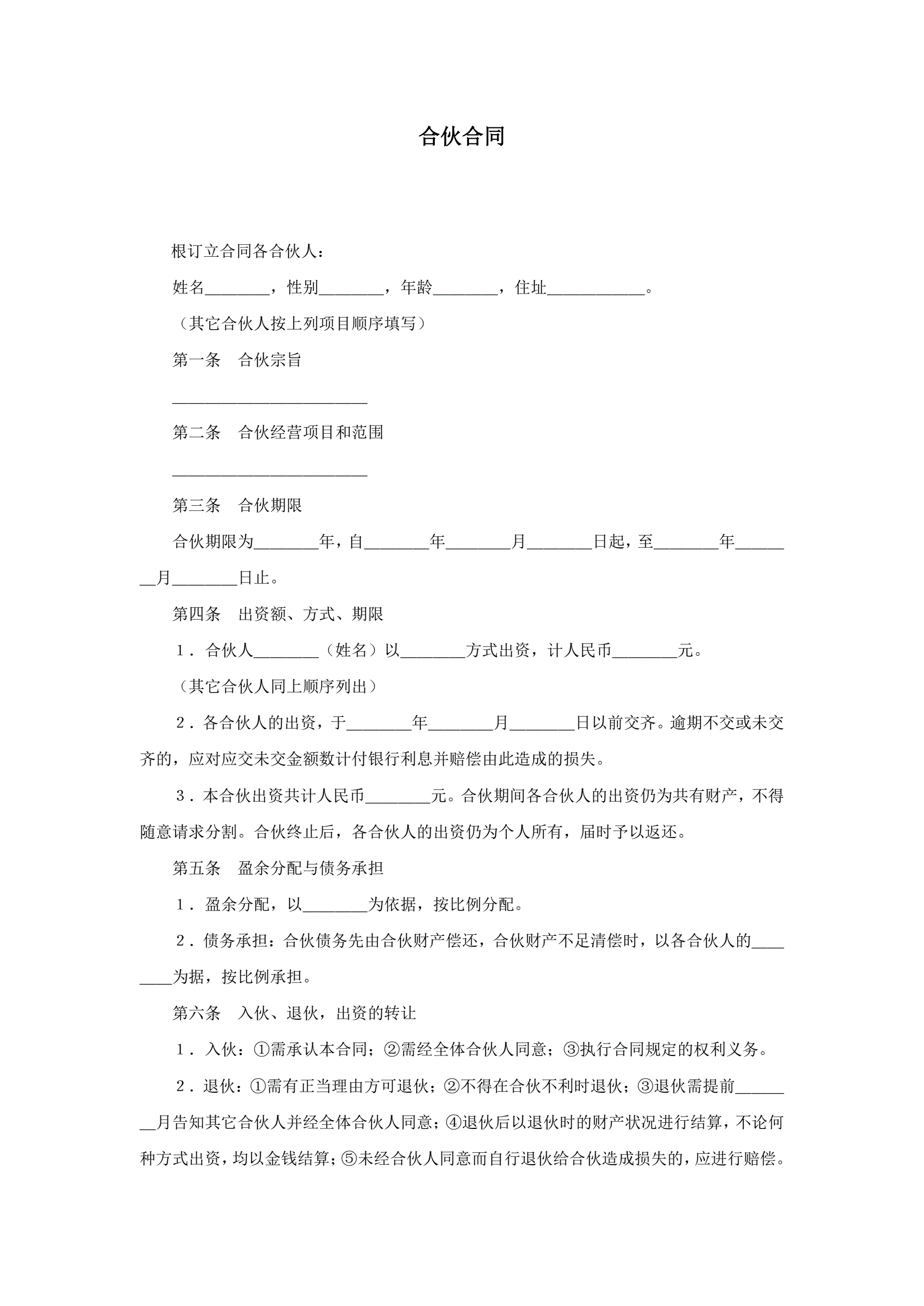 合伙合同