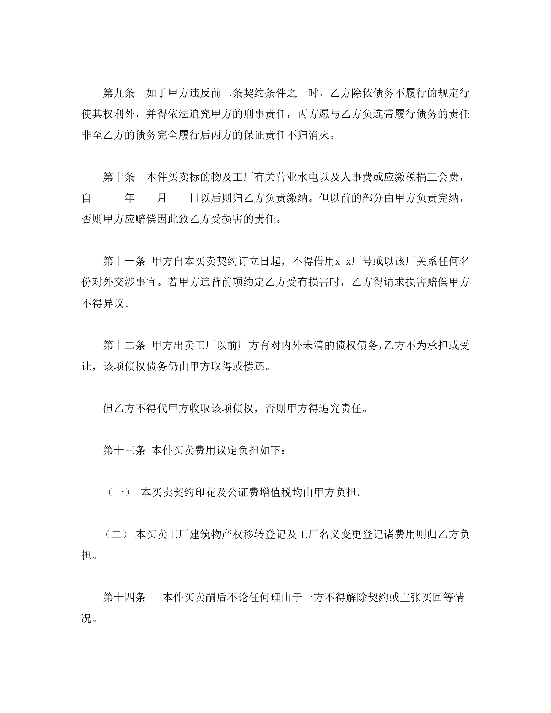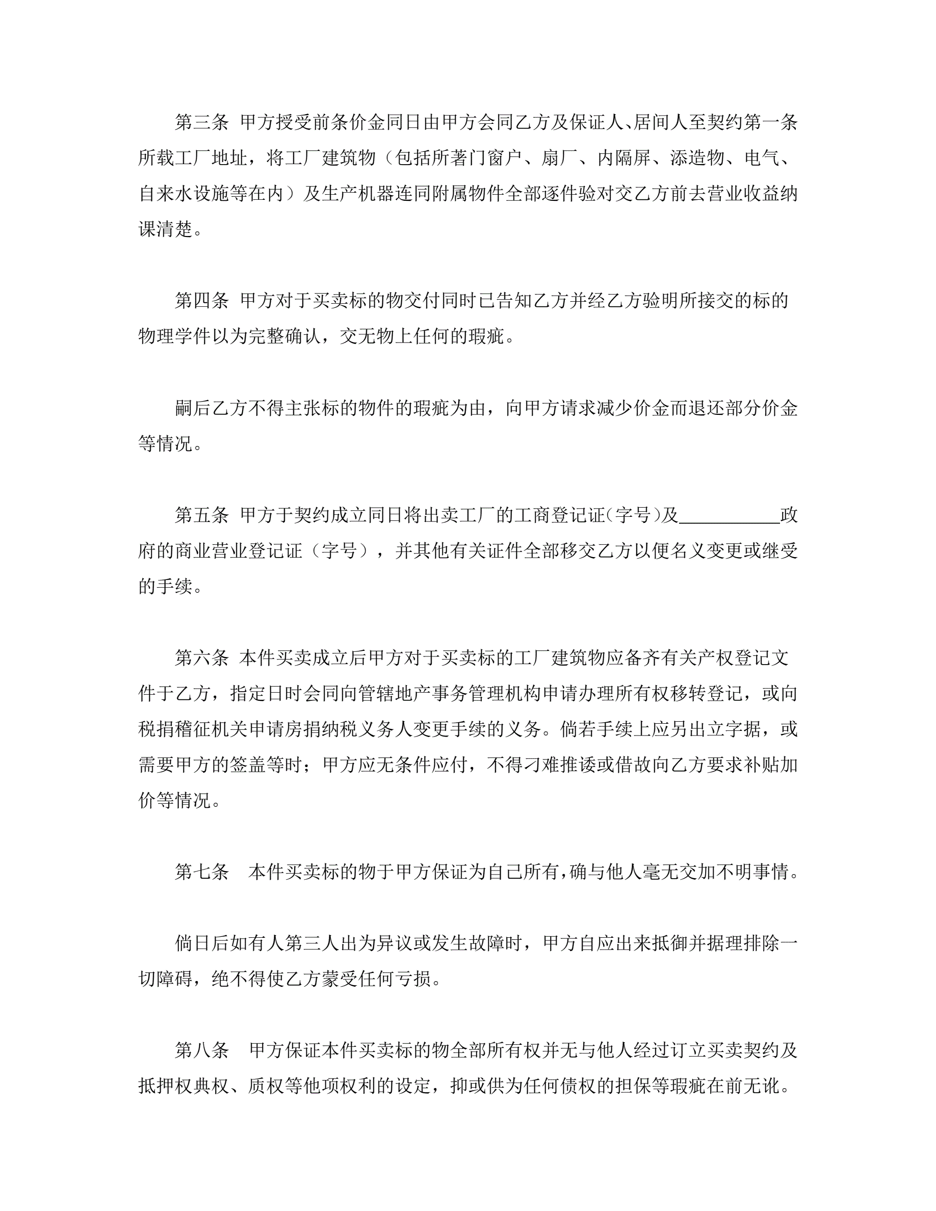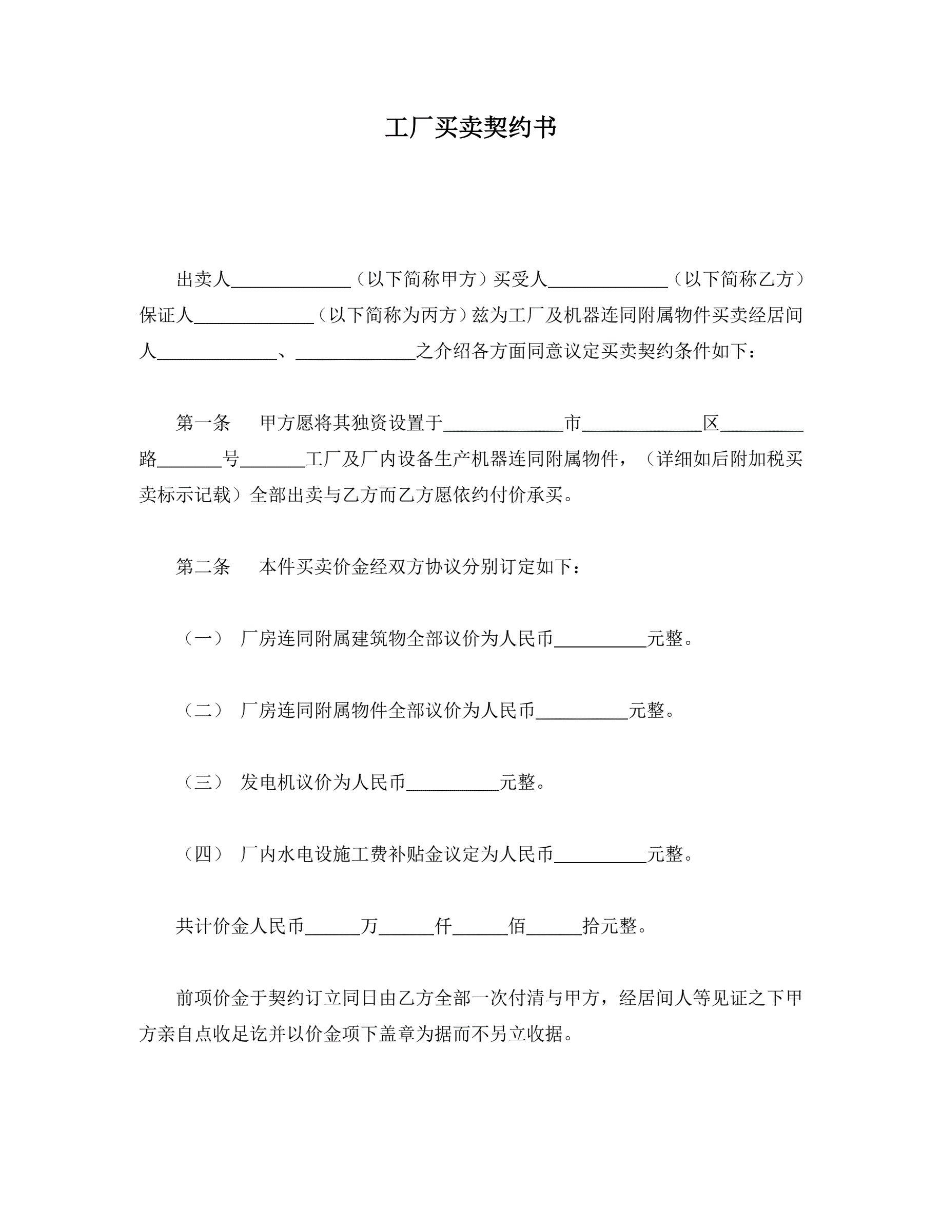 工厂买卖契约书