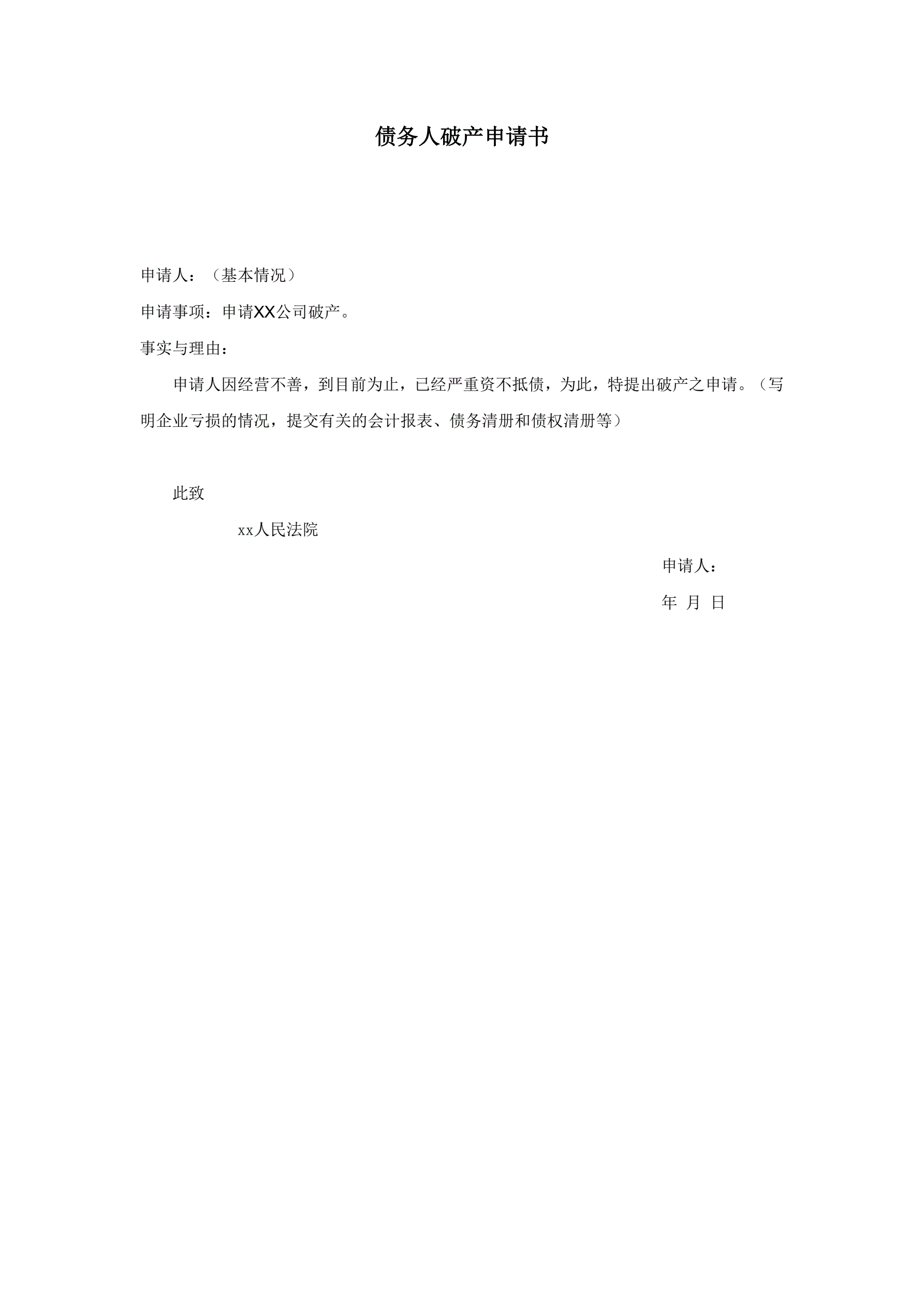 债务人破产申请书