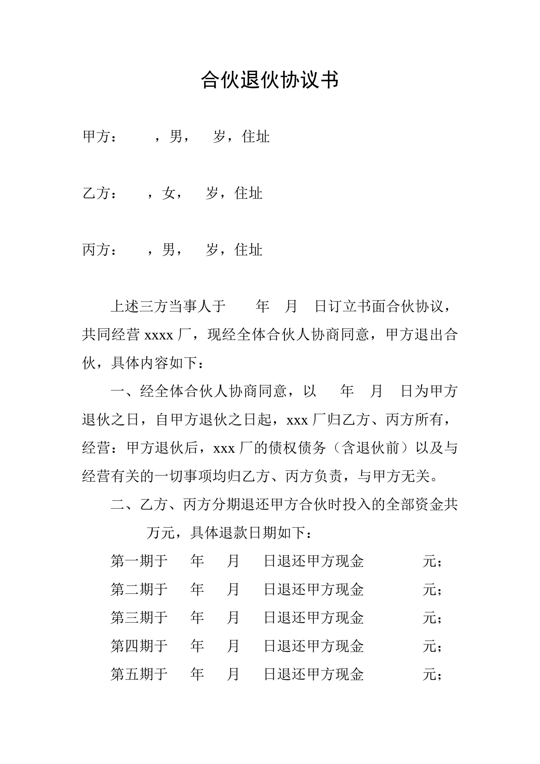 >合伙退伙协议书