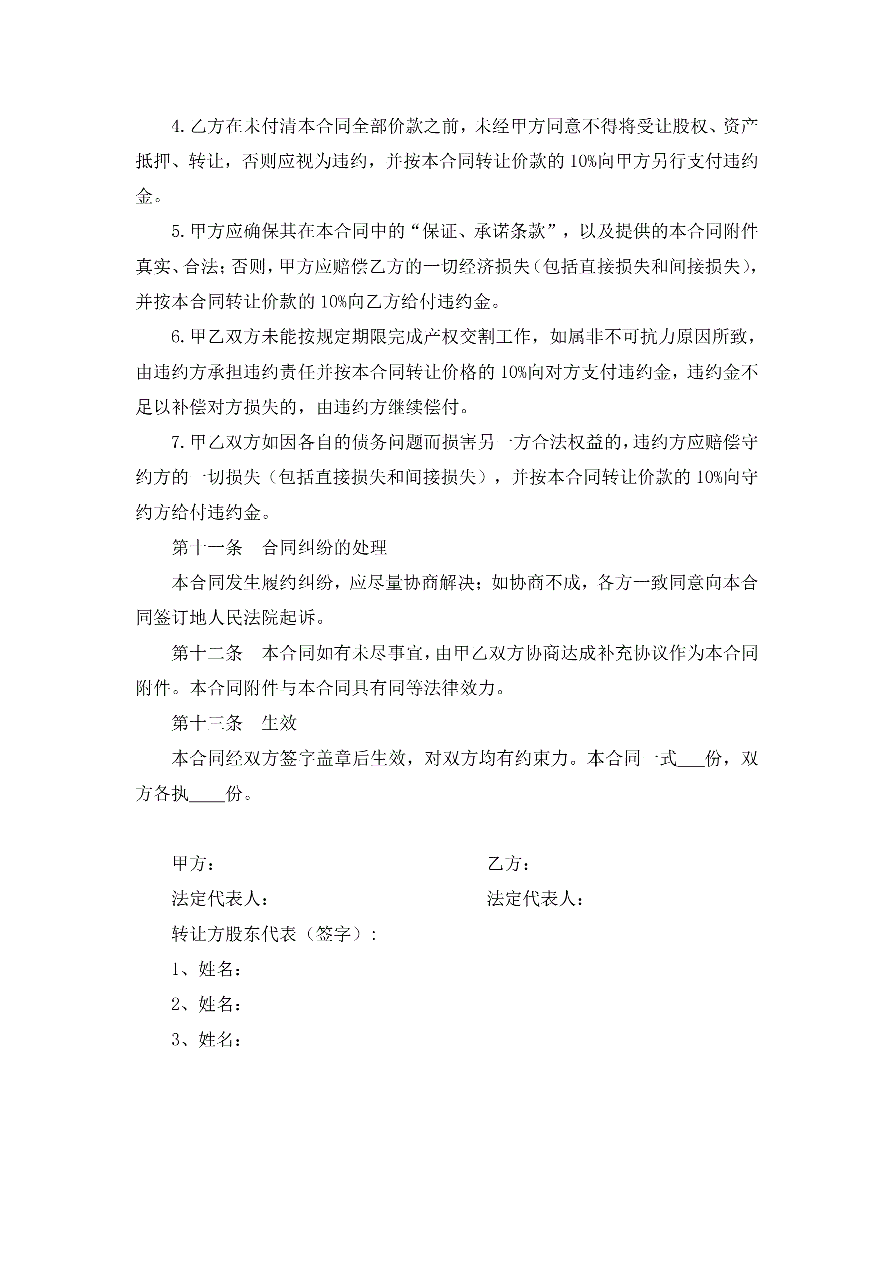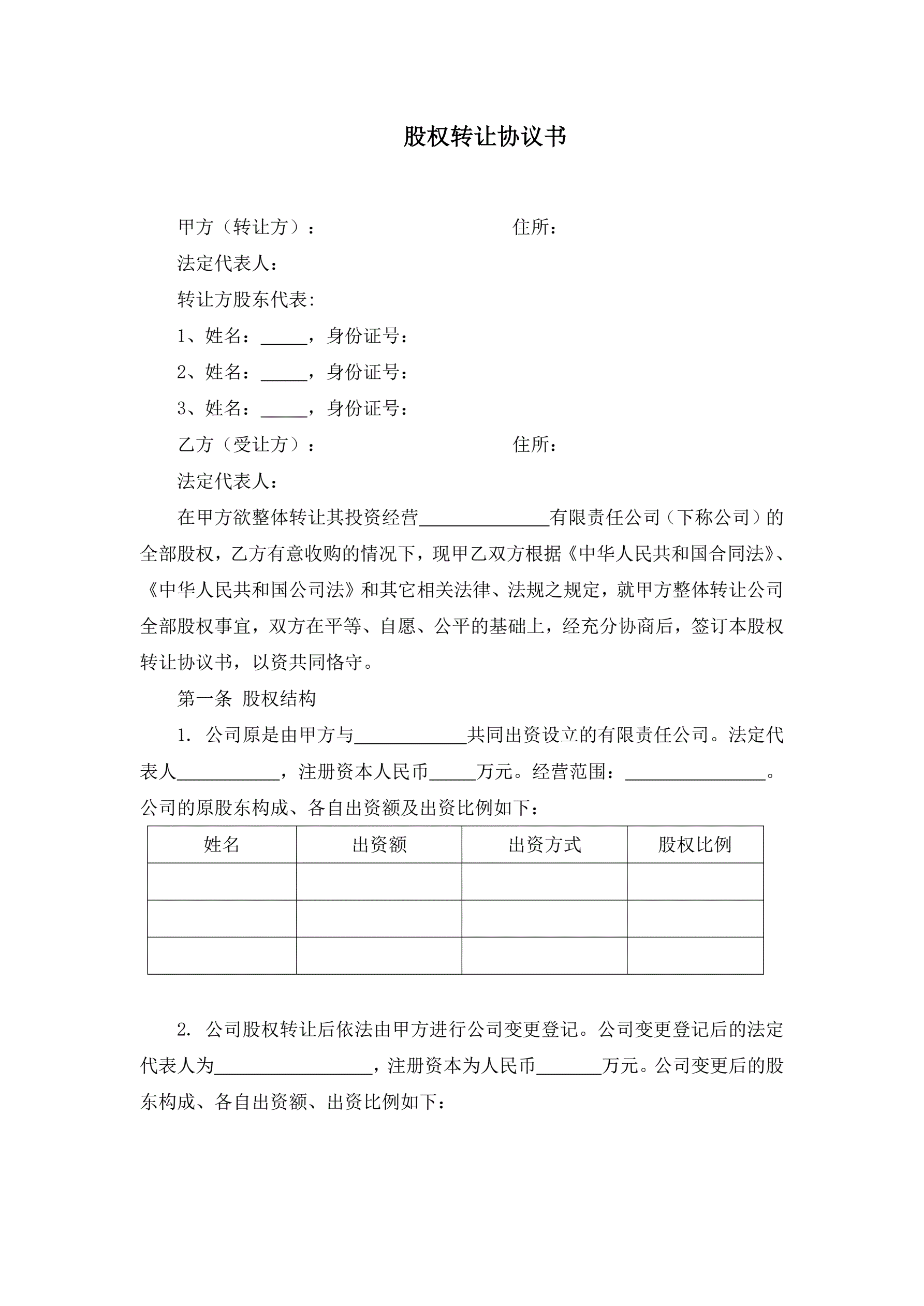 >股权转让协议书